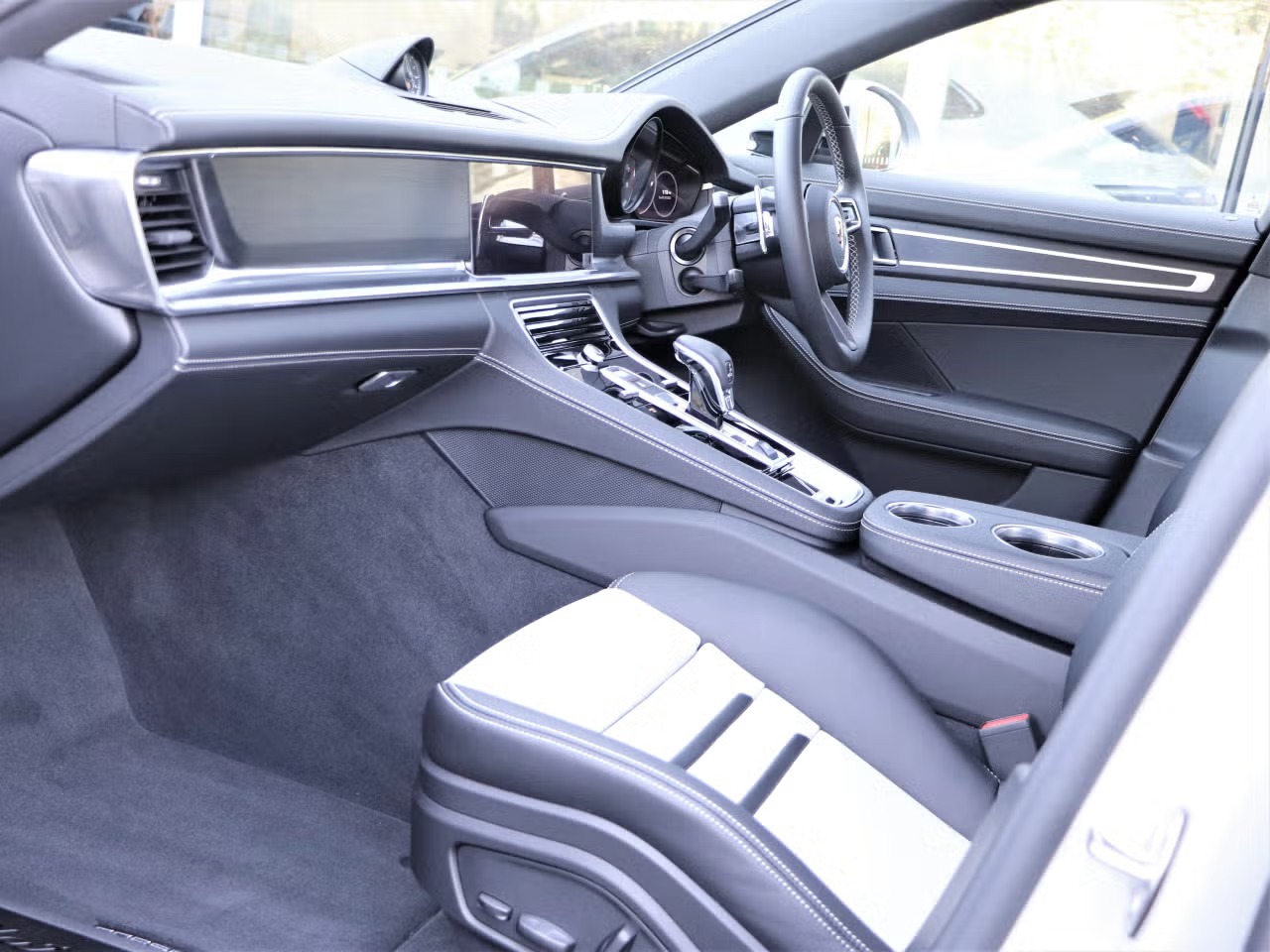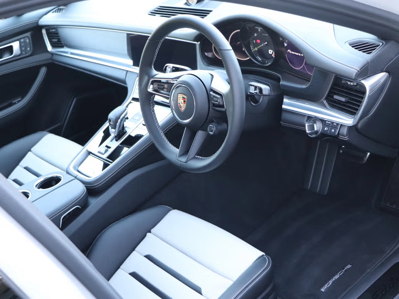 Porsche Panamera 4 E-Hybrid Platinum Edition 2.9 Panoramic Sunroof на 21-дюймовых спортивных дисках Panamera эксклюзивного дизайна, окрашенные в черный как смоль металлик. Спортивный руль с подогревом. Система помощи при парковке, включая объемный обзор. Система объемного звучания BOSE ® .