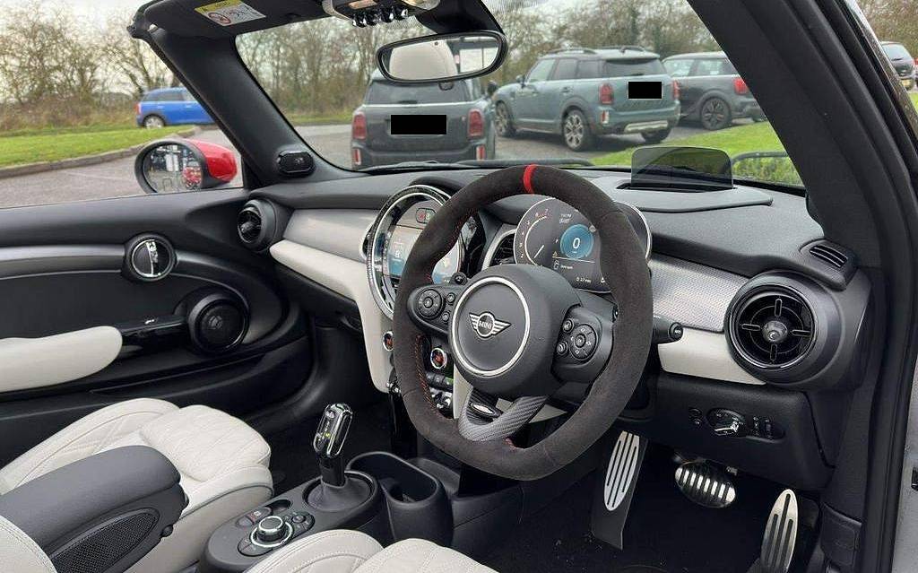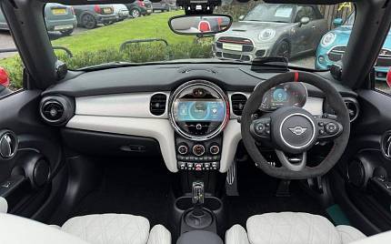 MINI Convertible John Cooper Works Convertible 2.0 на 18-дюймовых дисках JCW Course Spoke, 2-цветных. Интеграция со смартфоном. Ассистент парковки и датчики парковки спереди. Активный круиз-контроль. Keyless Go. Многофункциональный руль. Подрулевые переключатели. Спортивные сиденья.