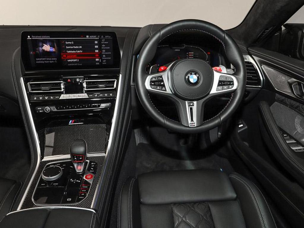 BMW M8 Competition 4.4 на 20-дюймовых легкосплавных дисках, плавно закрывающиеся двери, адаптивный круиз-контроль, беспроводная зарядка, подогрев руля, подогрев задних сидений, подогрев передних сидений, передние и задние датчики парковки, запуск без ключа.