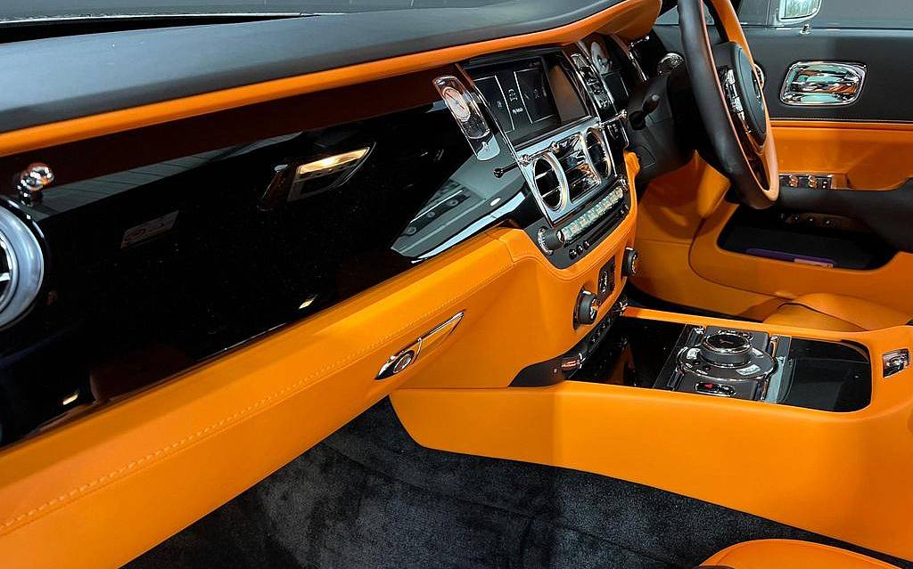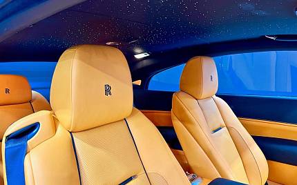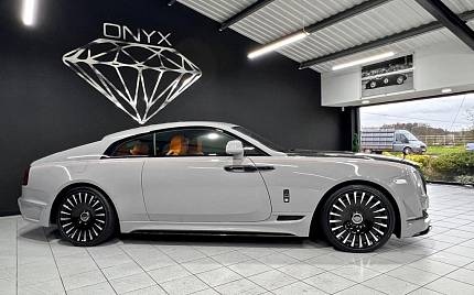 Rolls-Royce Wraith 6.6 V12 ONYX Concept Final Edition на 20-дюймовых легкосплавных дисках с 7 спицами, система камер — вид сбоку, сзади и сверху, комиссионная коллекция — кожа — Mandarin, обшивка потолка Shooting Star, передние вентилируемые сиденья, сиденья — передние с подогревом и электрической регулировкой, защелки с плавным закрыванием для всех дверей.