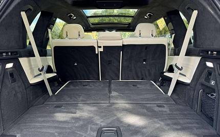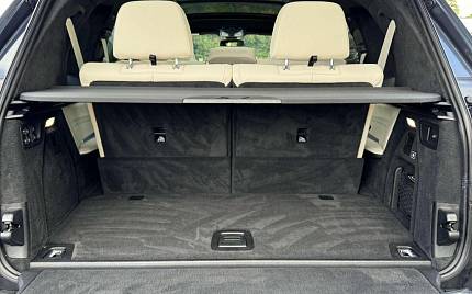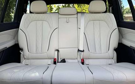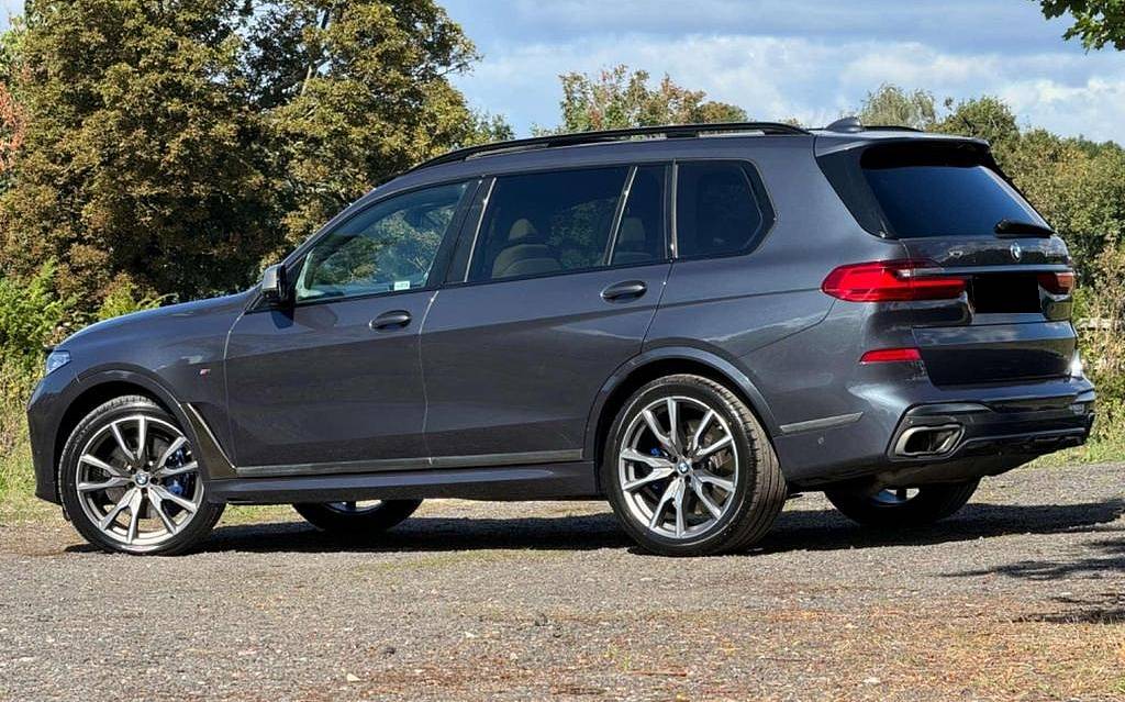 BMW X7 M50i Panoramic Sunroof 4.4 на 22-дюймовых легкосплавных дисках - M Light V-Spoke Style 755 M Bicolour Cerium Grey, тормоза M Sport с синими суппортами, внутренняя отделка - Ash Grain Black с бронзовым эффектом - Open-Pored, фаркоп - электрический, расширенная кожа Merino BMW Individual - Ivory White-Black, 7-местный в конфигурации 2 - 3 - 2, акустическое стекло, кондиционер - автоматический с четырехзонным управлением, пакет BMW Connected Professional, службы BMW ConnectedDrive, проекционный дисплей BMW, индивидуальная глянцевая отделка Shadowline, круиз-контроль с функцией торможения, система динамического контроля устойчивости - стабилизирует автомобиль в экстремальных ситуациях - контролирует тягу, управление динамикой движения - ECO PRO - Comfort - спортивный и адаптивный режимы, выхлопные трубы - одинарные - слева и справа - Cerium Grey, расширенный пакет наружных зеркал, аэродинамический обвес M, двери с доводчиками.