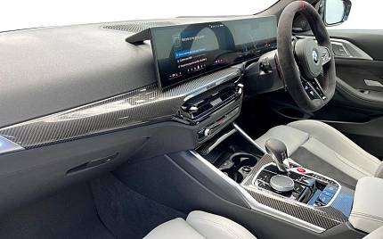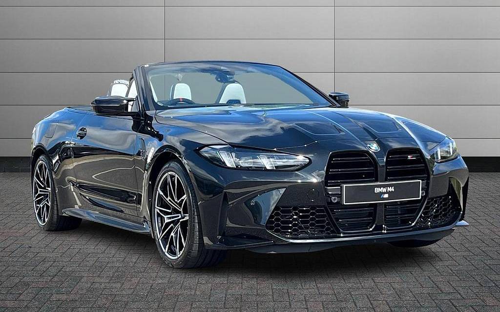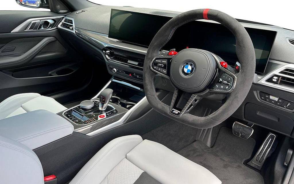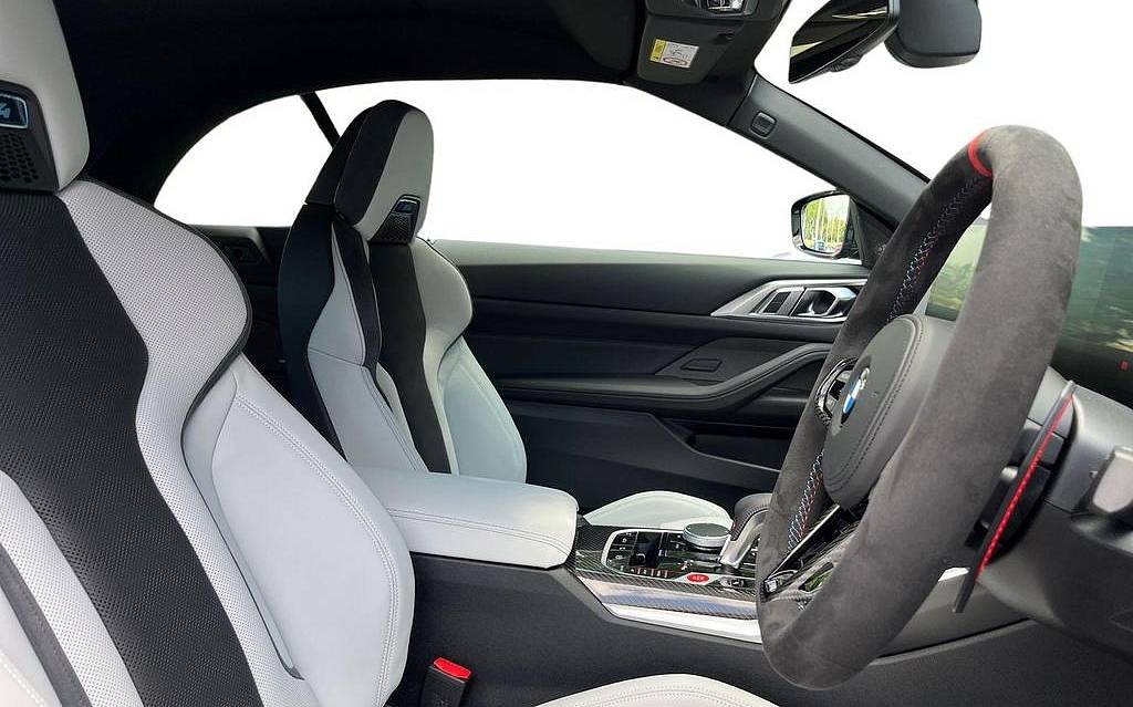 BMW M4 Competition BiTurbo 3.0 на19-дюймовых передних и 20-дюймовых задних легкосплавных дисках - M Double Spoke - 825 - кованые - двухцветные черные с разноразмерными шинами, тормоза M с красными суппортами, внутренняя отделка - карбоновое волокно, кожа Merino - Silverstone, рулевое колесо M Alcantara, пакет технологий, активный дифференциал M, адаптивная подвеска M, двухшарнирная передняя ось с пружинными стойками, внешняя отделка - расширенная глянцевая Shadowline, спортивные сиденья M, интеграция со смартфоном, аудиосистема Harman Kardon Surround Audio, радио DAB, круиз-контроль с функцией ограничения скорости - кнопка LIM, BMW Live Cockpit Professional с проекционным дисплеем, кондиционер - автоматический с тремя зонами, ассистент парковки.