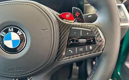BMW M4 Coupe Competition BiTurbo 3.0 на 19 дюймовых спереди и 20 дюймовых сзади легкосплавных дисках Orbit Grey Matt 825 M с двойными спицами, красные глянцевые тормоза M Compound, пакет внешней отделки M Carbon, пакет Technology Plus, аксессуары Trackstar, солнцезащитные стекла, круиз-контроль с функцией ограничения скорости — кнопка LIM, аудиосистема Harman Kardon Surround Audio, радио DAB, ассистент парковки, интеграция со смартфоном, беспроводной зарядный лоток, спортивные сиденья M, рулевое колесо M, адаптивная подвеска M, двухшарнирная передняя ось с пружинными стойками.