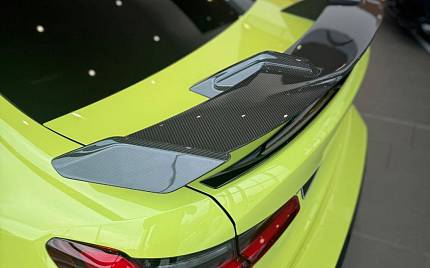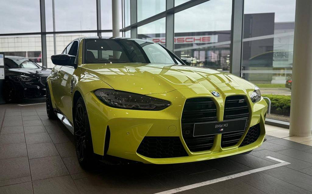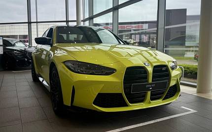 BMW M3 Competition M BiTurbo 3.0 на 19 дюймовых спереди и 20 дюймовых сзади легкосплавных дисках - M Double Spoke - 826 - кованые - Jet Black с разноцветными шинами, составные тормоза M с красным глянцевым покрытием, M Drive Professional, дифференциал M Sport, значки модели черного цвета, планки на передней боковой панели - черные матово-черные глянцевые с значком модели, интеграция со смартфоном, ассистент парковки, нижние кромки бамперов - боковые пороги - окантовка диффузора и диффузора черным глянцевым покрытием, аудиосистема Harman Kardon Surround Audio, кондиционер - автоматический с тремя зонами, индивидуальные фары BMW - Shadowline, спортивные сиденья M, рулевое колесо M, двухшарнирная передняя ось с пружинными стойками, адаптивная подвеска M.