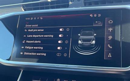 Audi A6 Black Edition 40 2.0, 20-дюймовые легкосплавные диски — Audi Sport — 10-спицевая звезда — черный металлик — глянцевая отделка, противоугонная блокировка колесных болтов и обнаружение ослабления колес, электрические стеклоподъемники — передние и задние, наружные зеркала — с электроприводом, подогревом и складыванием — с автоматическим затемнением и функцией памяти, тонированное стекло, вставка заднего диффузора в матово-черном цвете с полосой диффузора и выхлопными трубами в хроме, пакет внешнего стиля S Line, боковые и задние окна из теплоизоляционного стекла, комплект для ремонта шин, лобовое стекло с теплоизоляционным стеклом, Audi Connect Safety and Service — e-call, интерфейс Audi Smartphone, интерфейс Bluetooth, распознавание дорожных знаков с помощью камеры, система круиз-контроля с ограничителем скорости, цифровое радио DAB, предупреждение о выезде с полосы движения, навигационная система MMI Navigation Plus с сенсорными экранами 10,1 и 8,6 дюйма, система парковки Plus — передние и задние датчики, вид сзади Камера, контрольная лампа давления в шинах.