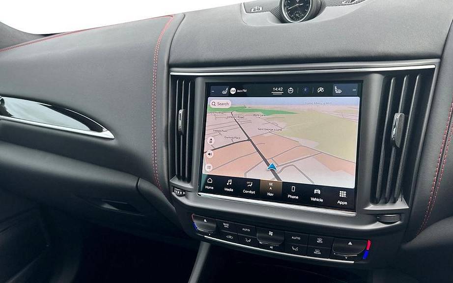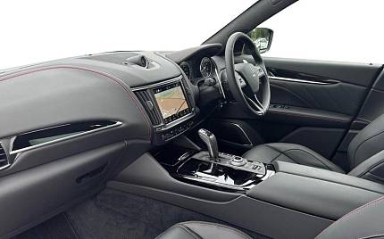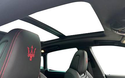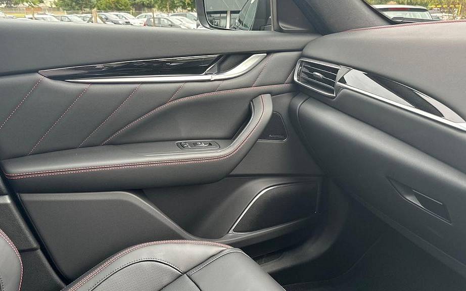 Maserati Levante 430 Modena Panoramic Sunroof V6 3.0 на 21-дюймовых легкосплавных дисках Anteo Gloss Black Staggered, многослойное тонированное заднее стекло, окрашенные в красный цвет тормозные суппорты, пакет Driver Assistance Pack Plus, аудиосистема Harman Kardon Premium, камера кругового обзора, электрические передние спортивные сиденья с функцией запоминания настроек водителя, вентилируемые передние сиденья, подогрев передних и задних сидений, спортивное рулевое колесо, отделка Piano Black, вышитый логотип Trident на подголовниках, система Easy Entry, многослойное тонированное заднее стекло, электрические солнцезащитные шторки на задних сиденьях, краска Mica, черные коврики и обивка потолка.