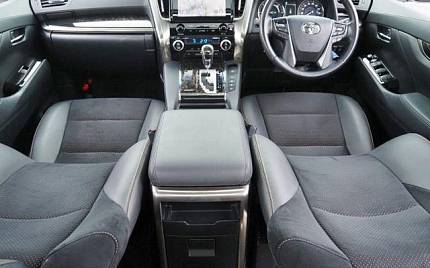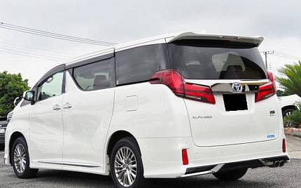 Toyota Alphard Panoramic Sunroof Hybrid 2.5 на 17-дюймовых легкосплавных дисках, Modellista обвес, электропривод сдвижной двери с обеих сторон, подушка безопасности водителя/пассажира/боковая подушка безопасности, входной разъем USB, система остановки на холостом ходу, противоугонное устройство, подключение по Bluetooth, блок питания 100 В, ТВ и навигация/память Navi, музыкальный сервер, монитор на заднем сиденье, воспроизведение Blu-ray/DVD/CD, кожаные сиденья, электропривод сидений, подогрев сидений, кондиционер сидений, оттоманка, электропривод задней двери, передняя/боковая/задняя камера, круговая камера, бесключевой доступ, смарт-ключ, система удержания полосы движения, адаптивный круиз-контроль, система контроля слепых зон, автоматический дальний свет, система распознавания дорожных знаков, система предупреждения столкновений с функцией автоматического торможения.