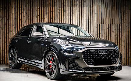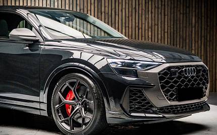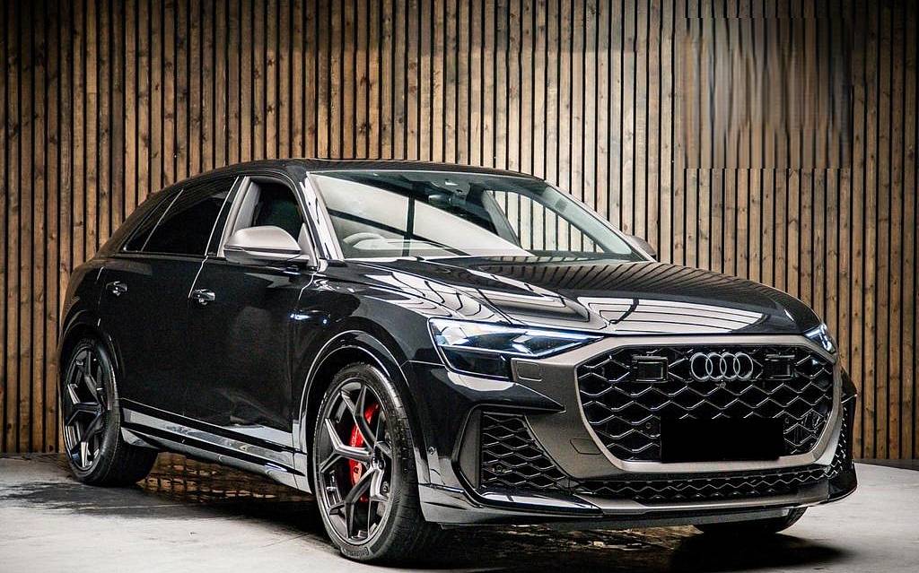 Audi RSQ8 TFSI Performance Carbon Vorsprung Panoramic Sunroof 4.0 на 23-дюймовых легкосплавных дисках — 5-Y-образных спиц Audi Sport Design — матовый контрастный черный, черный металлик снаружи, электрорегулируемые, подогреваемые, складывающиеся, автоматически затемняющиеся боковые зеркала с функцией памяти и встроенными светодиодными указателями поворота с функцией обзора бордюра для пассажирской стороны, светодиодная проекция логотипа RS Performance при открытии передних и задних дверей, матовый черный стилистический пакет, панорамный стеклянный люк на крыше, тонированные стекла (задние и задние боковые стекла от центральной стойки назад), значки RS на передних крыльях, передний спойлер RS Manhattan Grey и вставка заднего диффузора, особые бамперы и стиль RS, оконные молдинги матово-серого цвета с кольцами и эмблемой Audi черного цвета, AMI — Audi Music Interface, навигационная и информационно-развлекательная система Audi Connect (подписка на 3 года), Audi Connect с интеграцией Amazon Alexa, интерфейс Audi Smartphone, Bang & Звуковая система Olufsen 3D Premium, цифровое радио DAB, навигационная система MMI Navigation Plus с MMI Touch.