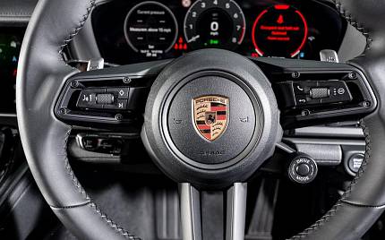 Porsche Panamera 4 E-Hybrid Panoramic Sunroof V6 2.9 на 21-дюймовых легкосплавных дисках 911 Turbo Design, ABS, активная система ограничения скорости, адаптивная пневматическая подвеска с PASM, объемный звук BOSE, тормозные суппорты черного цвета, комфортные передние сиденья (14-позиционный электропривод с памятью), цифровое радио DAB, эксклюзивные задние фонари, выхлопная система с двумя выхлопными трубами, подогреваемый спортивный руль GT, крепления ISOFIX для детских сидений, кожаные дверные панели, матричные светодиодные фары, панорамная крыша, система помощи при парковке с камерой заднего вида, электропривод двери багажного отделения, тонированные стекла, задний диффузор, вентиляция сидений (спереди), отделка боковых окон глянцево-черного или серебристого цвета, интеграция со смартфоном (Apple CarPlay и Android Auto), мягко закрывающиеся двери, пакет Sound Package Plus, пакет Sport Chrono с секундомером, спортивная выхлопная система темно-бронзового цвета, спортивный руль, объемный звук Вид с активной системой помощи при парковке, тонированными светодиодными фарами HD-Matrix, двухзонным климат-контролем, контролем давления в шинах и защитой пешеходов.