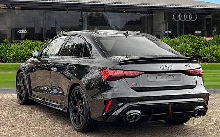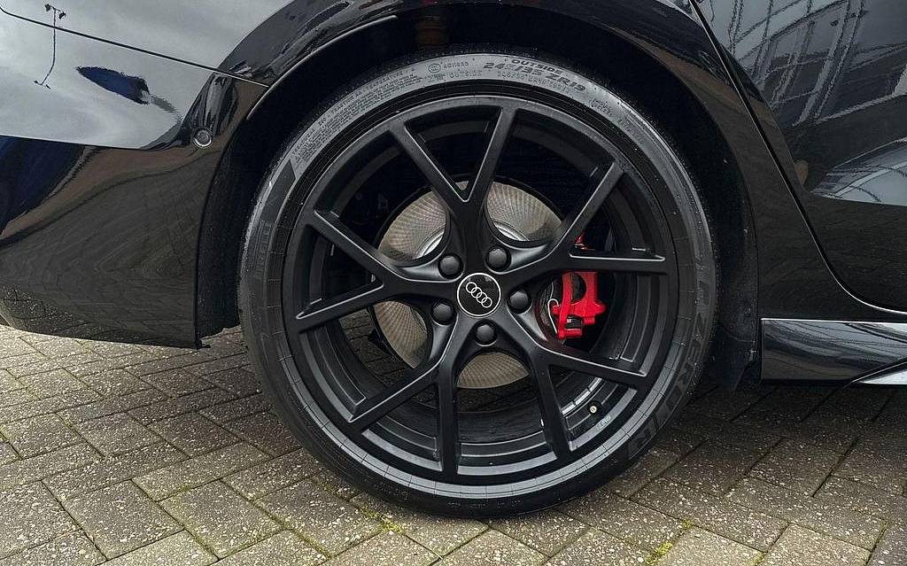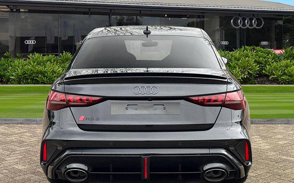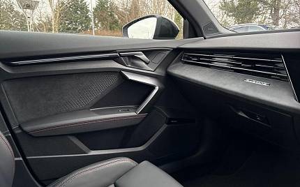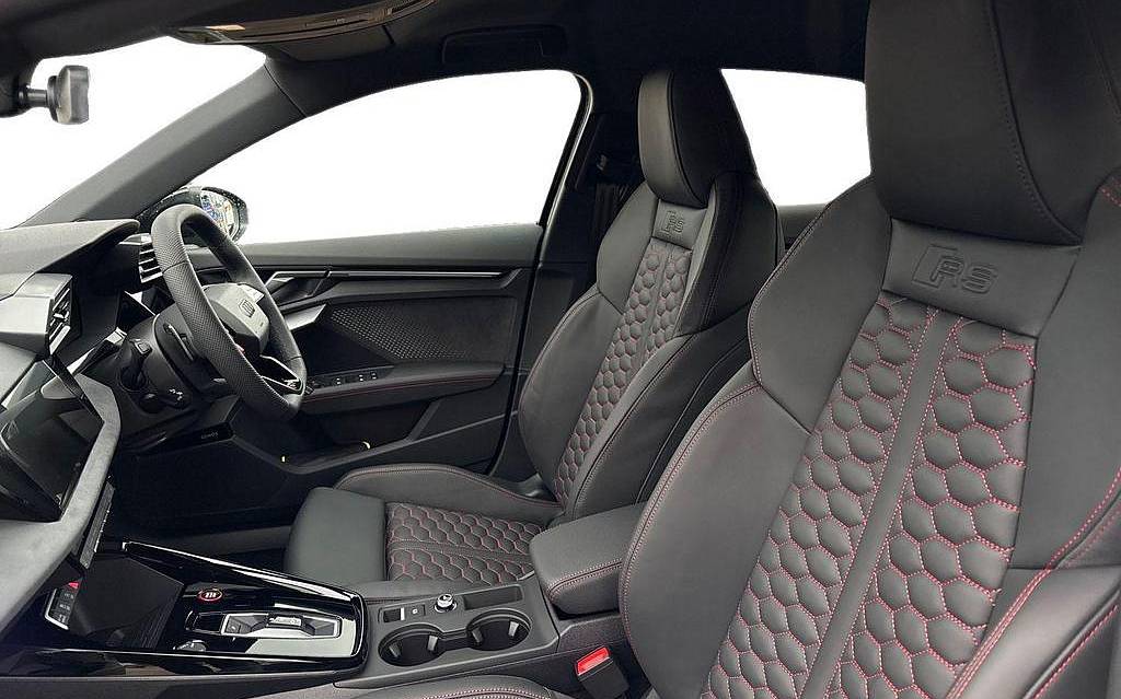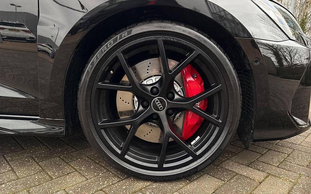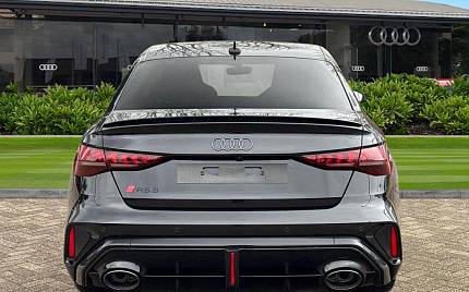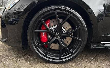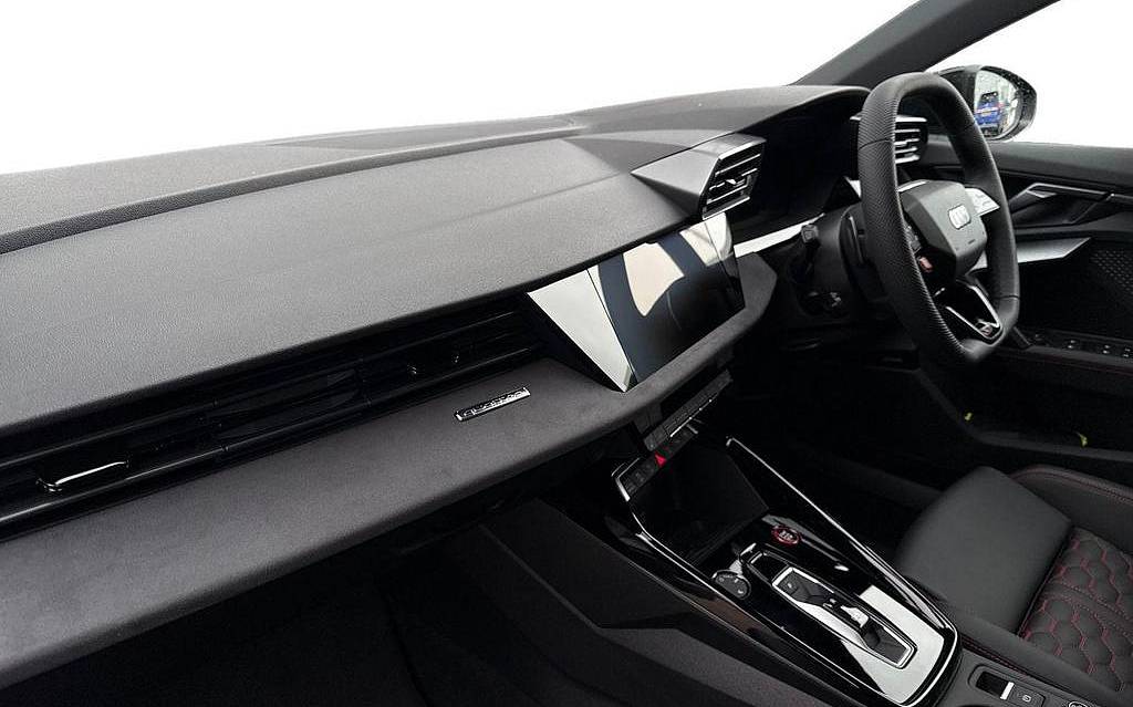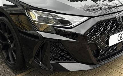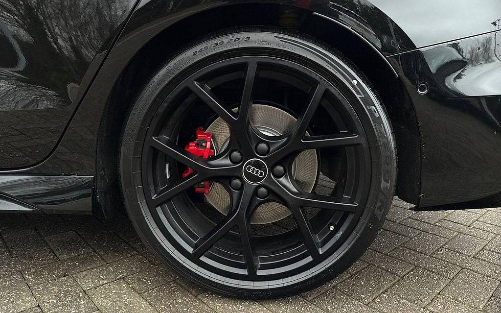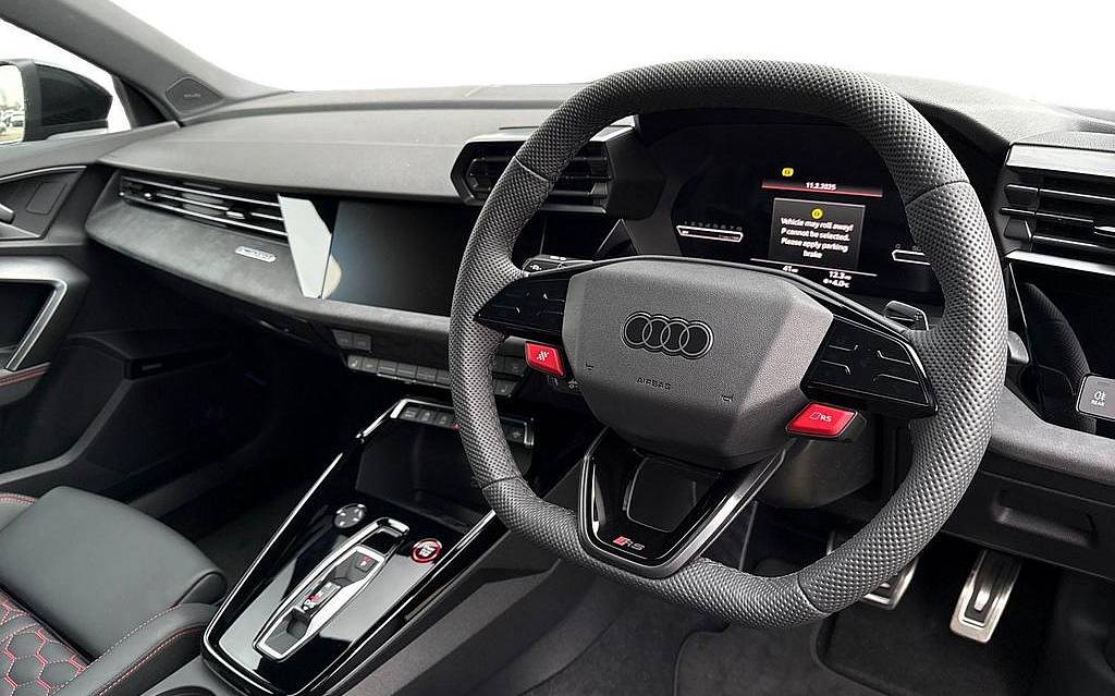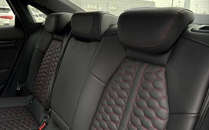 Audi RS3 2.5 TFSI S Tronic quattro на 19-дюймовых легкосплавных дисках — 5 спиц Y-типа — матово-черные, тормозные суппорты — красные, пакет фоновой подсветки Pro, виртуальная приборная панель Audi Virtual Cockpit со специальным дизайном RS и 12,3-дюймовым дисплеем, автоматическая система «старт-стоп» с функцией рекуперации, подогрев передних сидений, предупреждение о выезде с полосы движения, система помощи при парковке с системой Parking System Plus, спортивная подвеска RS, спортивная выхлопная система RS.