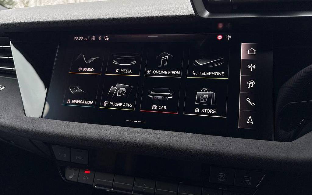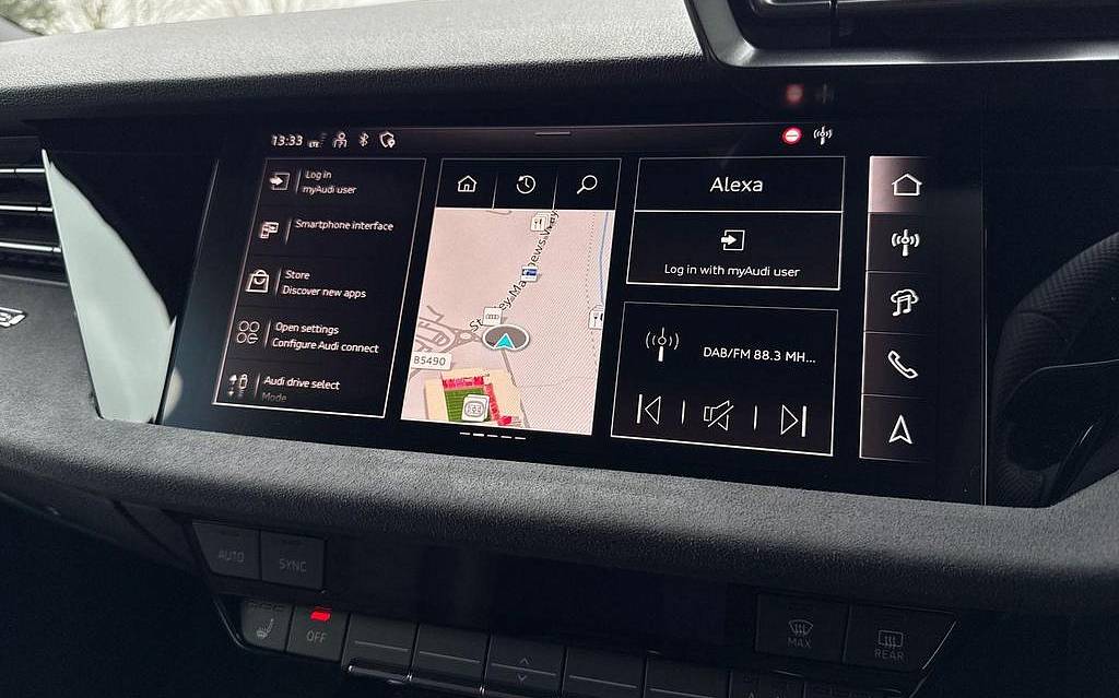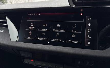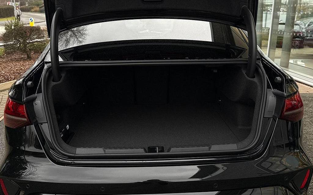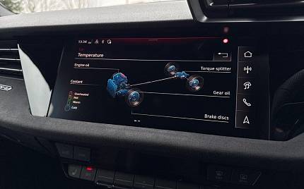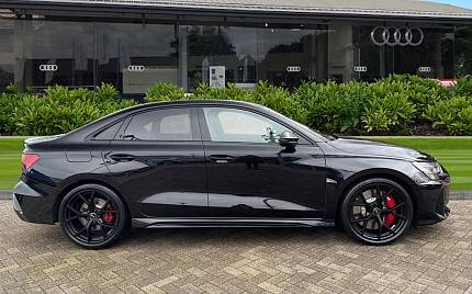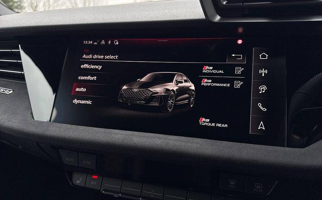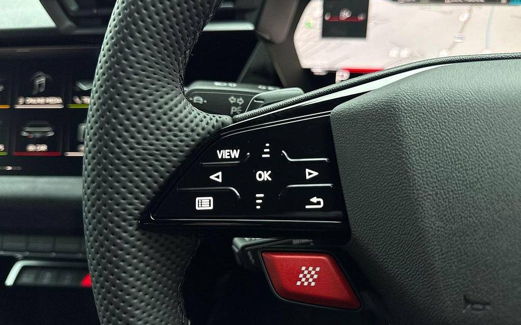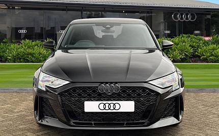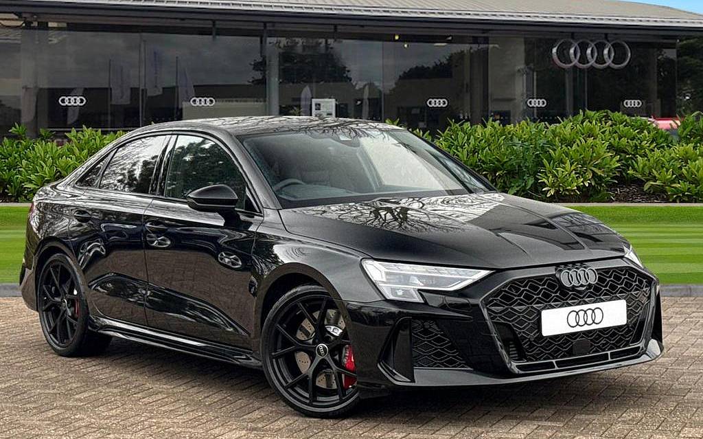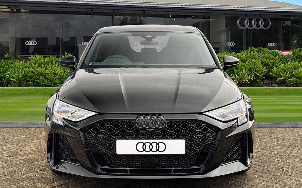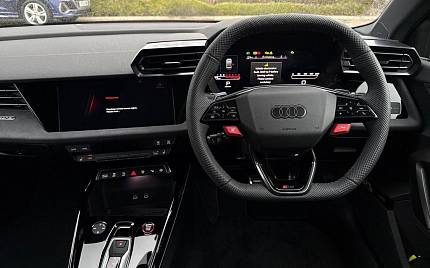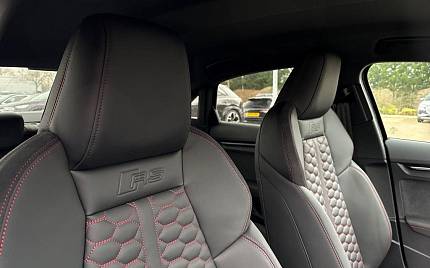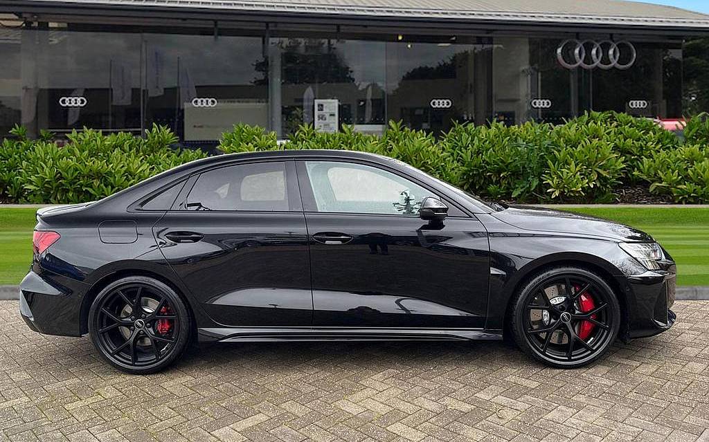 Audi RS3 2.5 TFSI S Tronic quattro на 19-дюймовых легкосплавных дисках — 5 спиц Y-типа — матово-черные, тормозные суппорты — красные, пакет фоновой подсветки Pro, виртуальная приборная панель Audi Virtual Cockpit со специальным дизайном RS и 12,3-дюймовым дисплеем, автоматическая система «старт-стоп» с функцией рекуперации, подогрев передних сидений, предупреждение о выезде с полосы движения, система помощи при парковке с системой Parking System Plus, спортивная подвеска RS, спортивная выхлопная система RS.