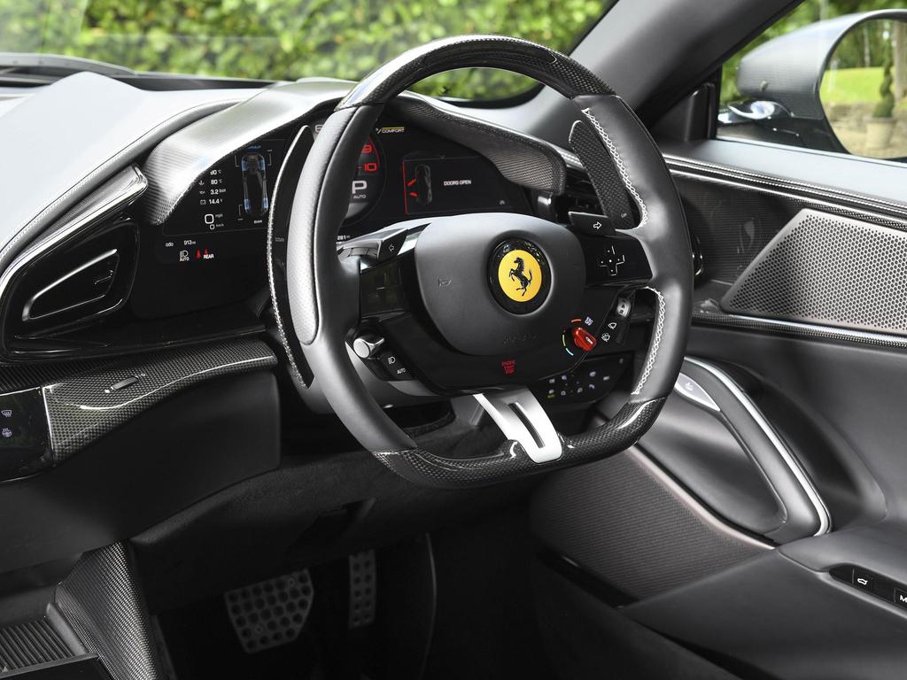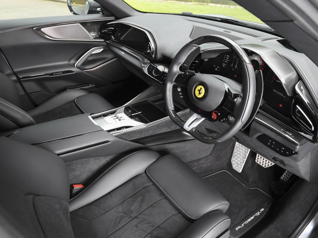 Ferrari Purosangue 6.5 V12 F1 DCT 4WD Кованые легкосплавные диски 22"/23" с матовой отделкой Liquid Silver, титановые колесные болты, керамические тормоза, тормозные суппорты Silverstone Grey, строчка Cavallino на подголовниках с отделкой Grigio Chiaro, специальная строчка по всему кузову с отделкой Grigio Chiaro, цифровое зеркало заднего вида, высококачественная аудиосистема, беспроводное зарядное устройство для смартфона, фары Matrix-LED, пассажирский дисплей, MyFerrari Connect, круговой обзор, датчик качества воздуха, двери с доводчиками, передние и задние парковочные датчики, задняя парковочная камера, адаптивный круиз-контроль с обнаружением слепых зон, активная подвеска и подъемник, цветные коврики с вышитым логотипом, колесные арки из углеродного волокна, задний диффузор из углеродного волокна, передний спойлер из углеродного волокна, накладки на пороги из углеродного волокна, наружные зеркала из углеродного волокна с матовой отделкой, подъемник подвески.