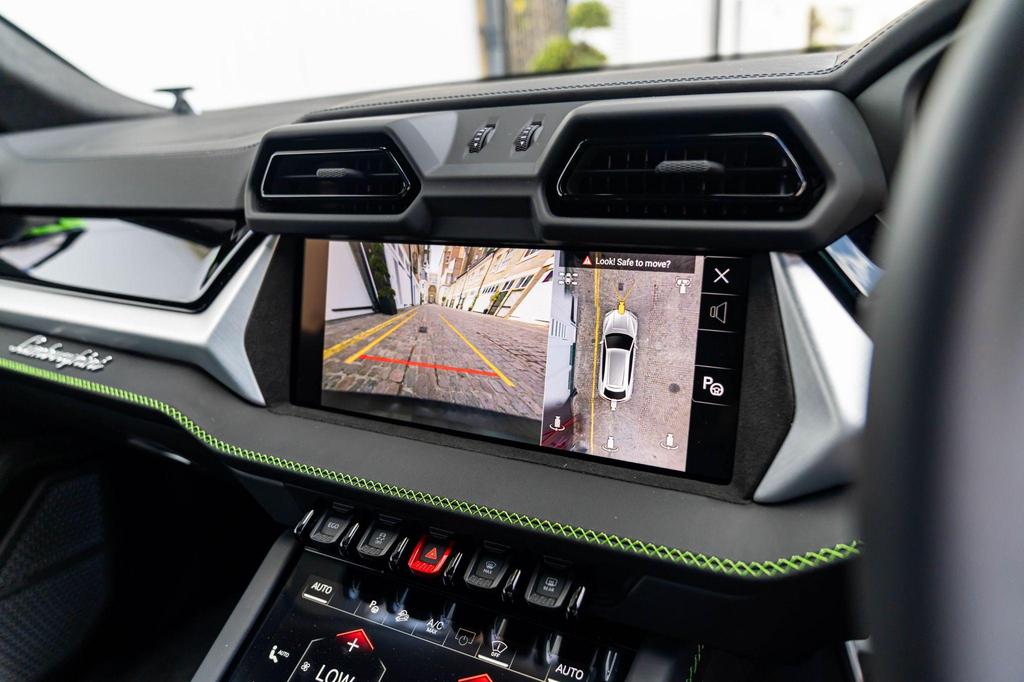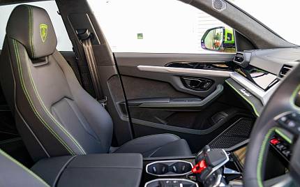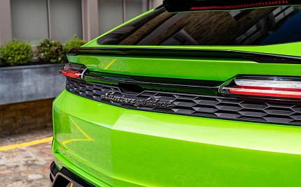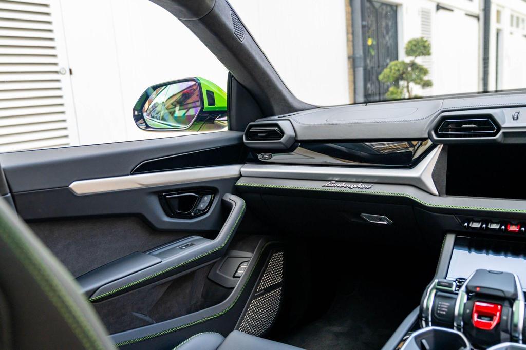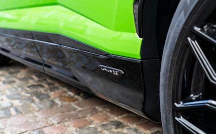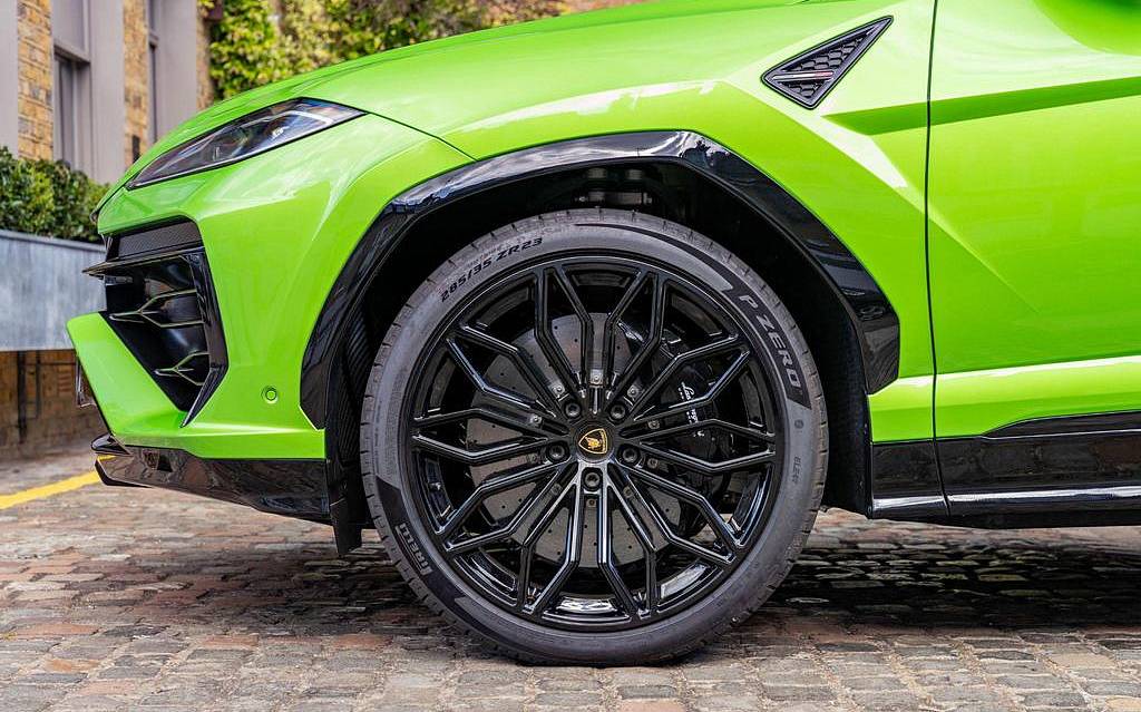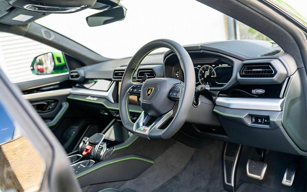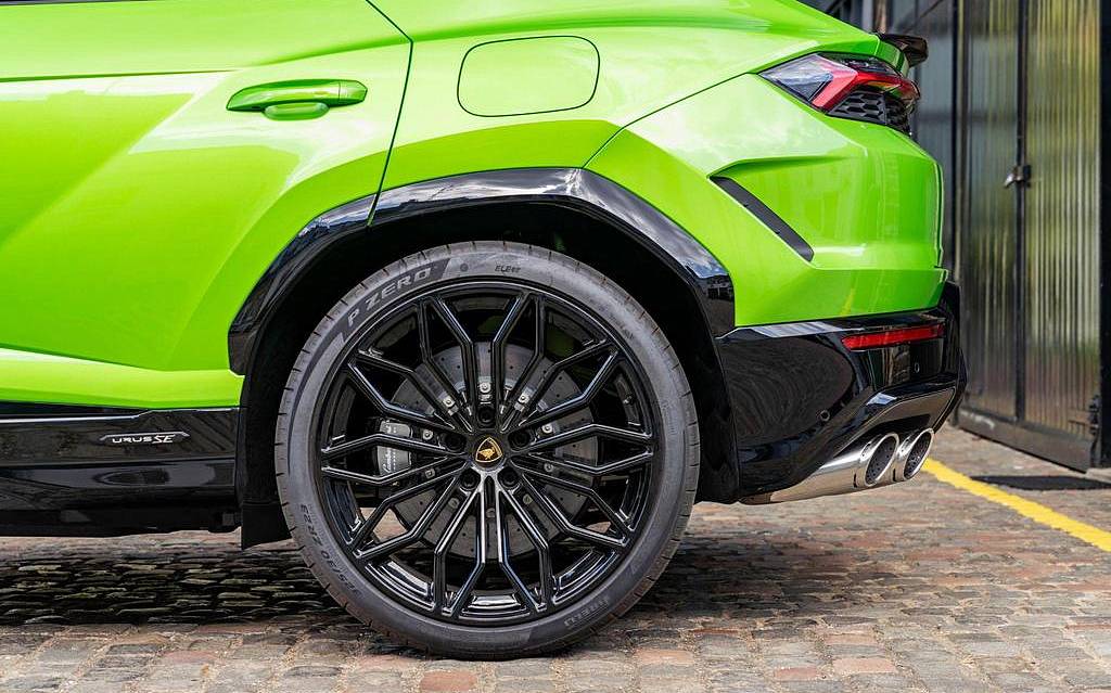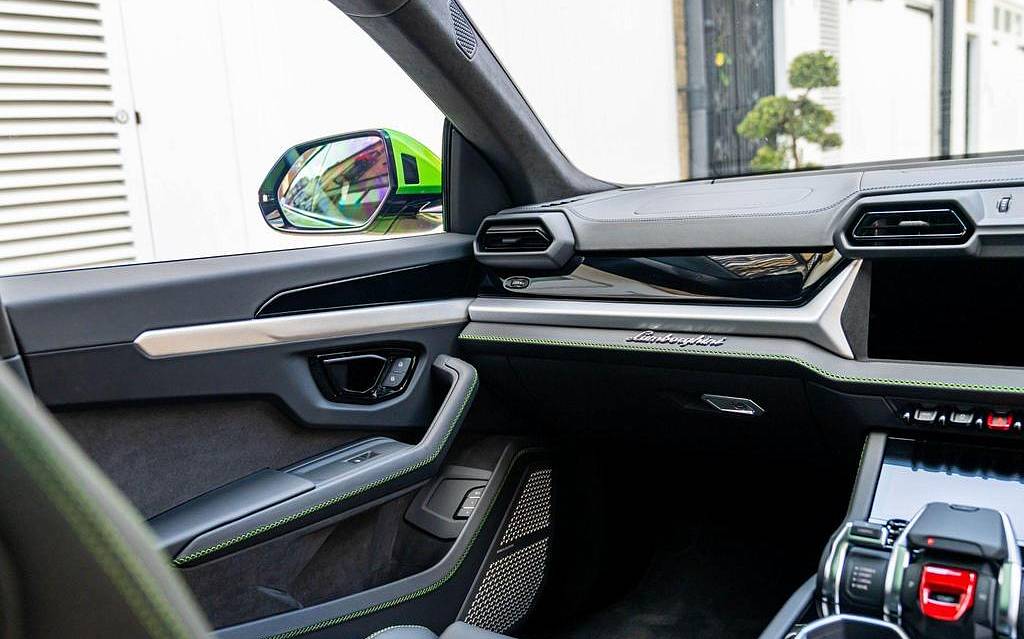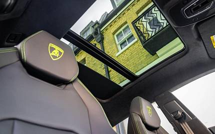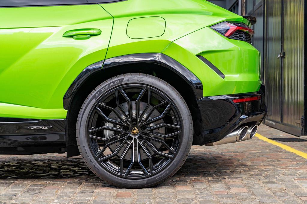 Lamborghini Urus 4.0 V8 BiTurbo 25.9kWh SE Panoramic Sunroof на 23-дюймовых легкосплавных дисках — черные обода Galanthus, черные тормозные суппорты, многофункциональное рулевое колесо с кожаной отделкой, вышитый логотип на подголовнике, пакет помощи при парковке с дистанционным управлением, тонированные стекла — акустическое и подогреваемое стекло, усовершенствованная 3D-аудиосистема Bang and Olufsen.