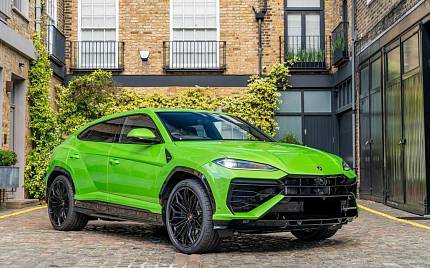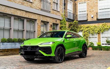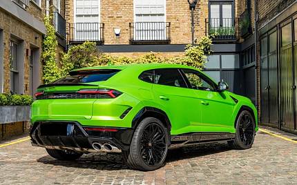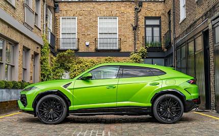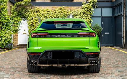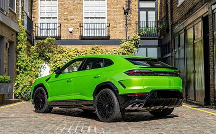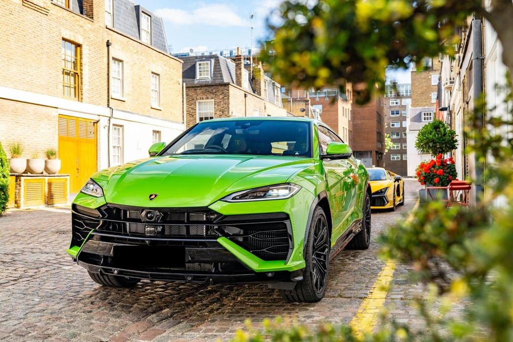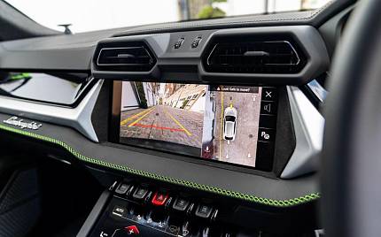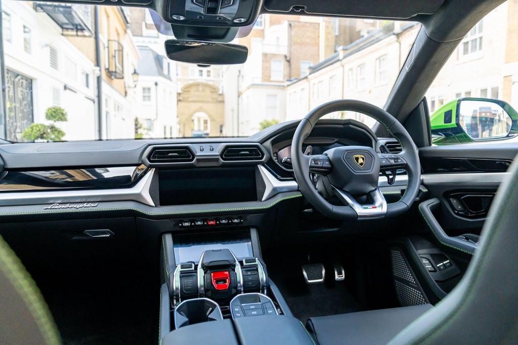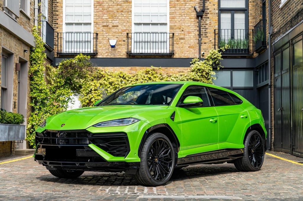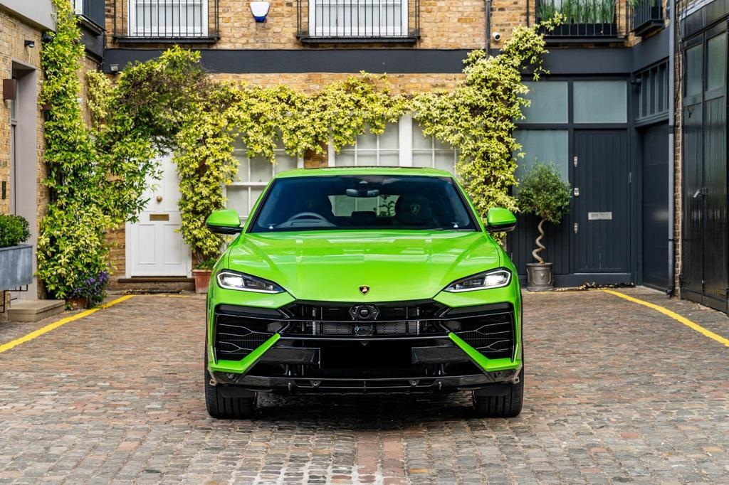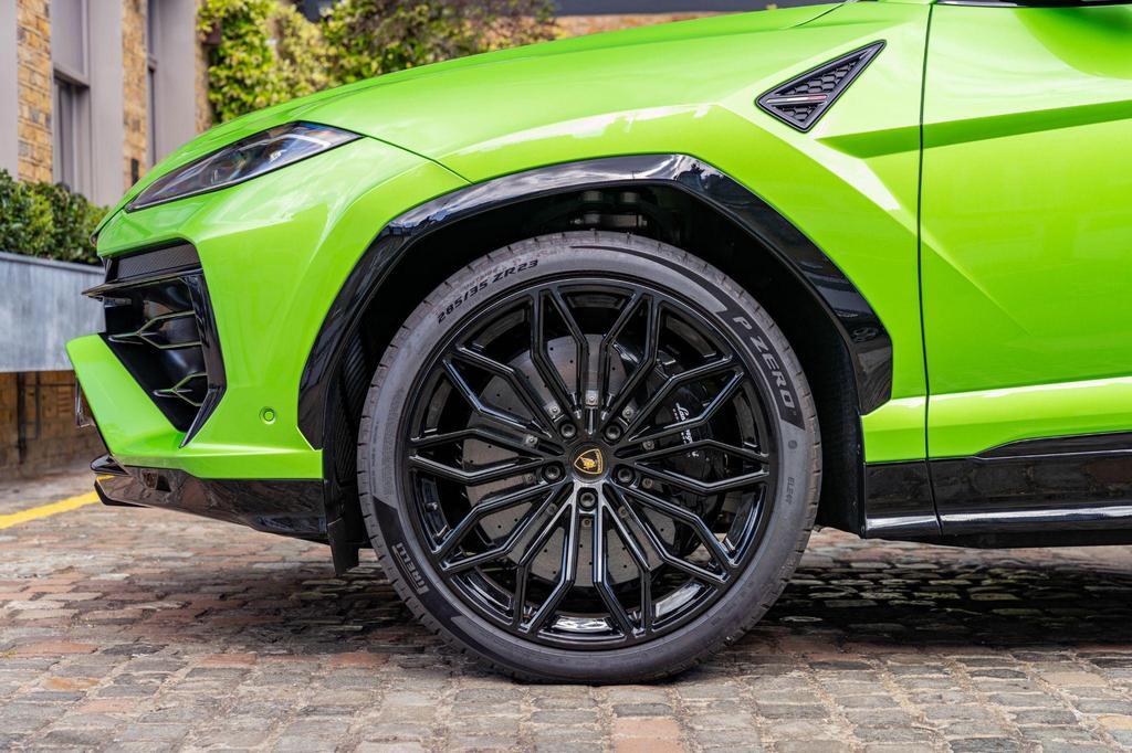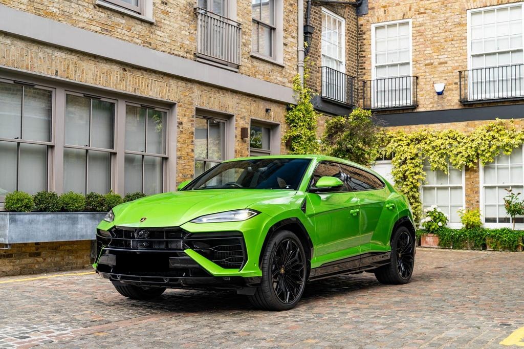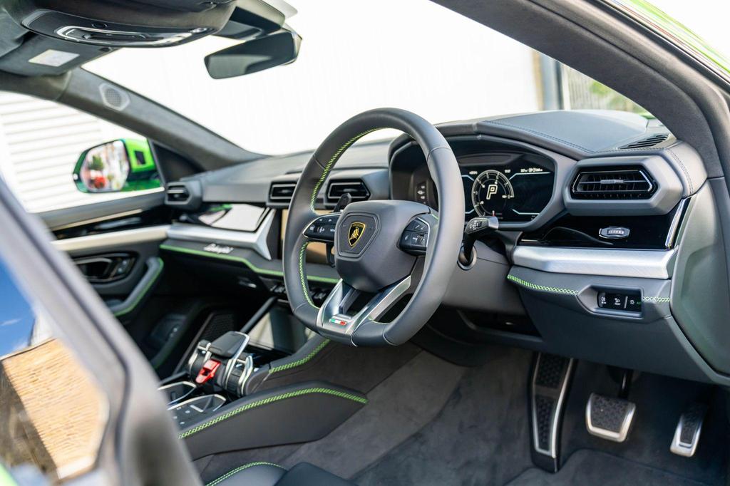 Lamborghini Urus 4.0 V8 BiTurbo 25.9kWh SE Panoramic Sunroof на 23-дюймовых легкосплавных дисках — черные обода Galanthus, черные тормозные суппорты, многофункциональное рулевое колесо с кожаной отделкой, вышитый логотип на подголовнике, пакет помощи при парковке с дистанционным управлением, тонированные стекла — акустическое и подогреваемое стекло, усовершенствованная 3D-аудиосистема Bang and Olufsen.