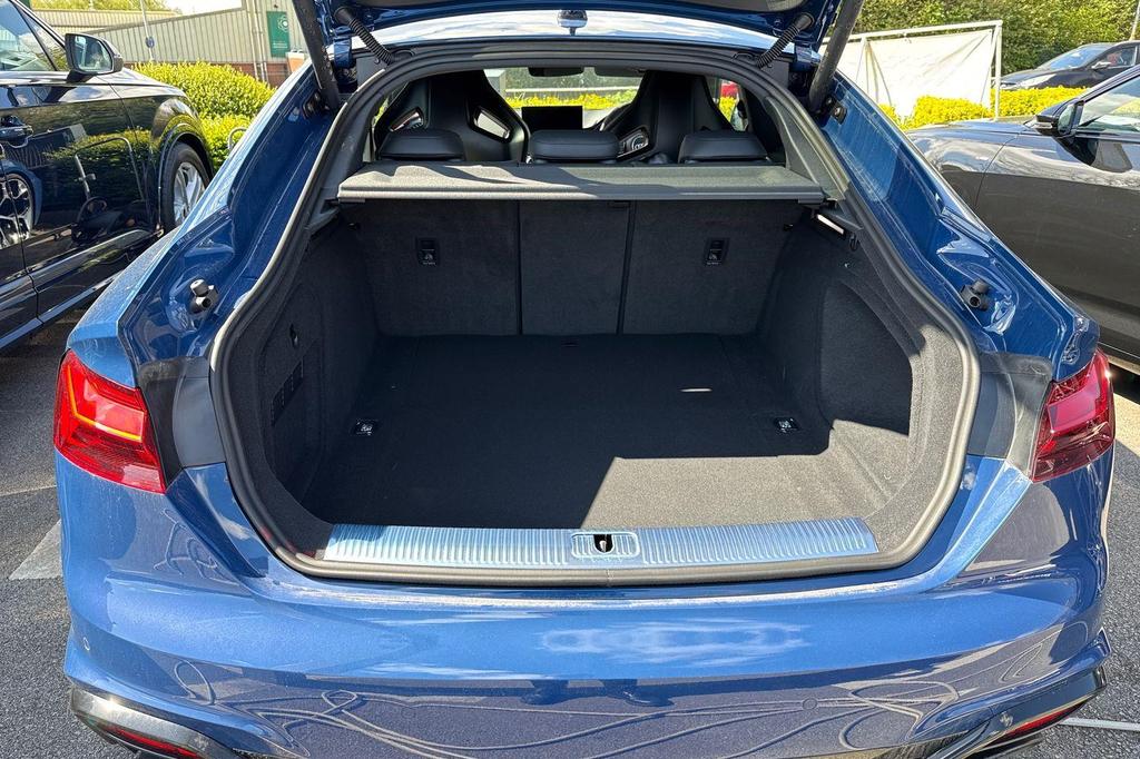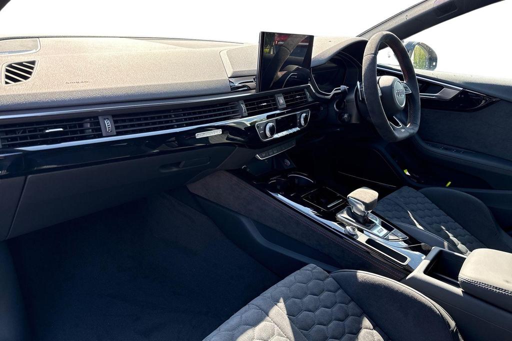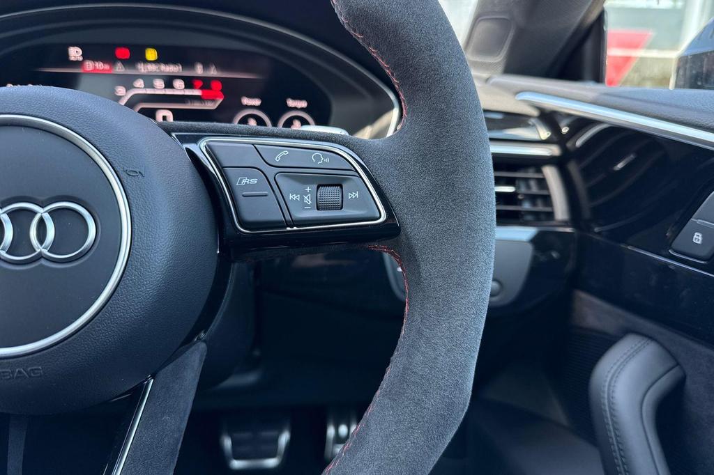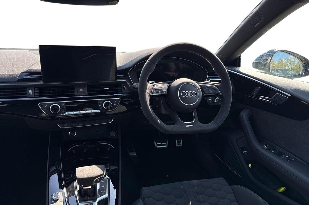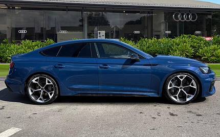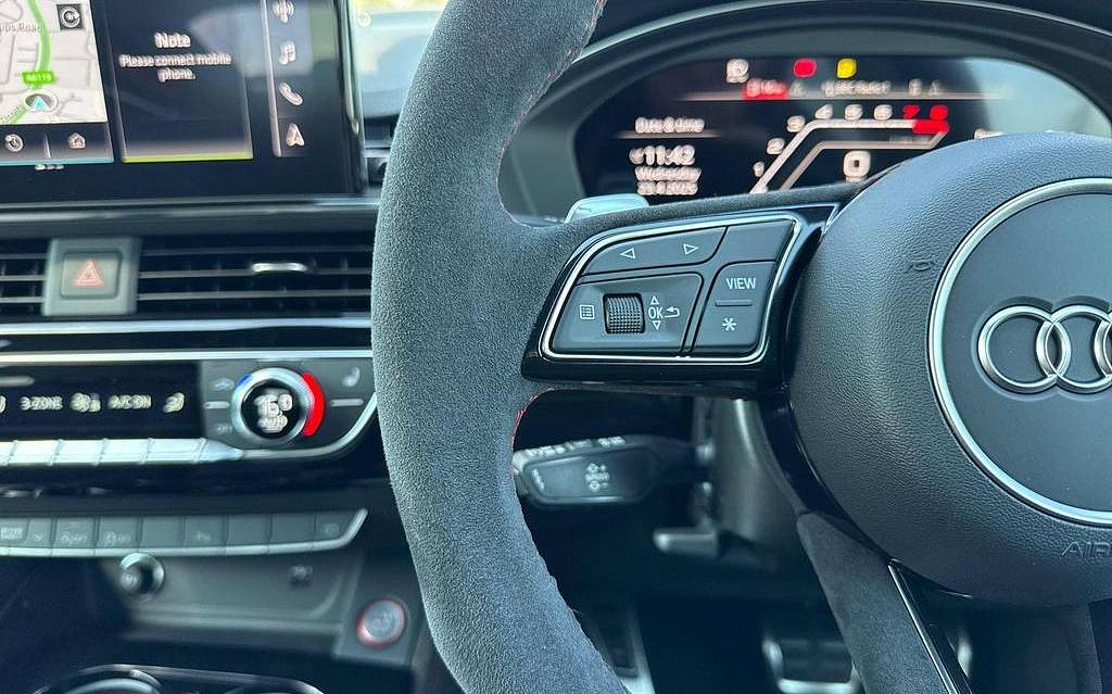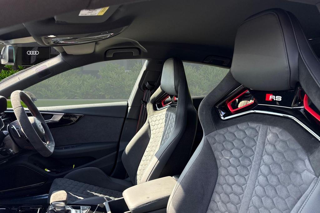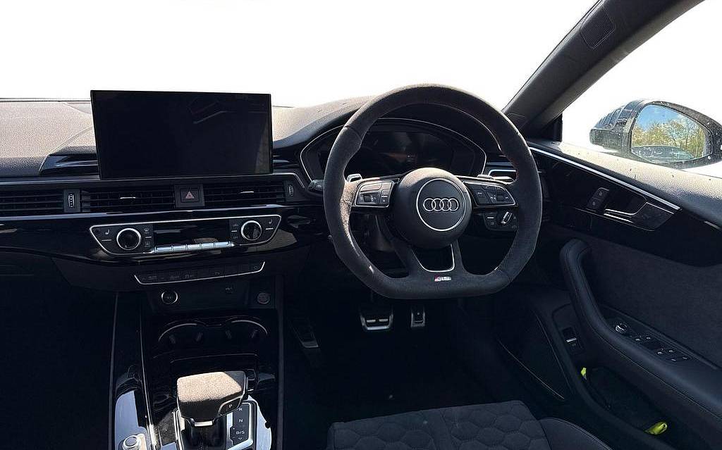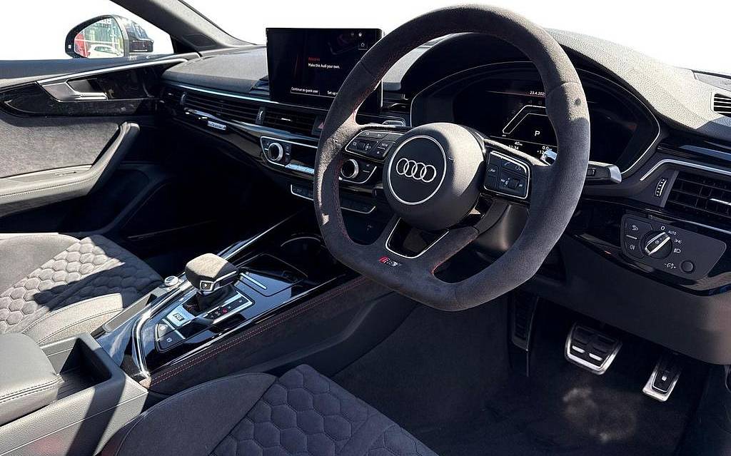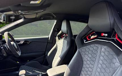Audi RS5 2.9 TFSI V6 Performance Edition Sportback Tiptronic quattro на 20-дюймовых легкосплавных дисках Audi Sport с 5 Y-образными спицами, глянцевые, двухцветные, с противоугонными замками, системой безопасности и обслуживания Audi Connect, системой помощи при перестроении Audi Side Assist, пакетом Black Styling, пакетом Comfort and Sound, круиз-контролем с ограничителем скорости, 3-зонным электронным климат-контролем Deluxe, камерой кругового обзора, DAB-радио, Bluetooth, навигацией и безупречной интеграцией Apple CarPlay/Android Auto. Акустическая система Bang & Olufsen установлена по всему салону.