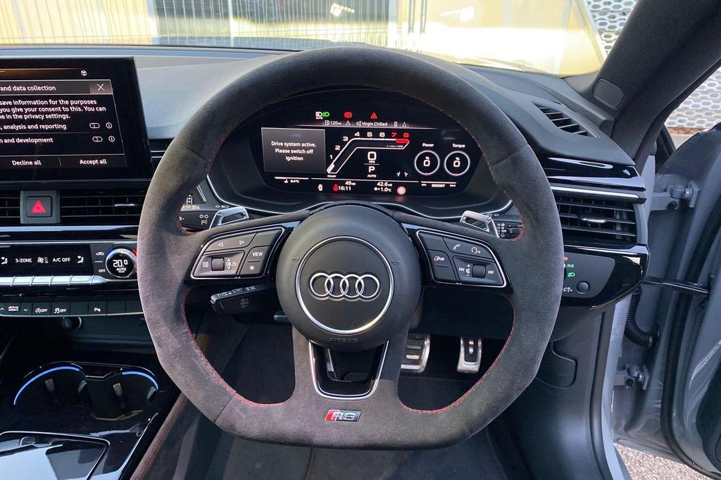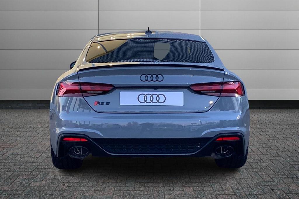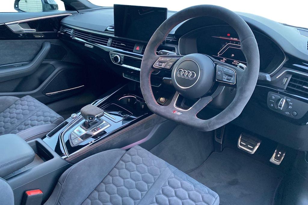 Audi RS5 2.9 TFSI V6 Sportback Tiptronic quattro на 19-дюймовых легкосплавных дисках с 10-спицевым дизайном, кованые в серебристом цвете, керамические тормоза, роскошный 3-зонный электронный климат-контроль, электрорегулируемые передние сиденья, электромеханический усилитель руля, система помощи при трогании на подъеме, навигационная система MMI Navigation Plus с MMI Touch, спортивная выхлопная система RS.