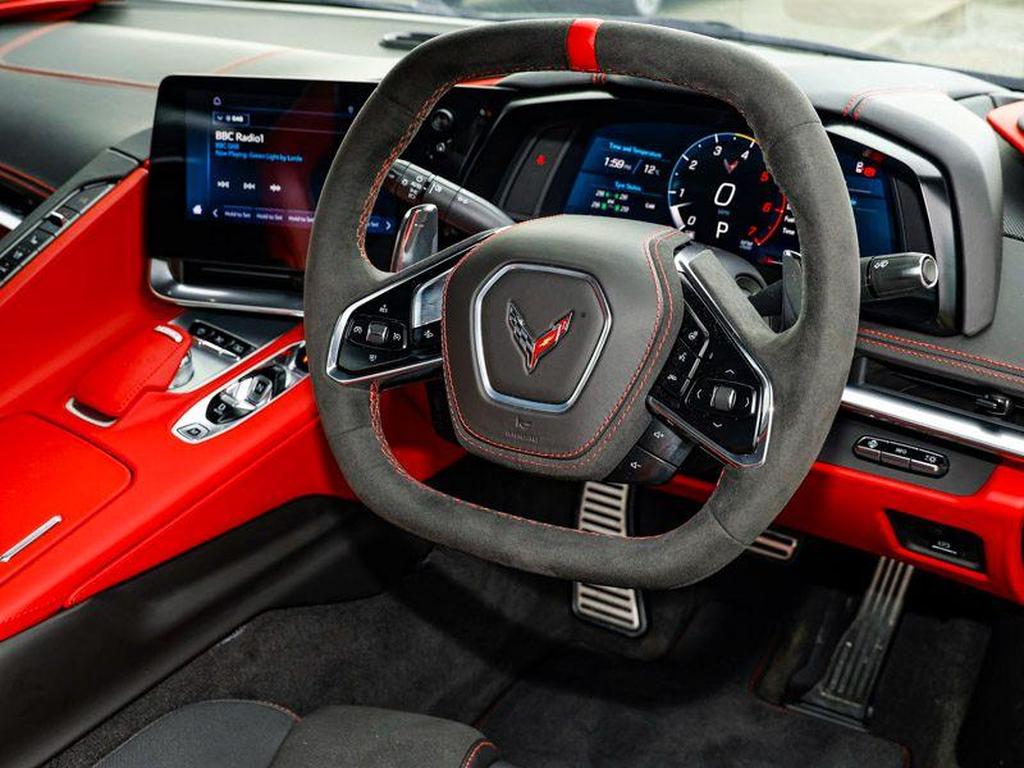 Chevrolet Corvette Stingray 6.2 V8 3LT DCT на 19-дюймовых передних и 20-дюймовые задние легкосплавные дисках с 5 открытыми спицами, окрашенные в ярко-серебристый цвет, ABS (антиблокировочная тормозная система), электроусилитель руля, подогрев и вентиляция сидений водителя и пассажира.Система курсовой устойчивости Active Handling с контролем тяги, автоматический подогрев рулевого колеса, аудиосистема Bose Performance Series с 14 динамиками и технологией активного шумоподавления, двухзонный автоматический климат-контроль с индивидуальными настройками климата для водителя и пассажира, HD-камеры переднего и заднего вида — передняя камера с обзором обочины, бесключевой доступ — запуск двигателя кнопкой, пакет памяти — рулевое колесо — наружные зеркала и память сидений для водителя и пассажира, регистратор данных о производительности, интеграция со смартфоном через Apple CarPlay и Android Auto.