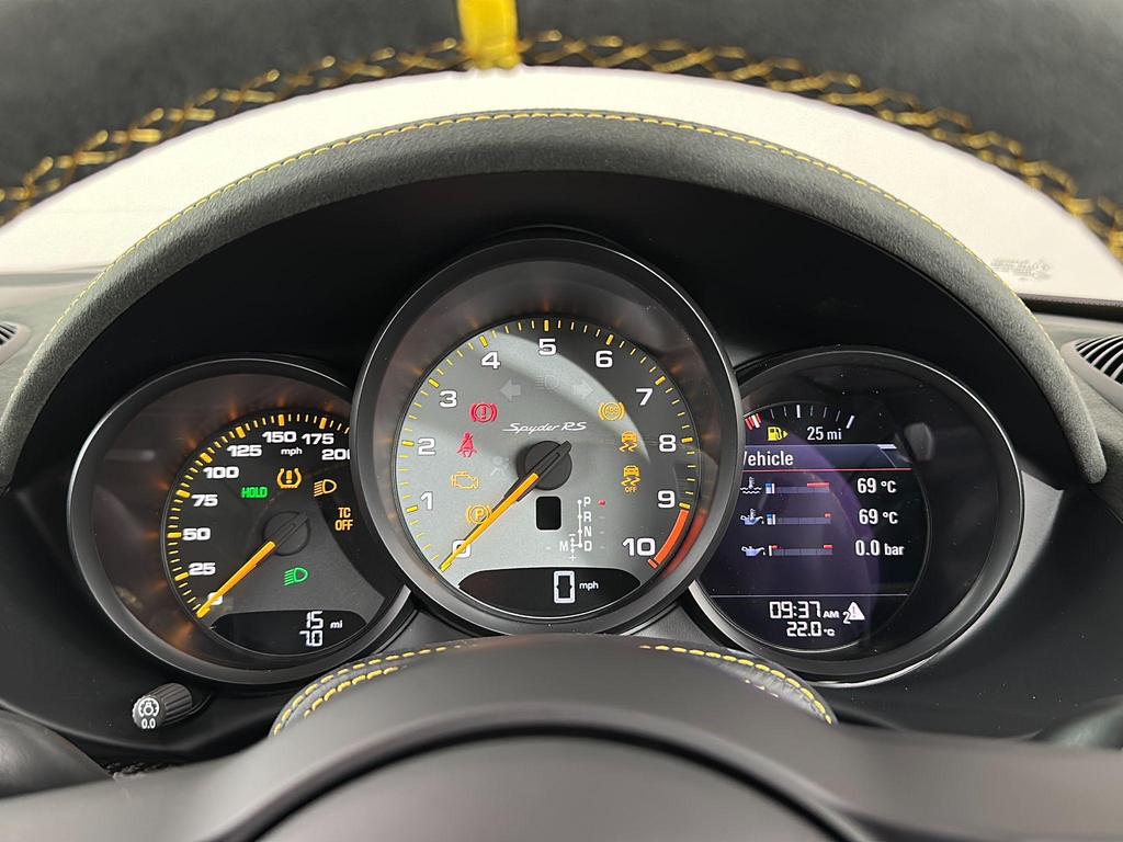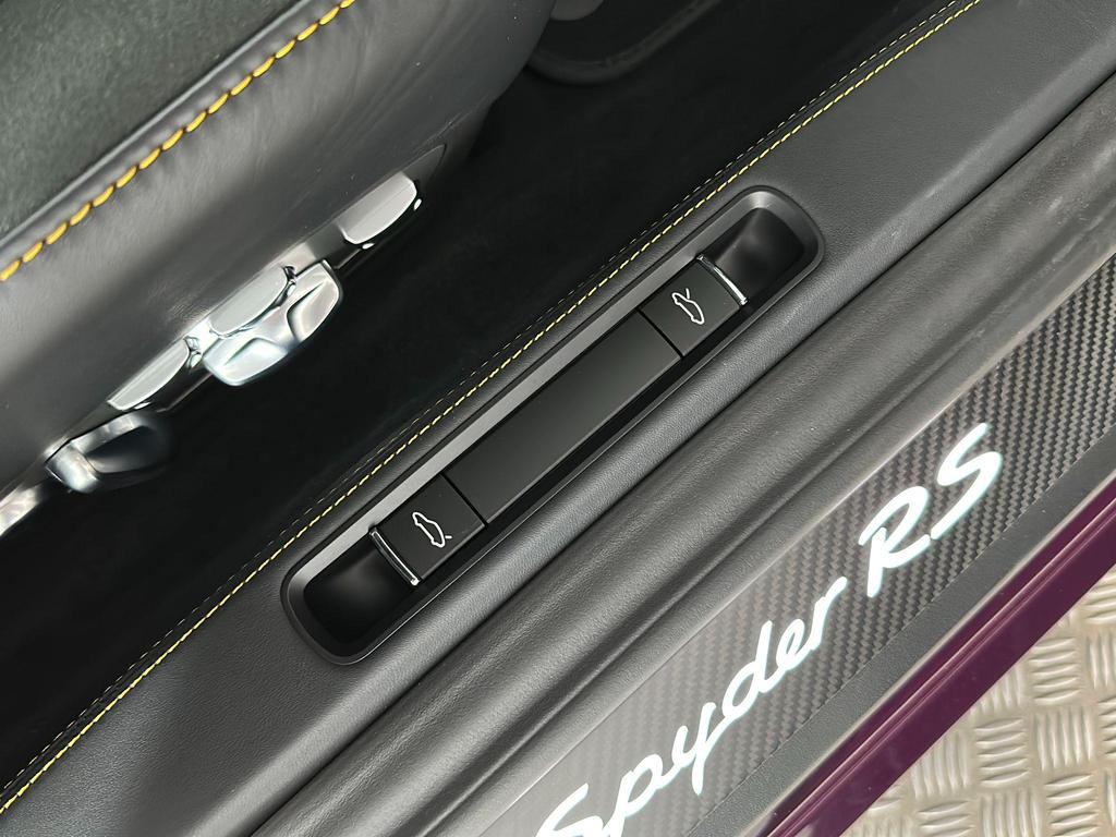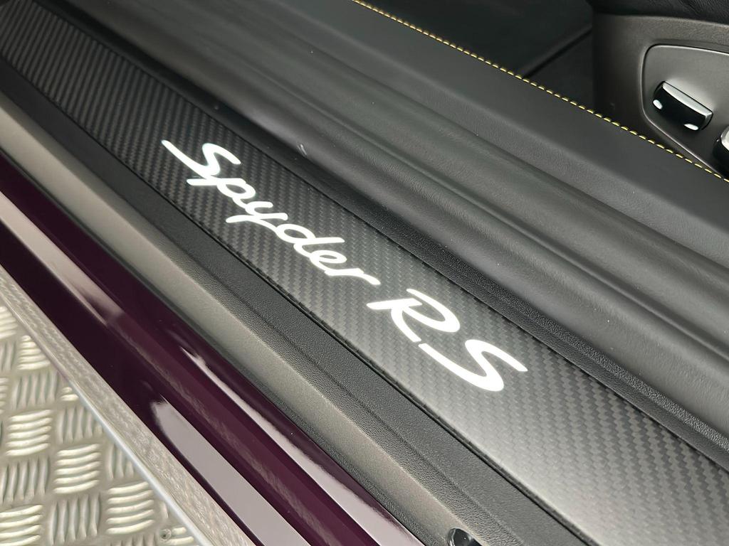 Porsche 718 Spyder 4.0 RS Spyder PDK на 20-дюймовых легкосплавных дисках — 718 Cayman GT4 RS — кованый алюминий — окрашен в темно-серебристый цвет, адаптивные спортивные сиденья Plus — электрорегулировка 18 положений, подогрев сидений, пакет для курящих, пакет Chrono и подготовка для Lap Trigger, адаптивные спортивные сиденья Plus — электрорегулировка 18 положений.Система объемного звучания BOSE, Накладки на пороги из карбона, изготовленные на заказ, с подсветкой, Тормозные суппорты окрашены в черный глянцевый цвет,Помощь при парковке сзади с камерой заднего вида.