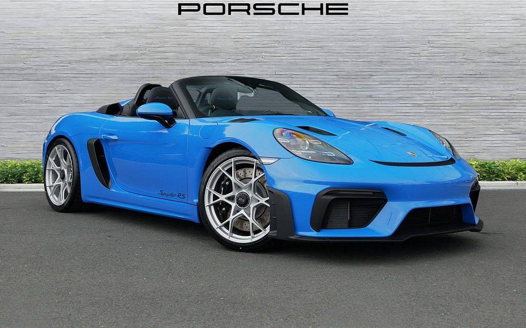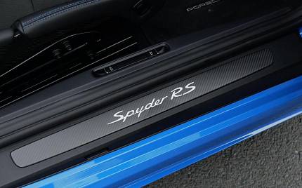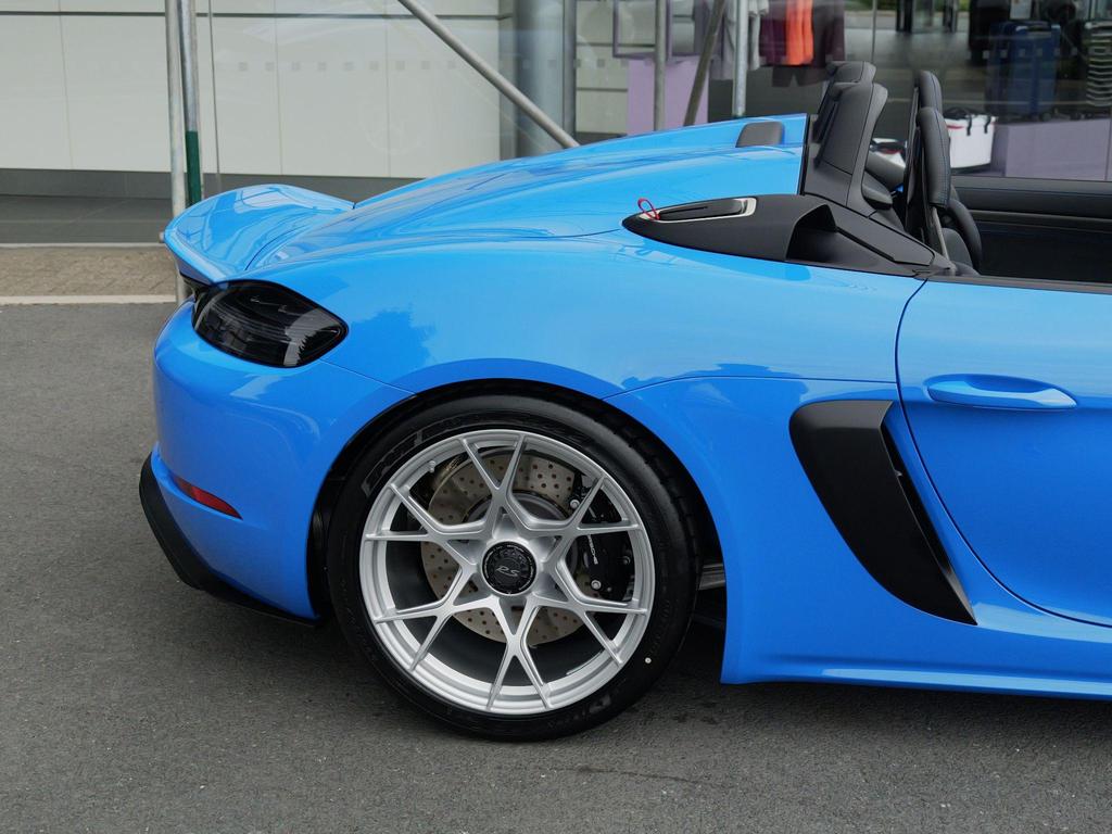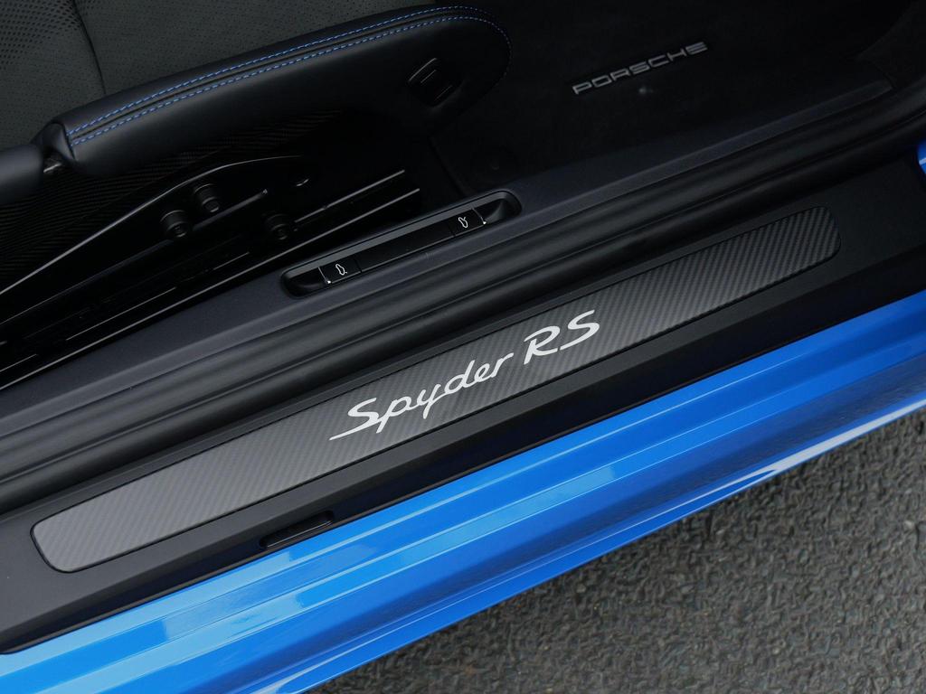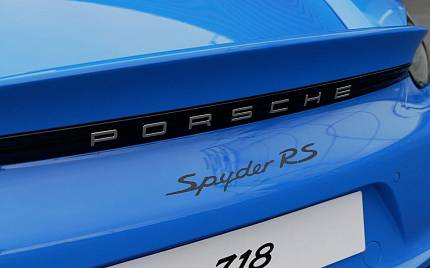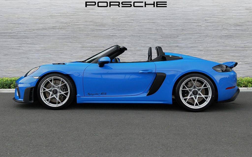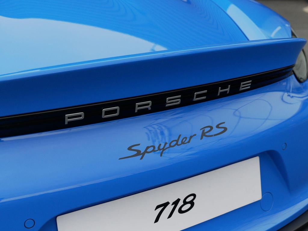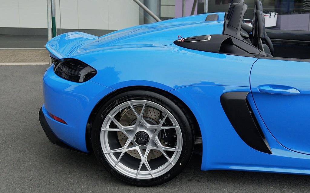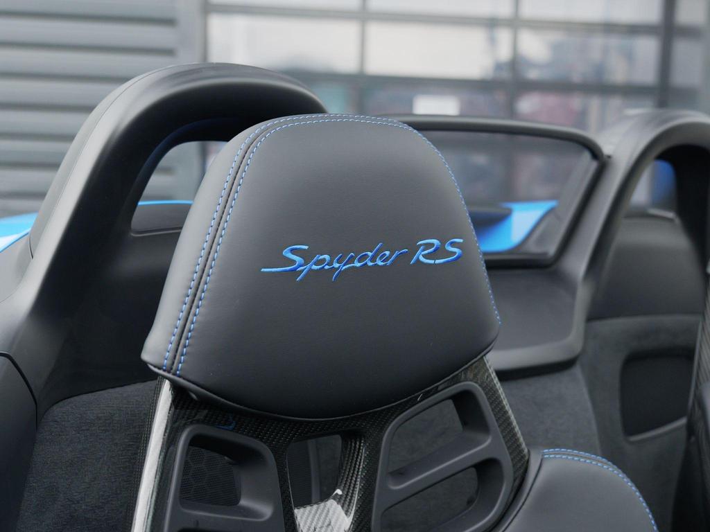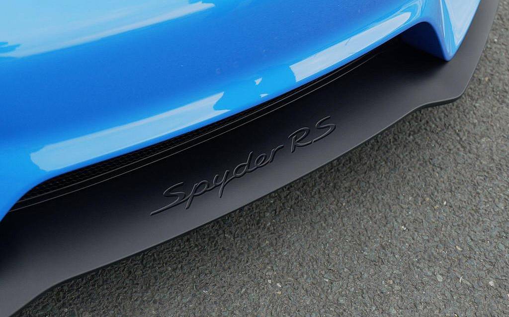 Porsche 718 Spyder 4.0 RS Spyder PDK на 20-дюймовых легкосплавных дисках — 718 Cayman GT4 RS — кованый алюминий — тёмно-серебристый, аудиосистема BOSE Surround Sound, пакет Chrono и подготовка для Lap Trigger, система подъёма передней оси, система помощи при парковке сзади с камерой заднего вида, пакет для курящих.Шасси гоночного типа с регулируемой подвеской, капот из армированного углеродным волокном пластика (CFRP) цвета кузова с черными воздухозаборниками NACA для охлаждения тормозов, круиз-контроль, передние колесные арки из армированного углеродным волокном пластика (CFRP) цвета кузова, включая вентиляцию колесных арок черного цвета, легкая крыша Spyder с ручным приводом из черной ткани.