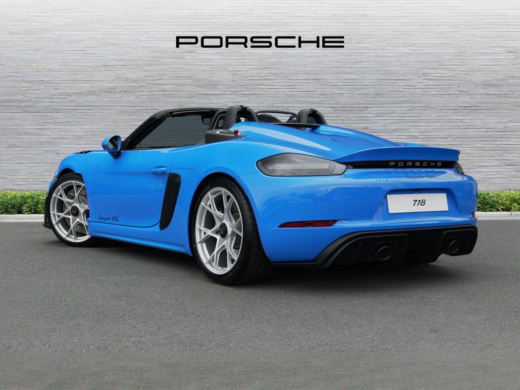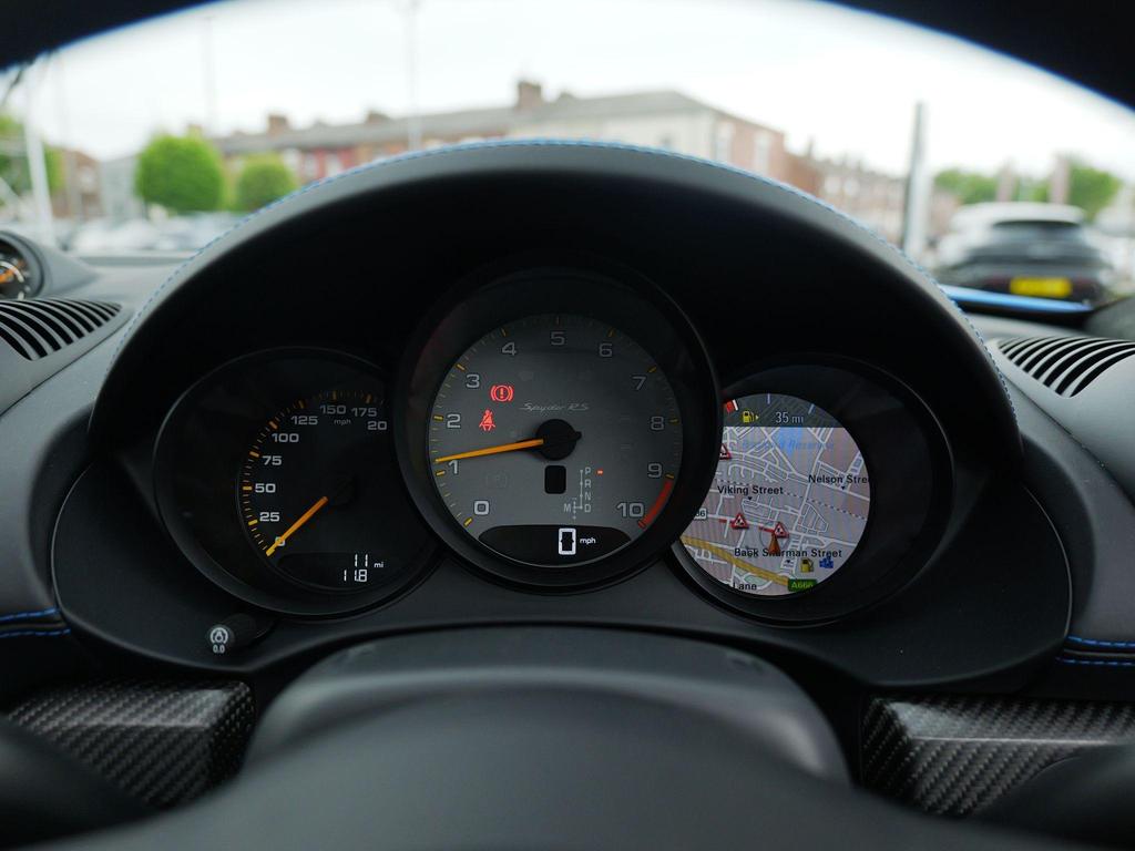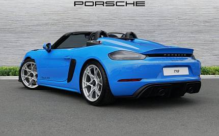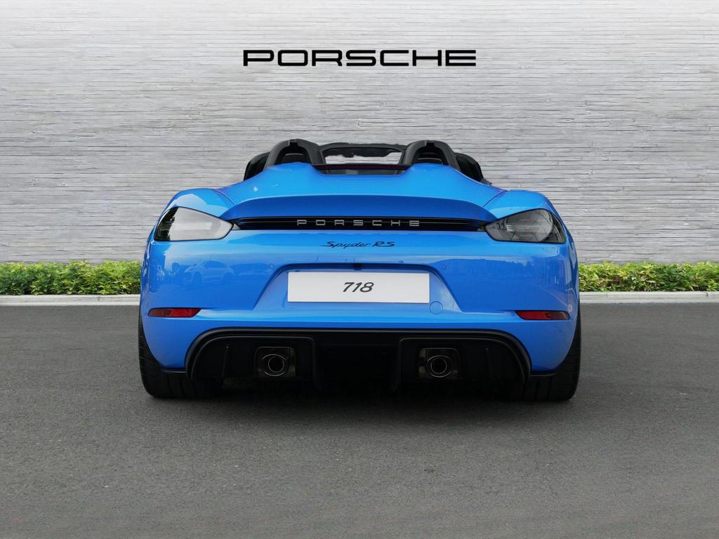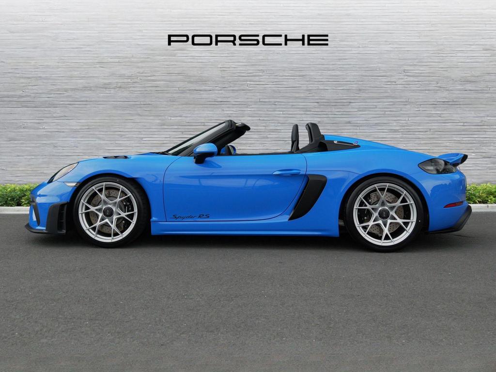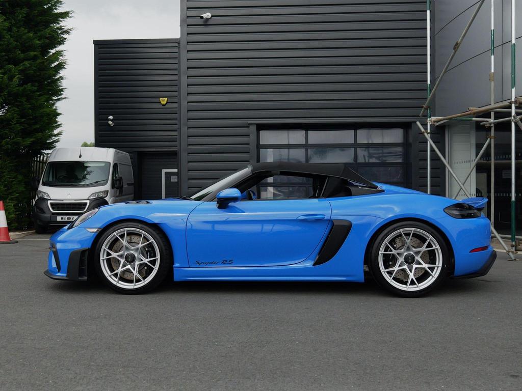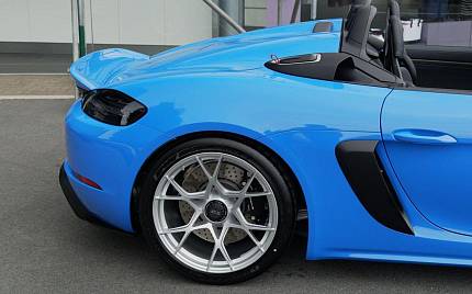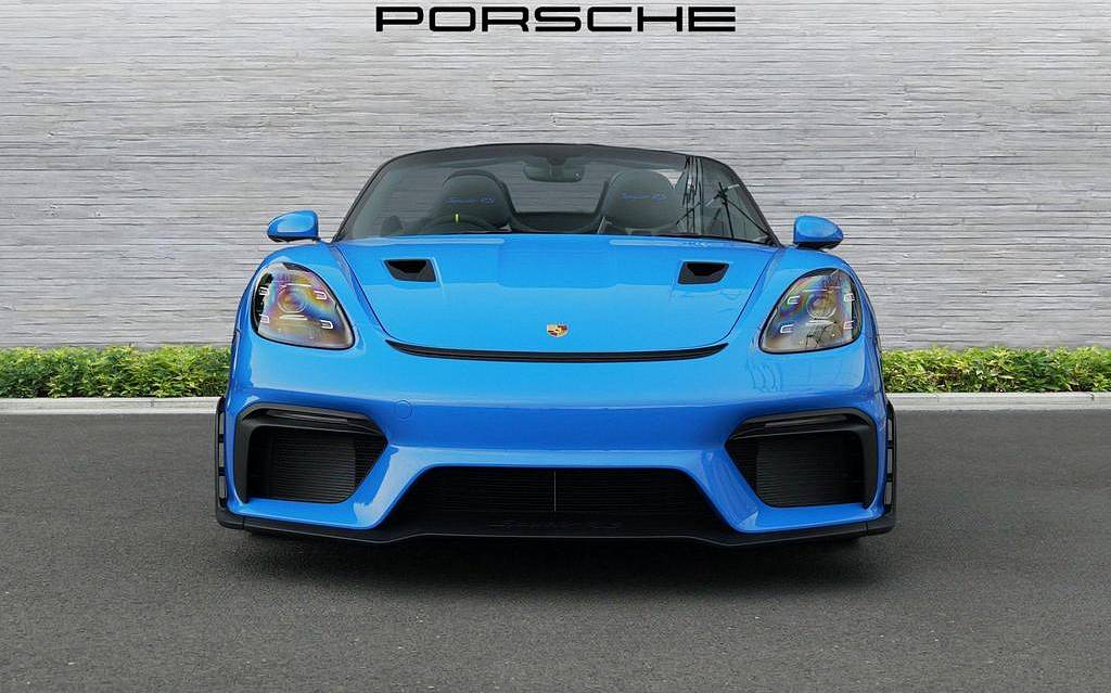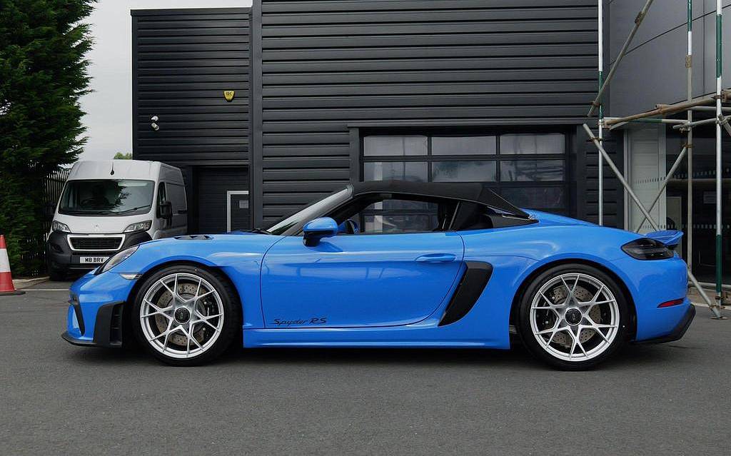 Porsche 718 Spyder 4.0 RS Spyder PDK на 20-дюймовых легкосплавных дисках — 718 Cayman GT4 RS — кованый алюминий — тёмно-серебристый, аудиосистема BOSE Surround Sound, пакет Chrono и подготовка для Lap Trigger, система подъёма передней оси, система помощи при парковке сзади с камерой заднего вида, пакет для курящих.Шасси гоночного типа с регулируемой подвеской, капот из армированного углеродным волокном пластика (CFRP) цвета кузова с черными воздухозаборниками NACA для охлаждения тормозов, круиз-контроль, передние колесные арки из армированного углеродным волокном пластика (CFRP) цвета кузова, включая вентиляцию колесных арок черного цвета, легкая крыша Spyder с ручным приводом из черной ткани.