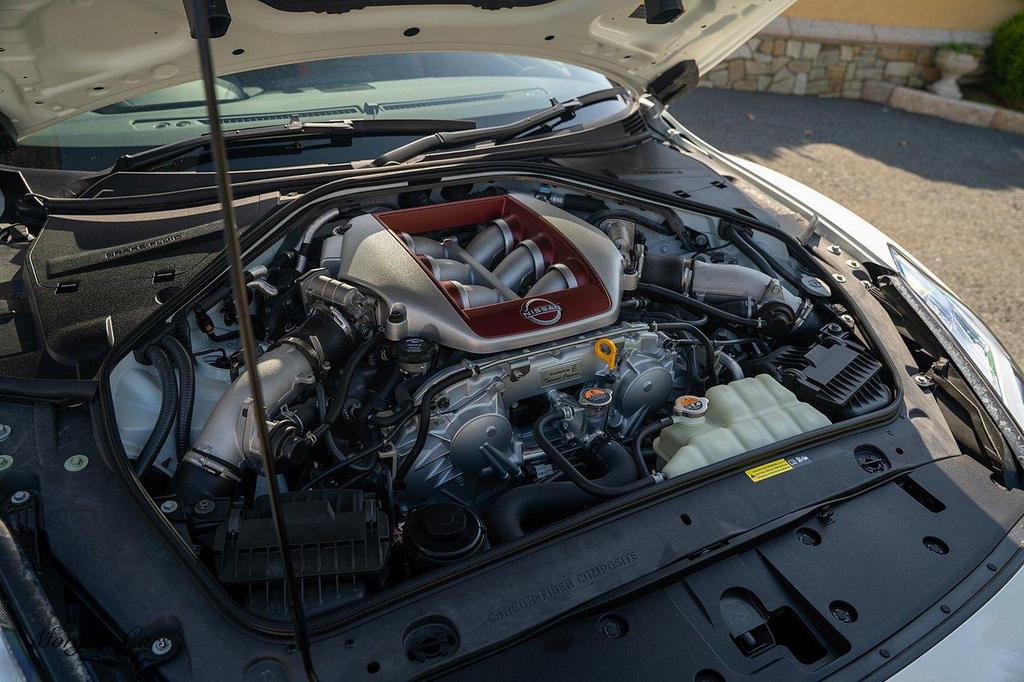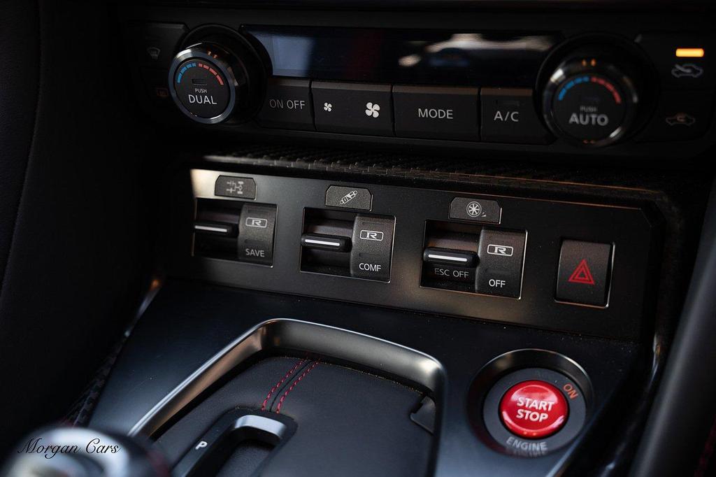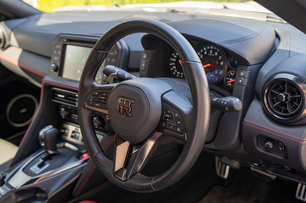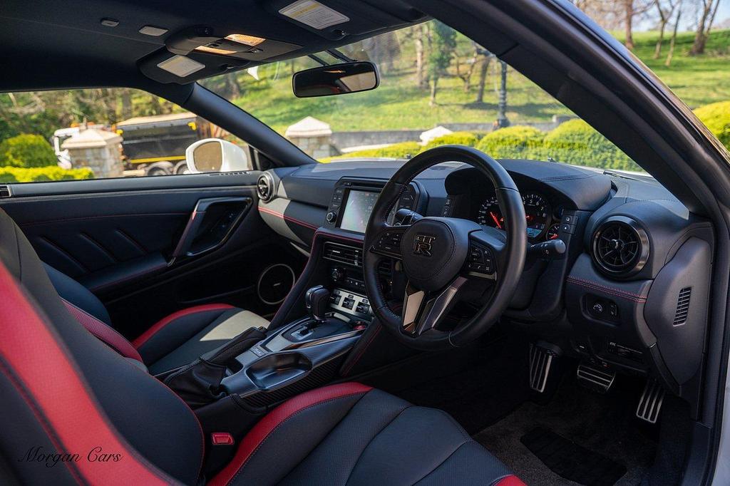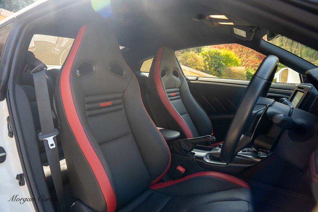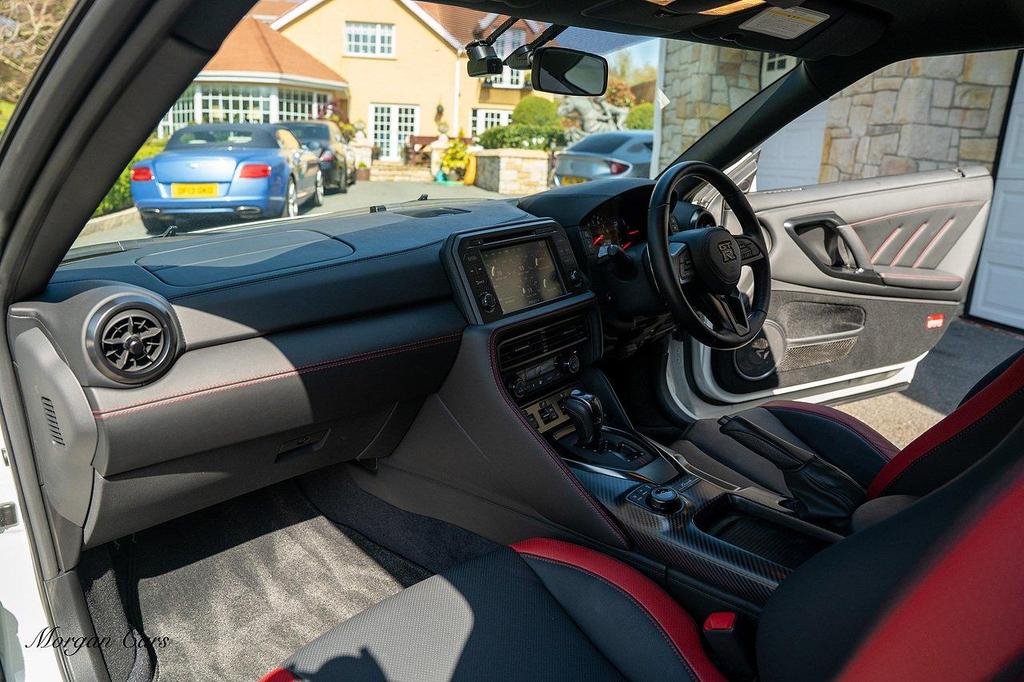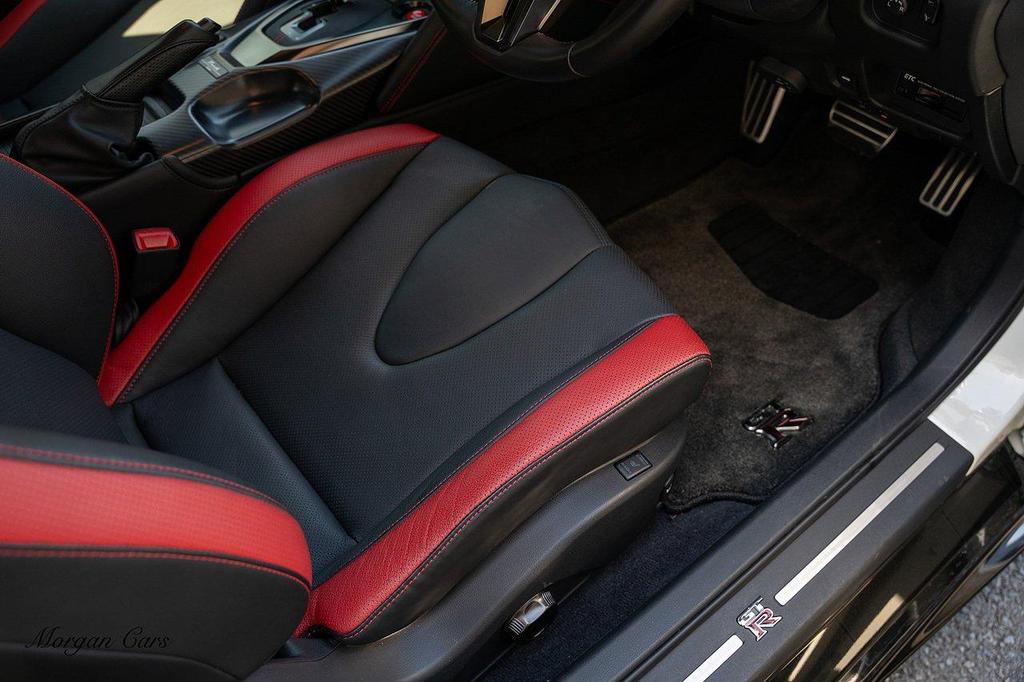 Nissan GT-R 3.8 V6 Track Edition Engineered by NISMO Auto 4WD Euro 6 2dr на 20-дюймовых легкосплавных дисках Rays Nismo, проклейка кузова Nismo для повышения жесткости, титановая задняя выхлопная система, отделка салона матовым карбоном, сиденья Recaro Performance с контрастными красными элементами.