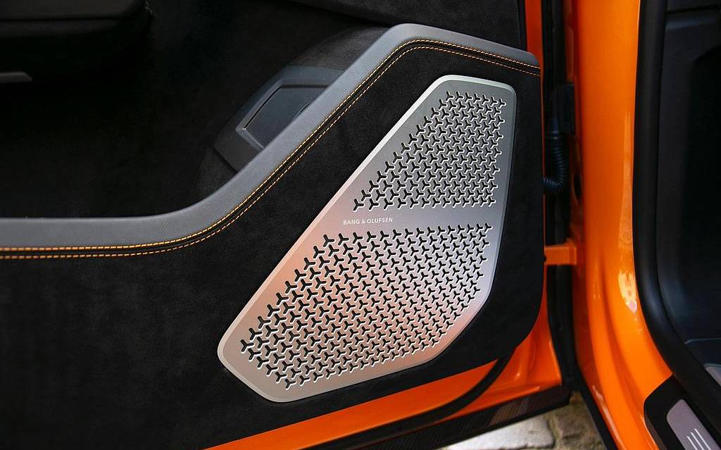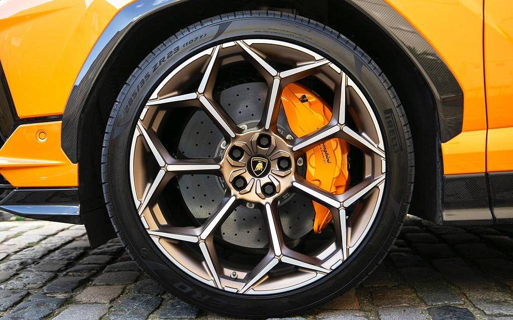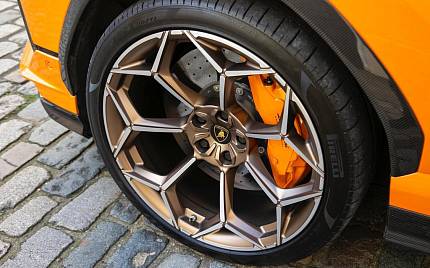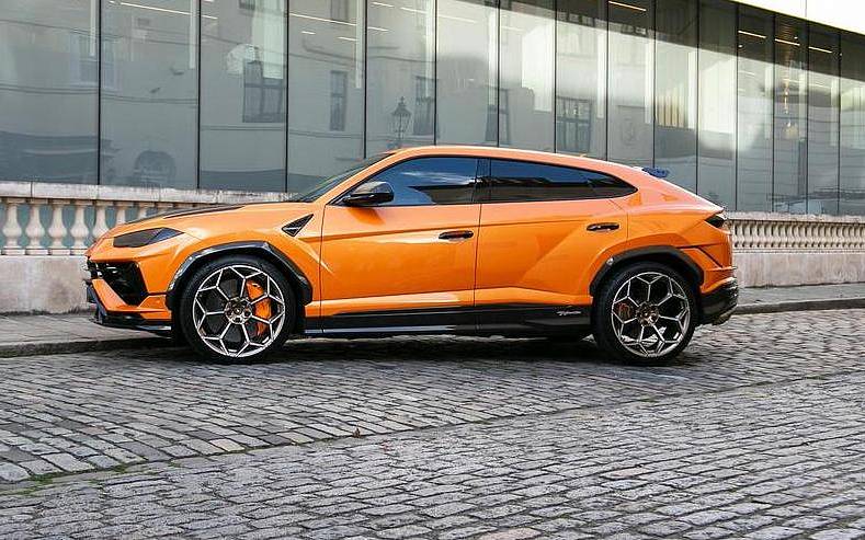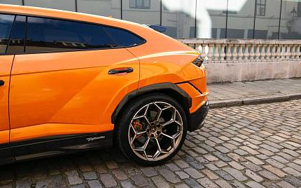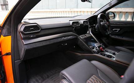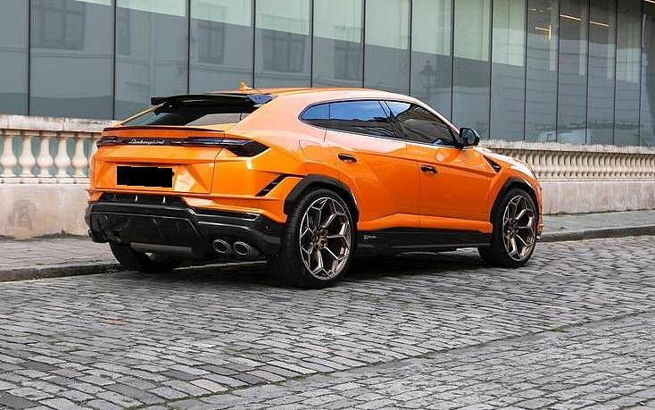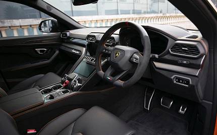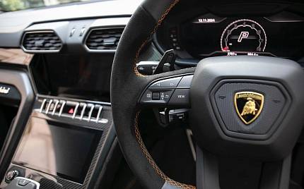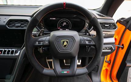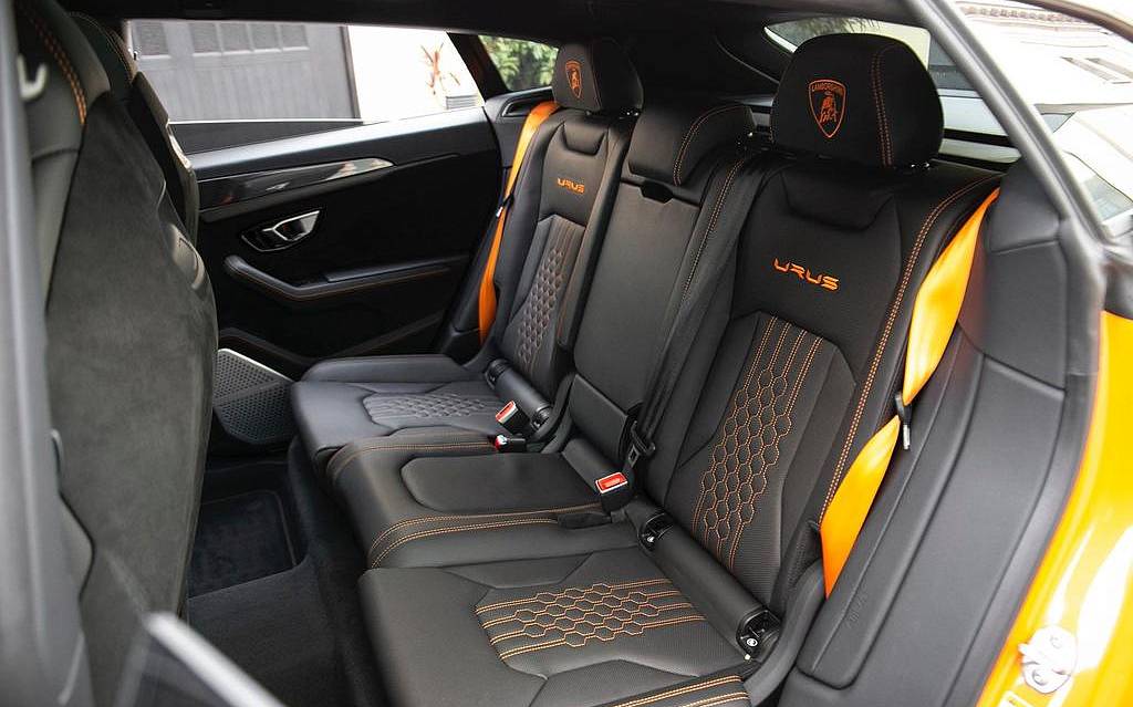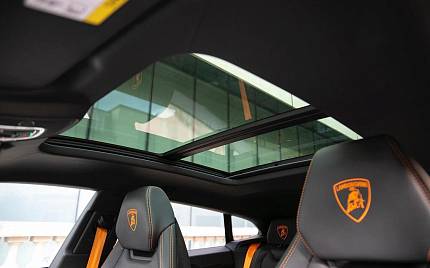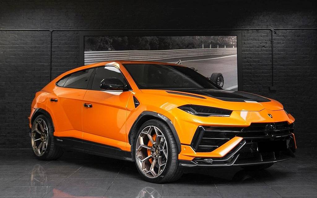 Lamborghini Urus Performante Panoramic Sunroof V8 4.0 на 23 дюймовых дисках Pelope Diamond Finished Bronze, Arancio Borealis, полный пакет внешней отделки из углеродного волокна, капот из видимого блестящего углеродного волокна, титановые колесные болты, оранжевые суппорты, задний спойлер из углеродного волокна, выхлопные трубы из титана, тонированные стекла (со звуко- и теплоизоляцией), одноцветная кожа Nero Cosmus с отделкой Performante, ремни безопасности Arancio Leonis, панорамная крыша, полный пакет ADAS с проекционным дисплеем, полностью электрические передние сиденья с вентиляцией и массажем, подогрев задних сидений, подогрев рулевого колеса, усовершенствованная 3D-аудиосистема Bang & Olufsen, коврики с кожаной окантовкой и двойной строчкой, ковровое покрытие Nero Ade, система премиум-качества воздуха, радио DAB.