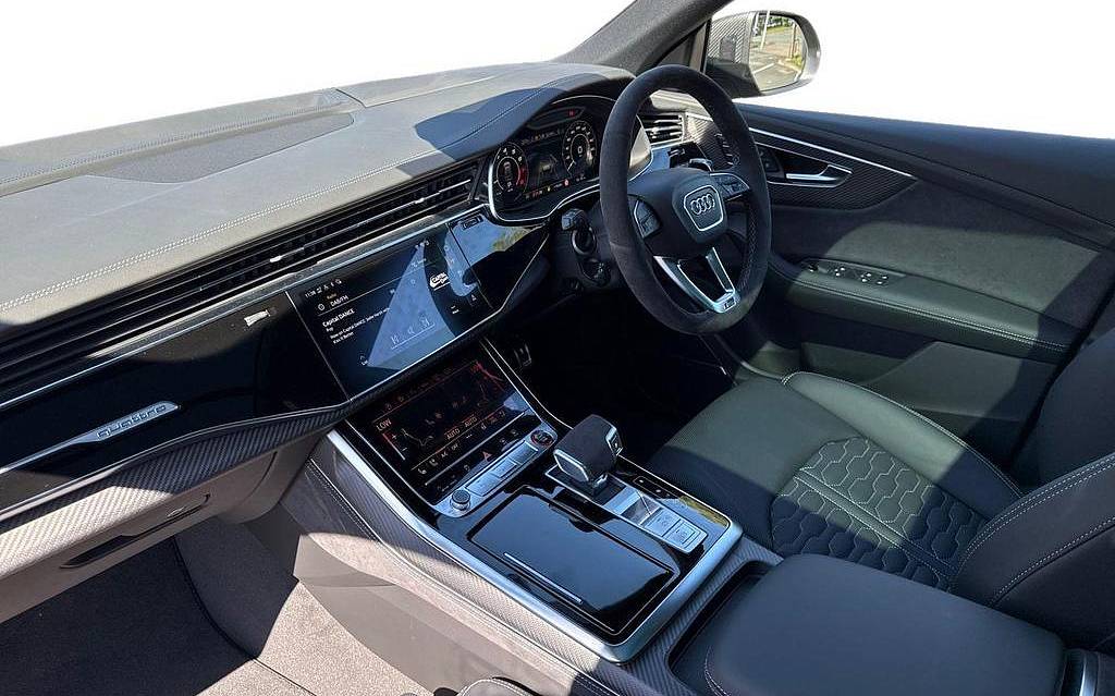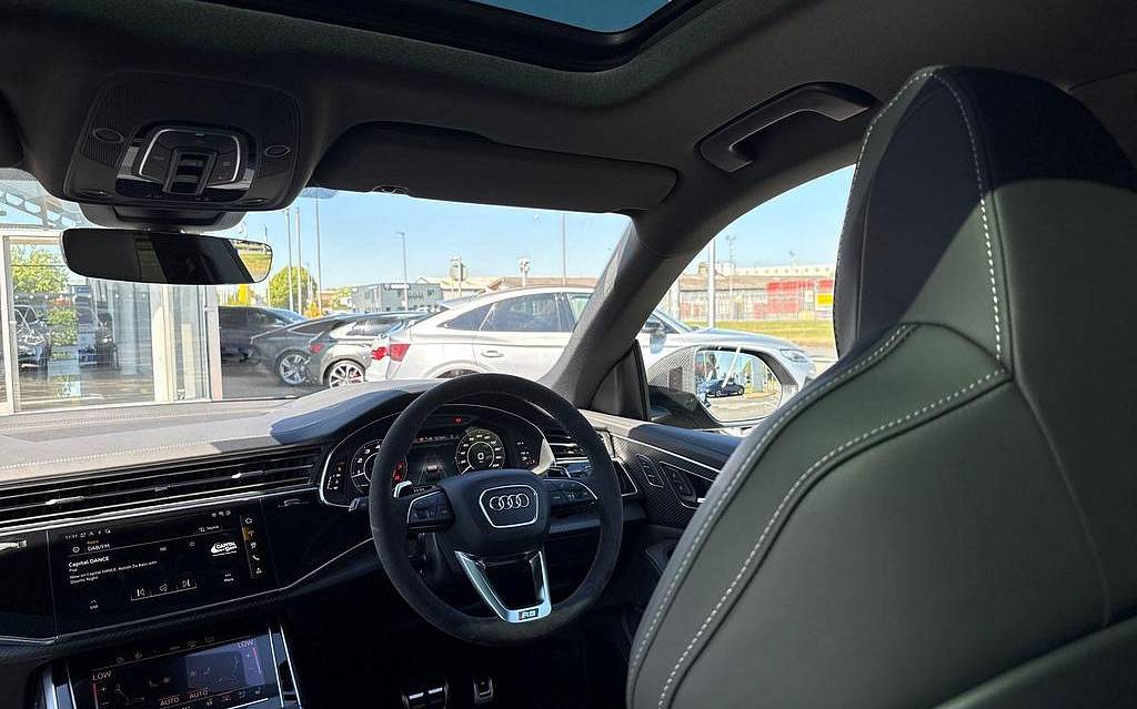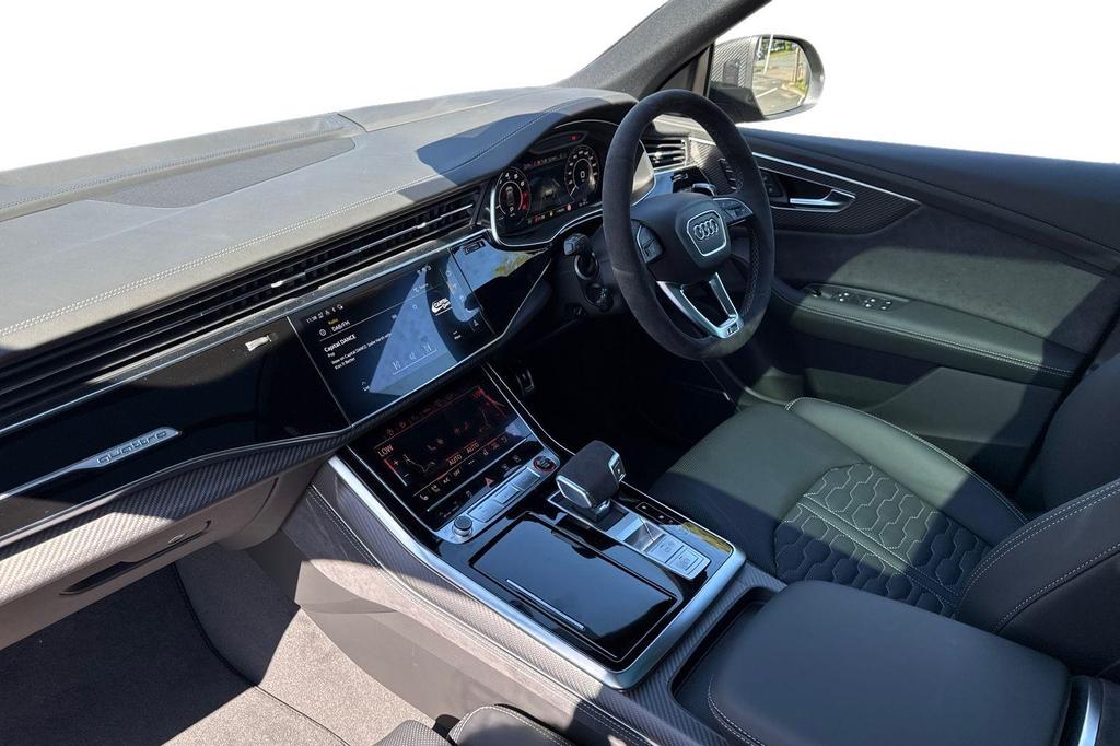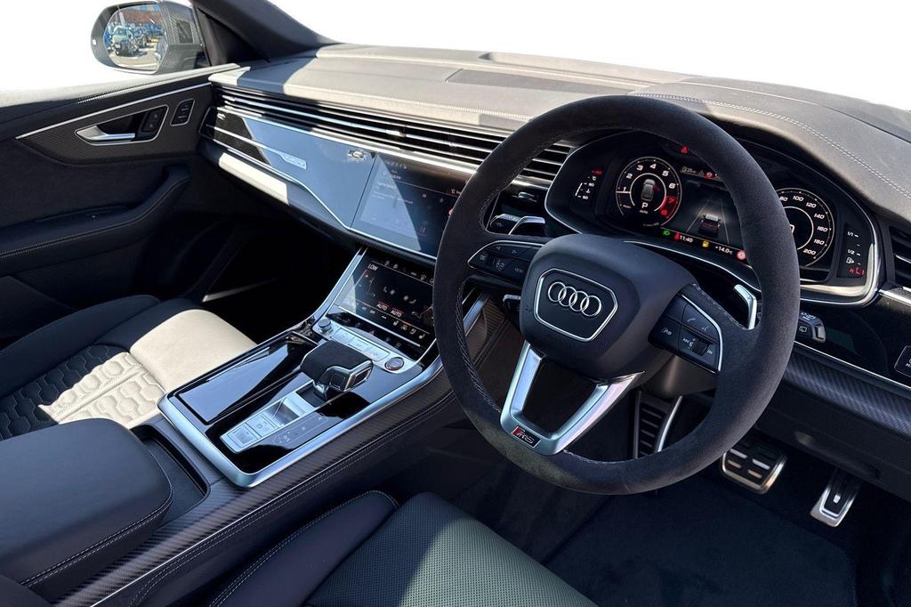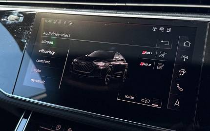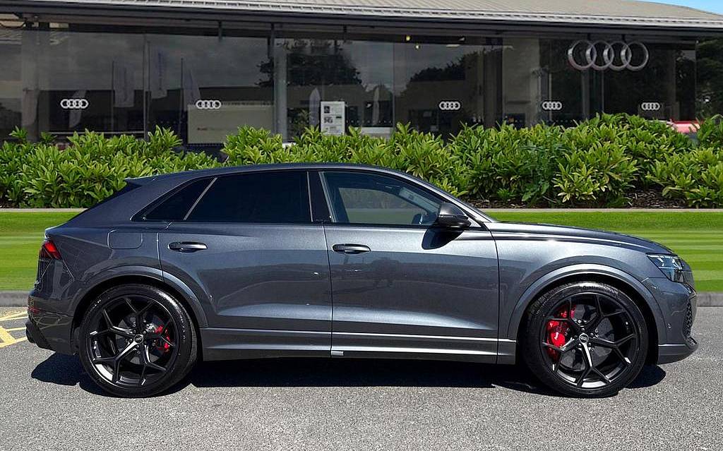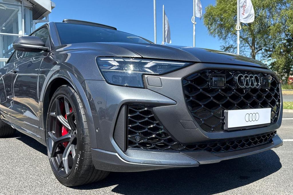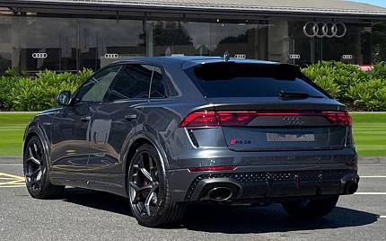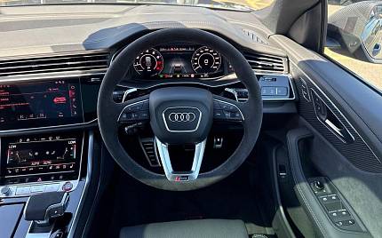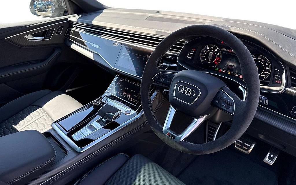 Audi RSQ8 4.0 TFSI V8 Performance Carbon Vorsprung Tiptronic quattro Panoramic Roof на 23-дюймовых легкосплавных дисках— 5 Y-образных спиц — Audi Sport — матовый контрастный черный, камера на 360 градусов, 4-позиционная поясничная поддержка для передних сидений, адаптивный круиз-контроль с функцией экстренной помощи, система парковки Parking System Plus с дисплеем на 360 градусов — передние, задние и боковые датчики, тонированные стекла — задние и задние боковые окна — от средней стойки назад, подогрев передних сидений.