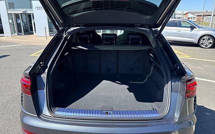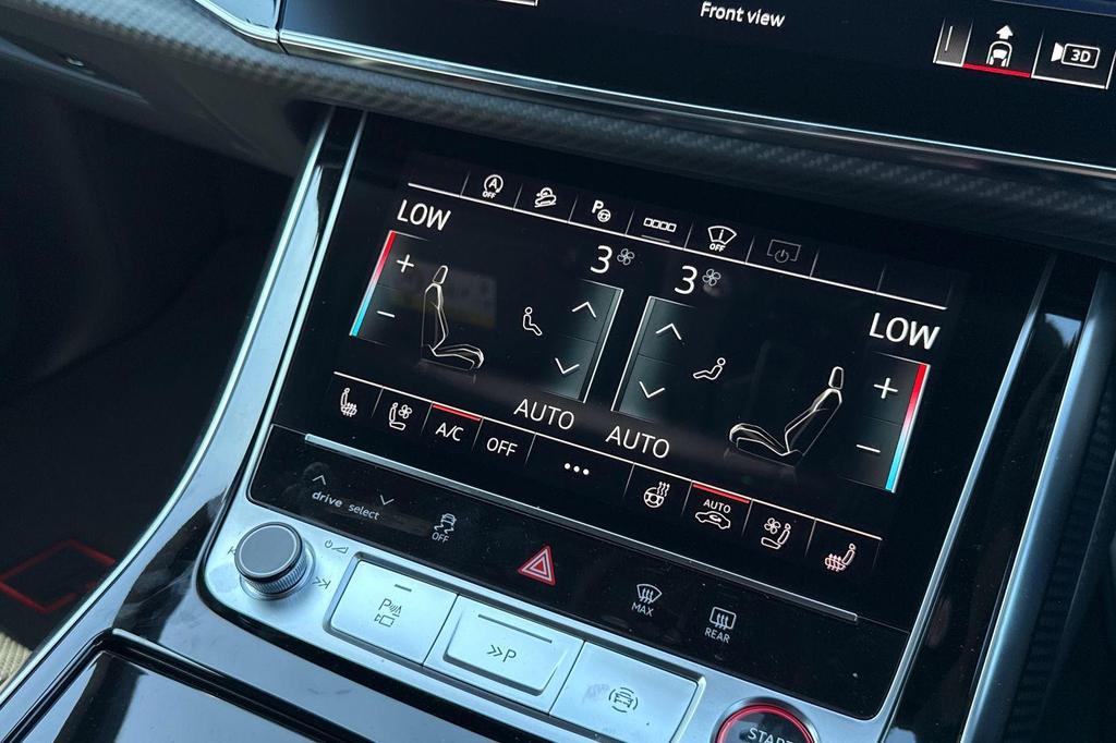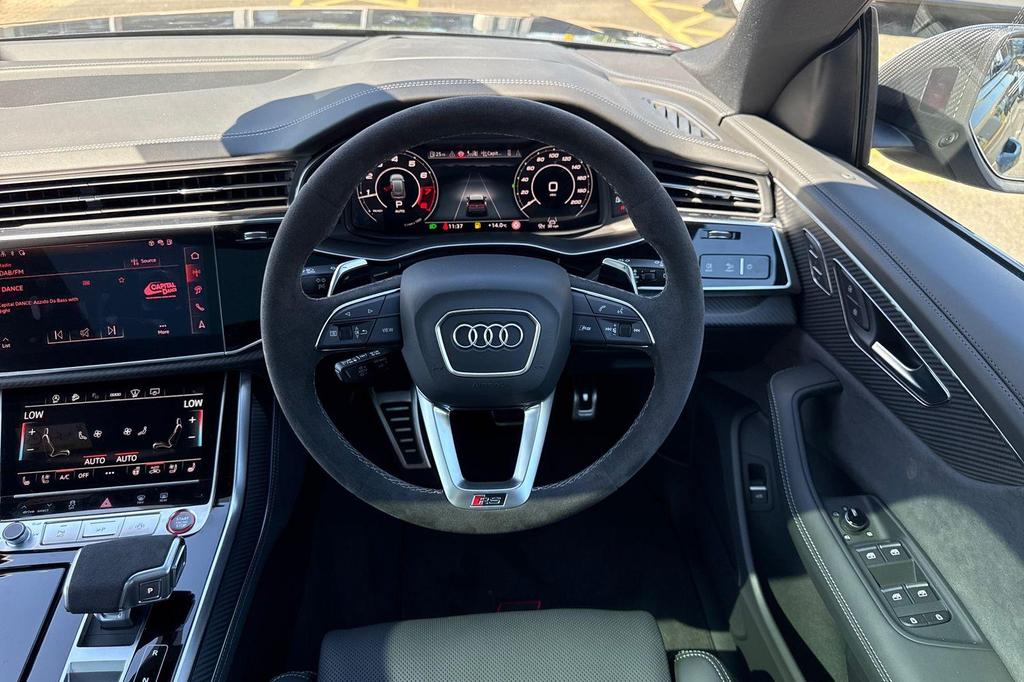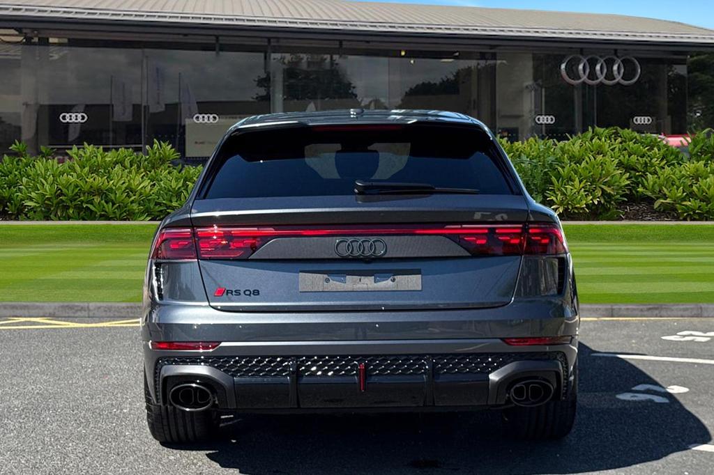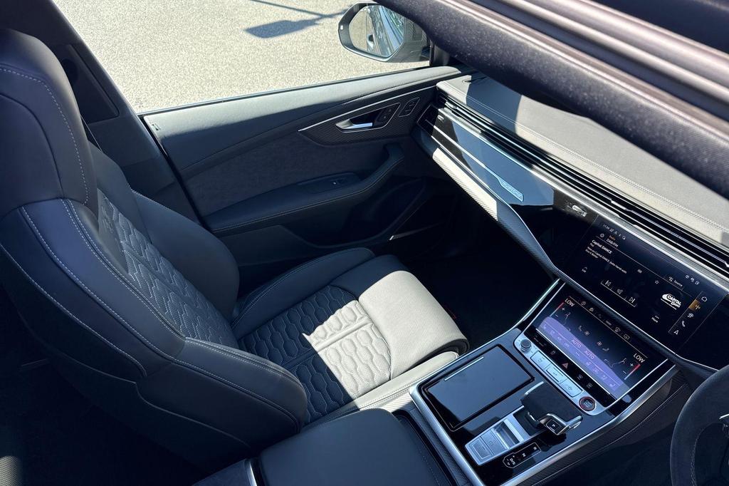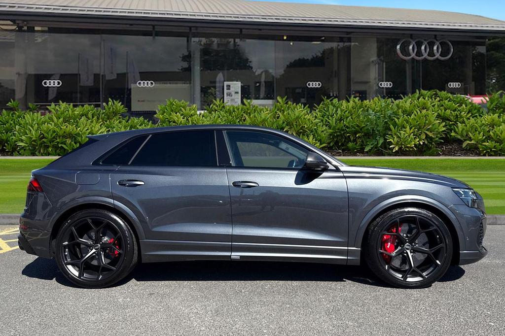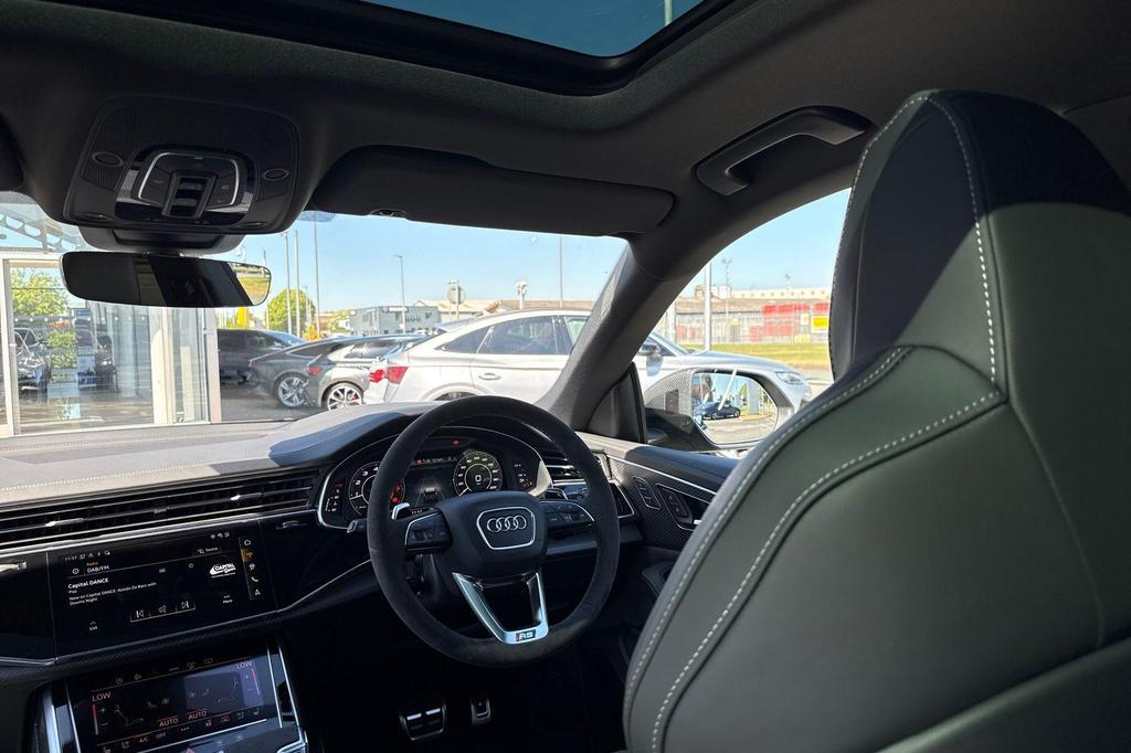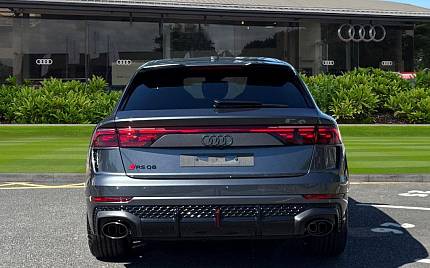 Audi RSQ8 4.0 TFSI V8 Performance Carbon Vorsprung Tiptronic quattro Panoramic Roof на 23-дюймовых легкосплавных дисках— 5 Y-образных спиц — Audi Sport — матовый контрастный черный, камера на 360 градусов, 4-позиционная поясничная поддержка для передних сидений, адаптивный круиз-контроль с функцией экстренной помощи, система парковки Parking System Plus с дисплеем на 360 градусов — передние, задние и боковые датчики, тонированные стекла — задние и задние боковые окна — от средней стойки назад, подогрев передних сидений.