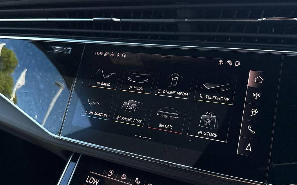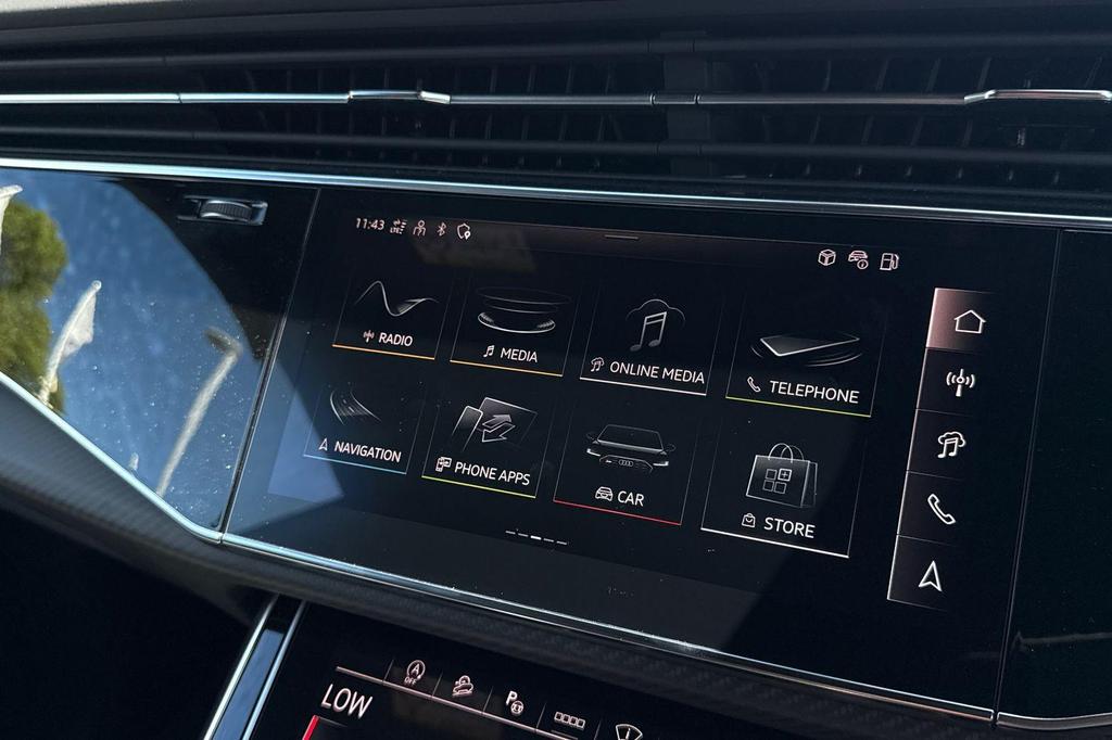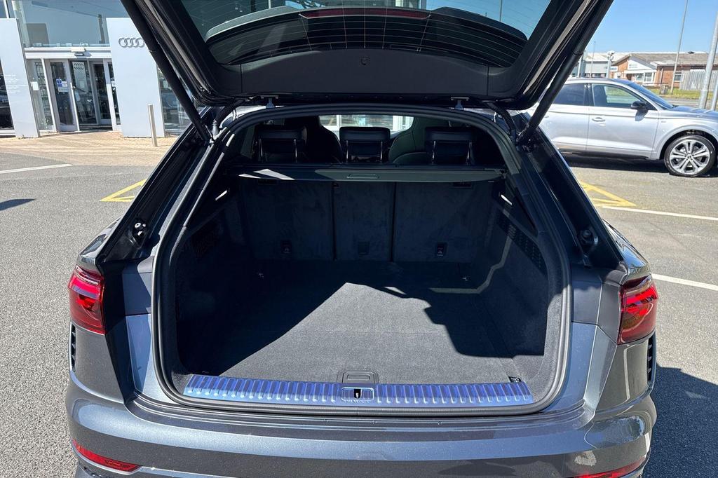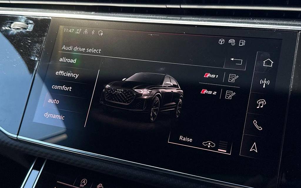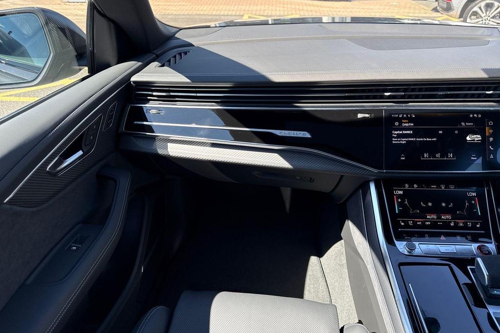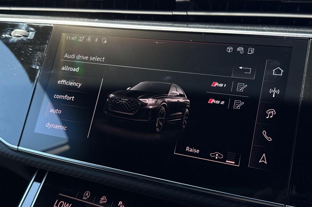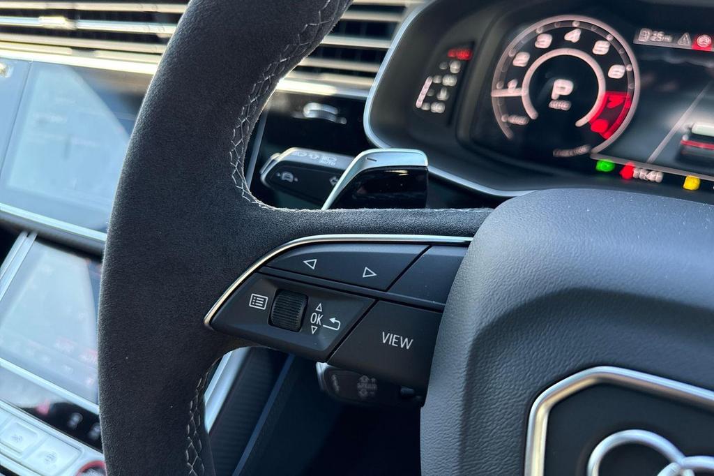 Audi RSQ8 4.0 TFSI V8 Performance Carbon Vorsprung Tiptronic quattro Panoramic Roof на 23-дюймовых легкосплавных дисках— 5 Y-образных спиц — Audi Sport — матовый контрастный черный, камера на 360 градусов, 4-позиционная поясничная поддержка для передних сидений, адаптивный круиз-контроль с функцией экстренной помощи, система парковки Parking System Plus с дисплеем на 360 градусов — передние, задние и боковые датчики, тонированные стекла — задние и задние боковые окна — от средней стойки назад, подогрев передних сидений.