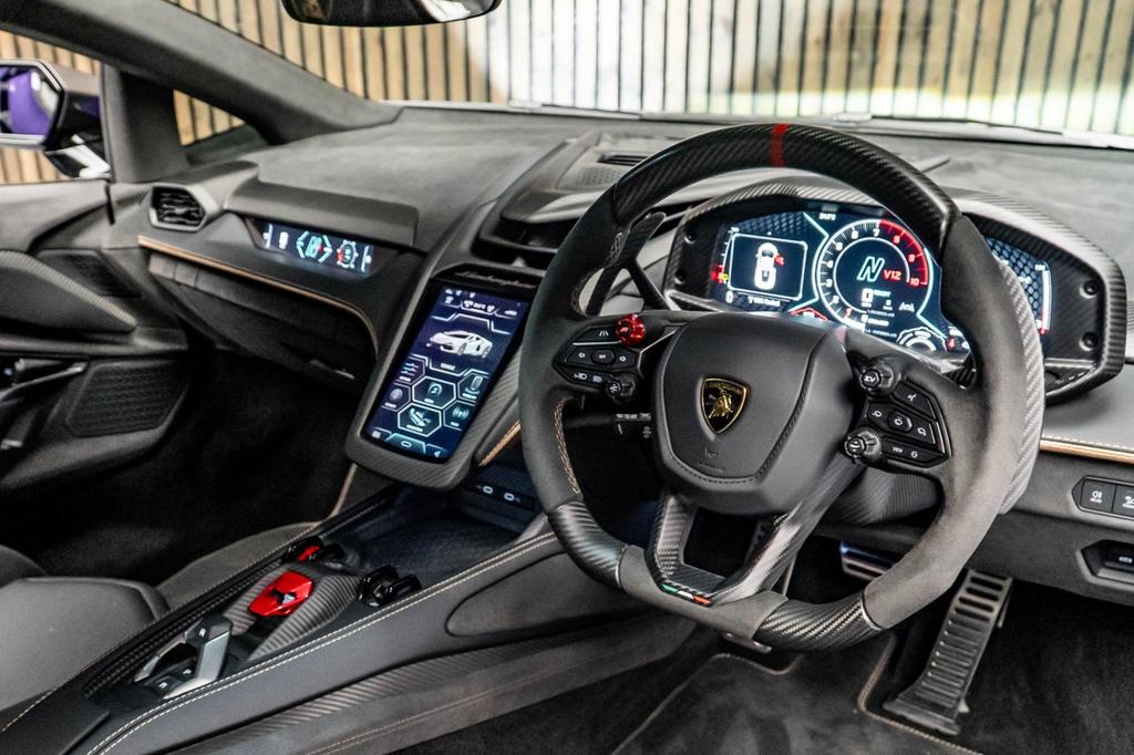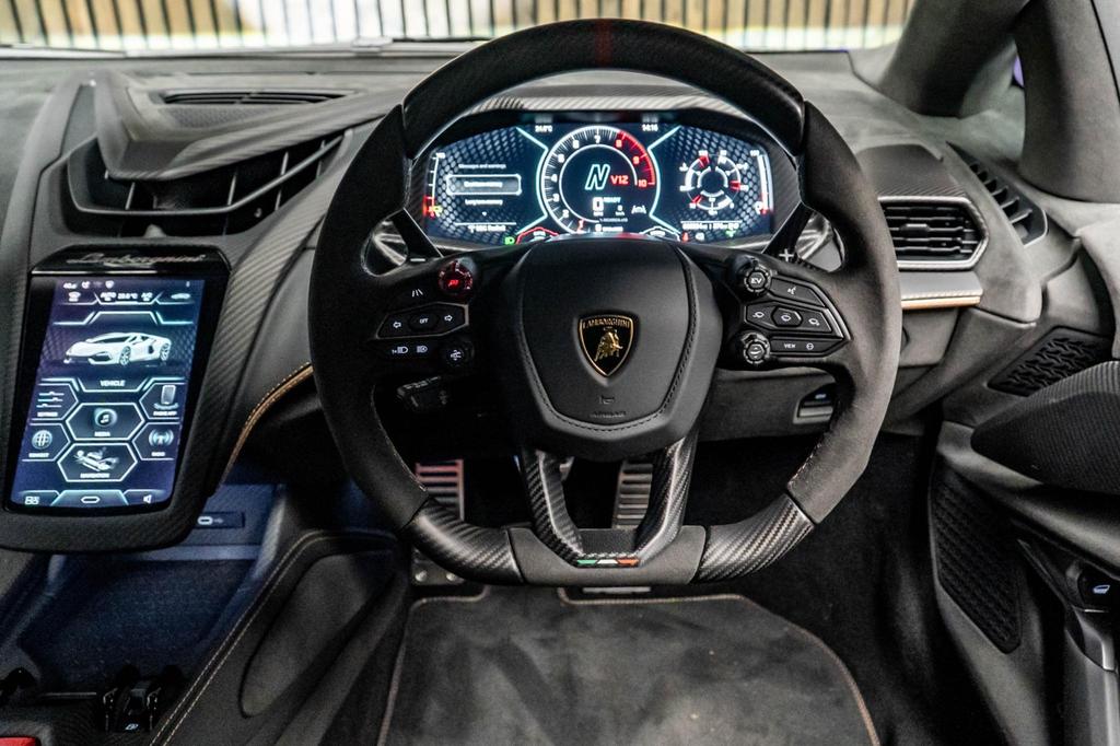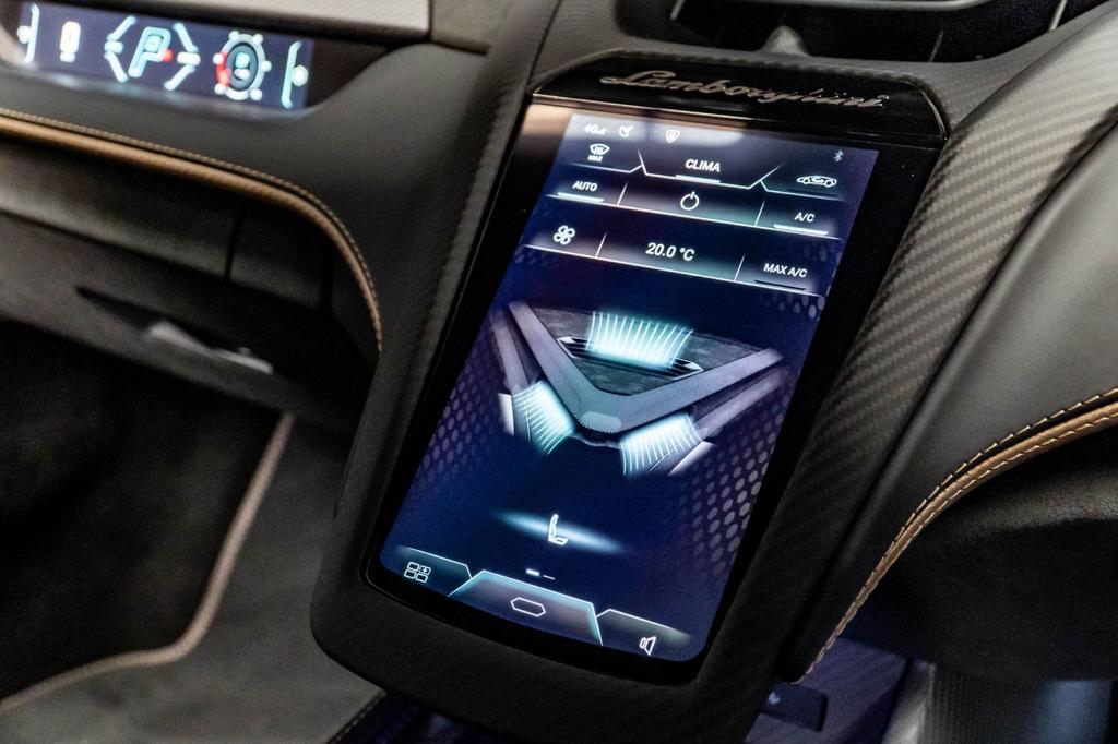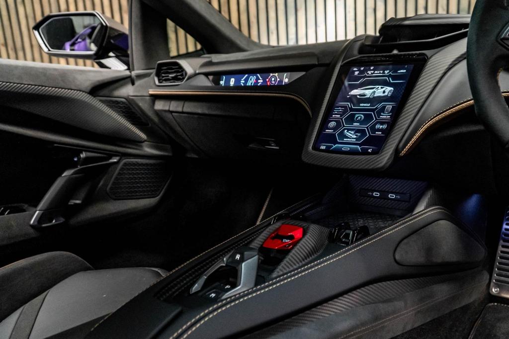 Lamborghini Revuelto 6.5 V12 HPEV 3.8kWh AMT на 20-дюймовых передних и на 21-дюймовых задних легкосплавных дисках — Venancio — литые — блестящего серебристого цвета, EPS — электроусилитель руля, передняя подъемная система, электрические передние стеклоподъемники, тормозные суппорты — CCB — черные непрозрачные.Стандартный пакет ADAS, включающий передние и задние датчики парковки, а также камеру заднего вида для облегчения парковки.