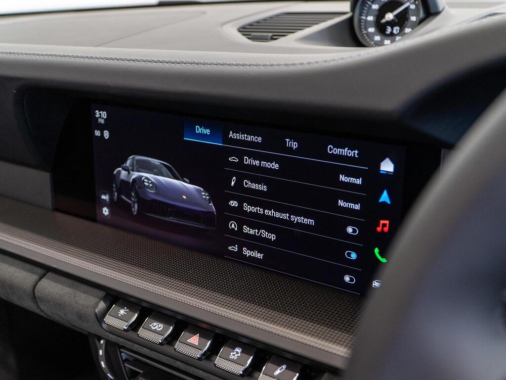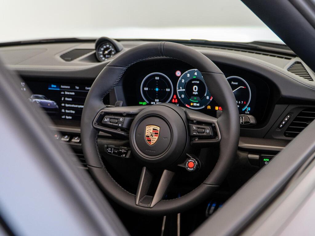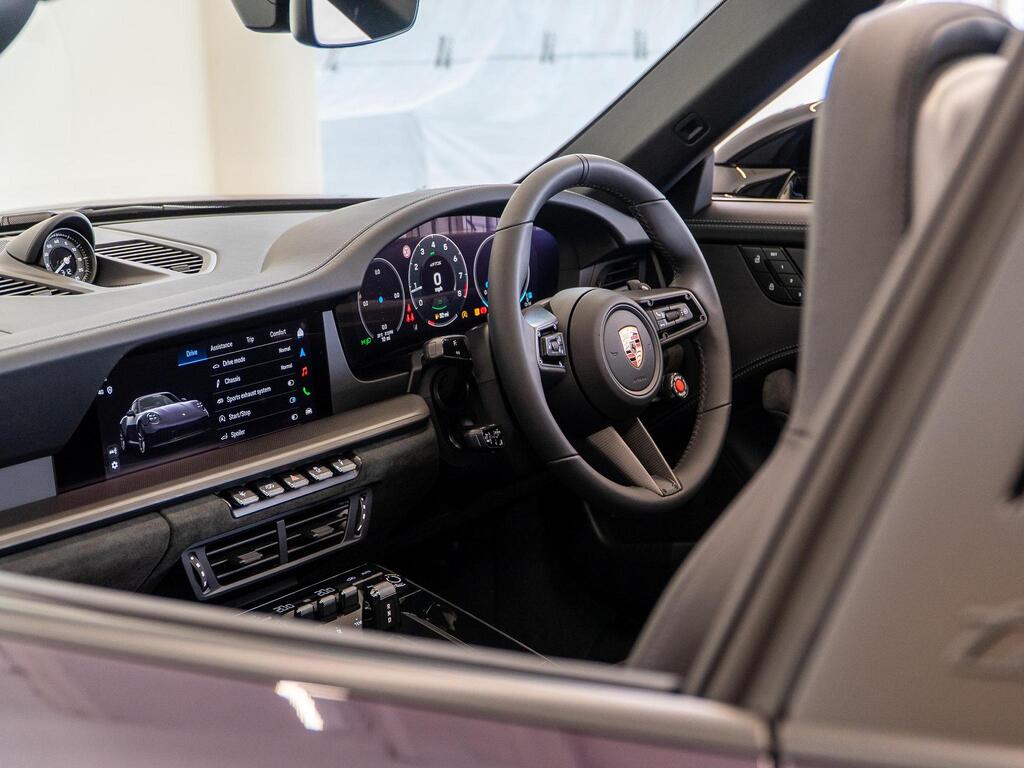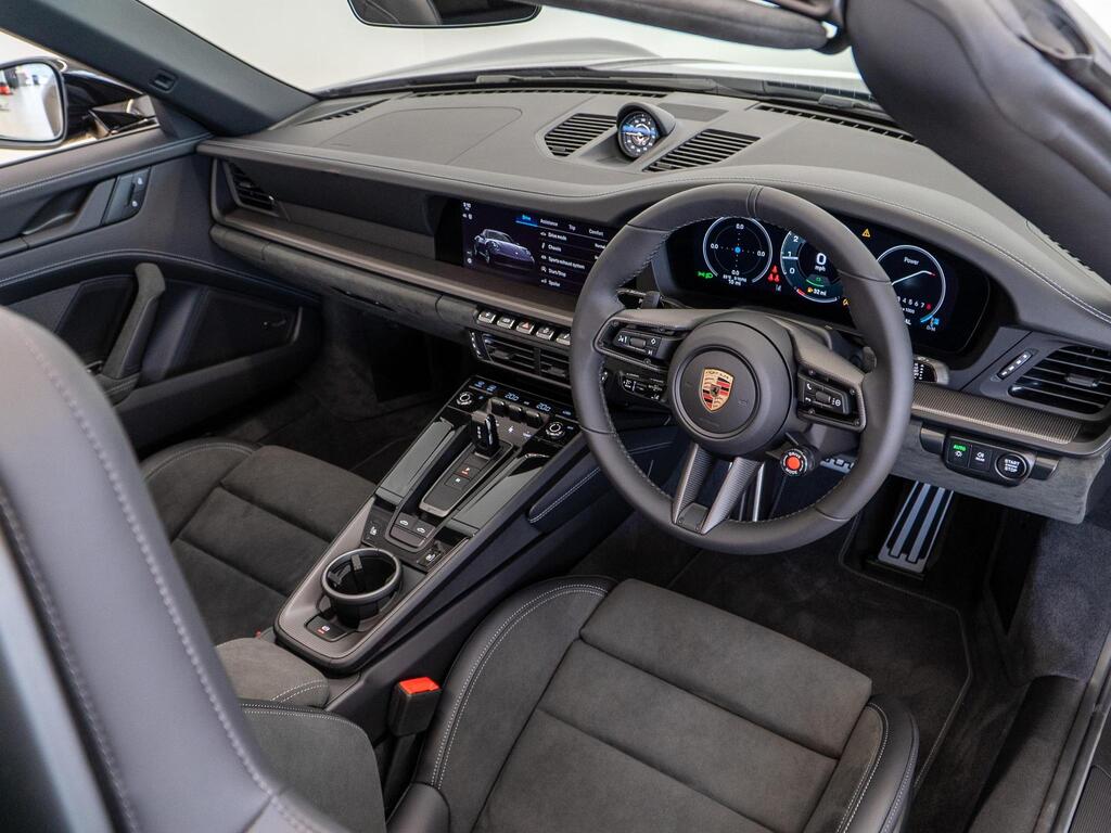 Porsche 911 3.6 T-Hybrid 992 4 GTS Targa PDK на 20-дюймовых легкосплавных дисках, адаптивные спортивные сиденья Plus, электрорегулировка в 18 направлениях с пакетом памяти, система помощи при смене полосы движения, солнцезащитные стекла, система кругового обзора с функцией активной парковки, усилитель рулевого управления Plus.