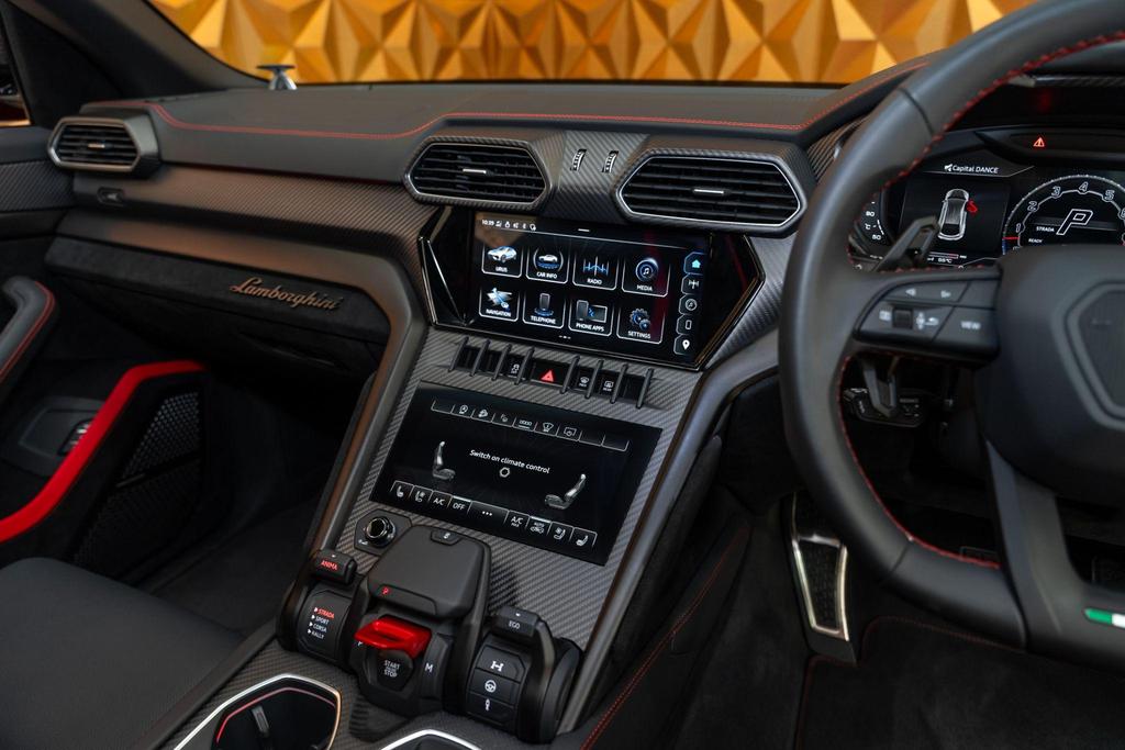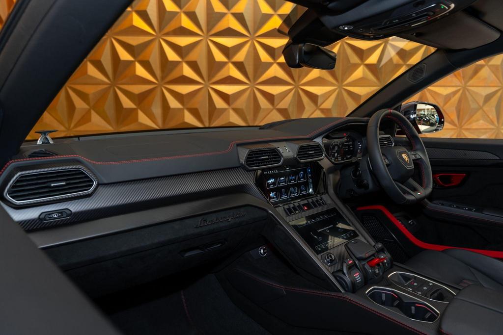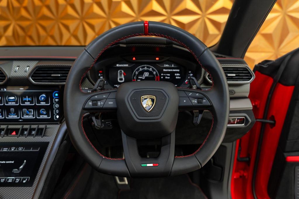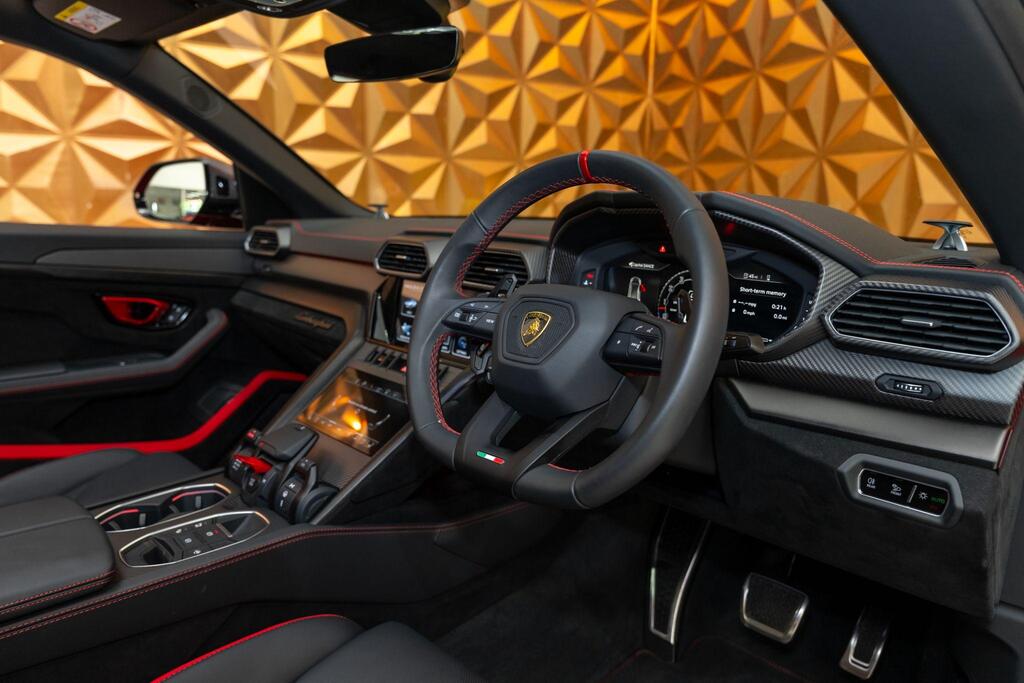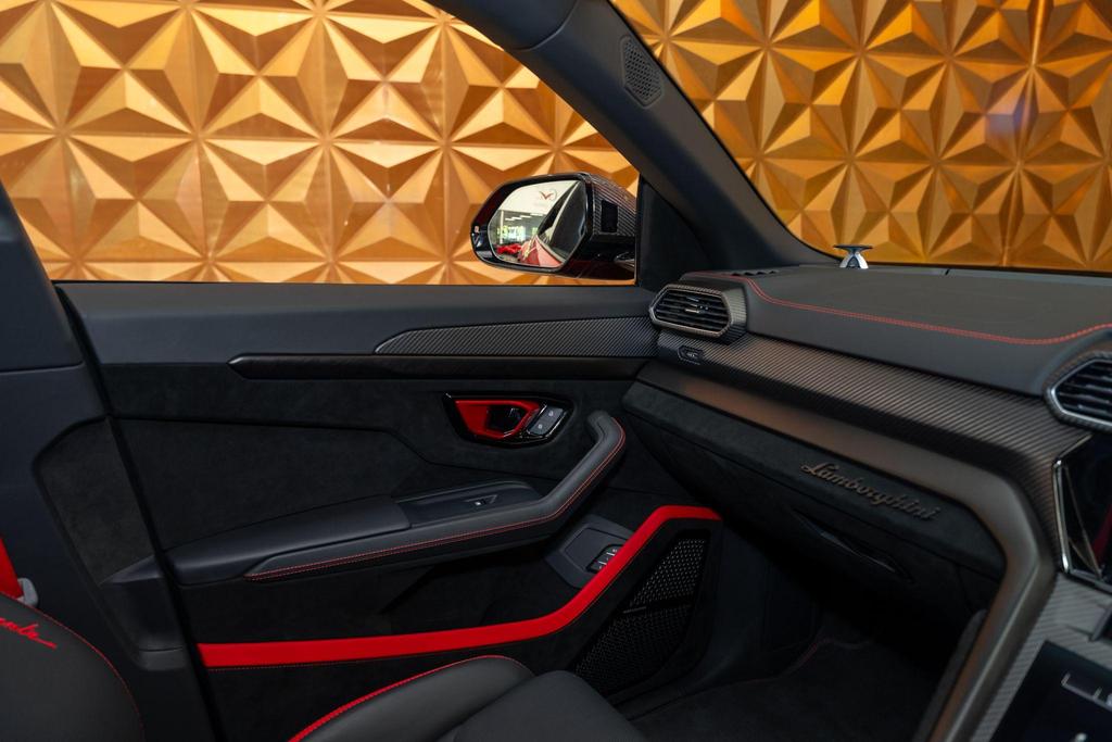 Lamborghini Urus 4.0 V8 BiTurbo Performante Auto Panoramic Roof на 23-дюймовых легкосплавных дисках Ad Personam Pelope с титановыми болтами — глянцево-черные, аудиосистема Bang and Olufsen Advanced 3D, подогрев передних и задних сидений, полностью электрические передние сиденья с вентиляцией и массажем, интерфейс для смартфона Lamborghini — Apple Carplay и Android Auto, система ночного видения, пакет рассеянного света, ABS — антиблокировочная тормозная система.