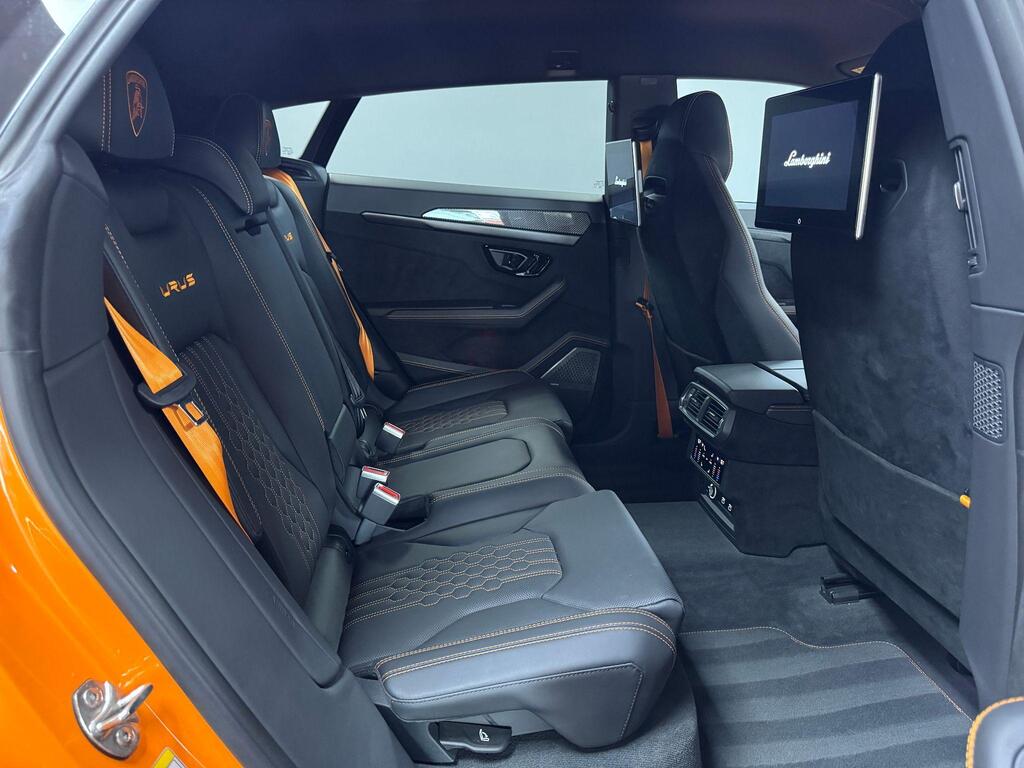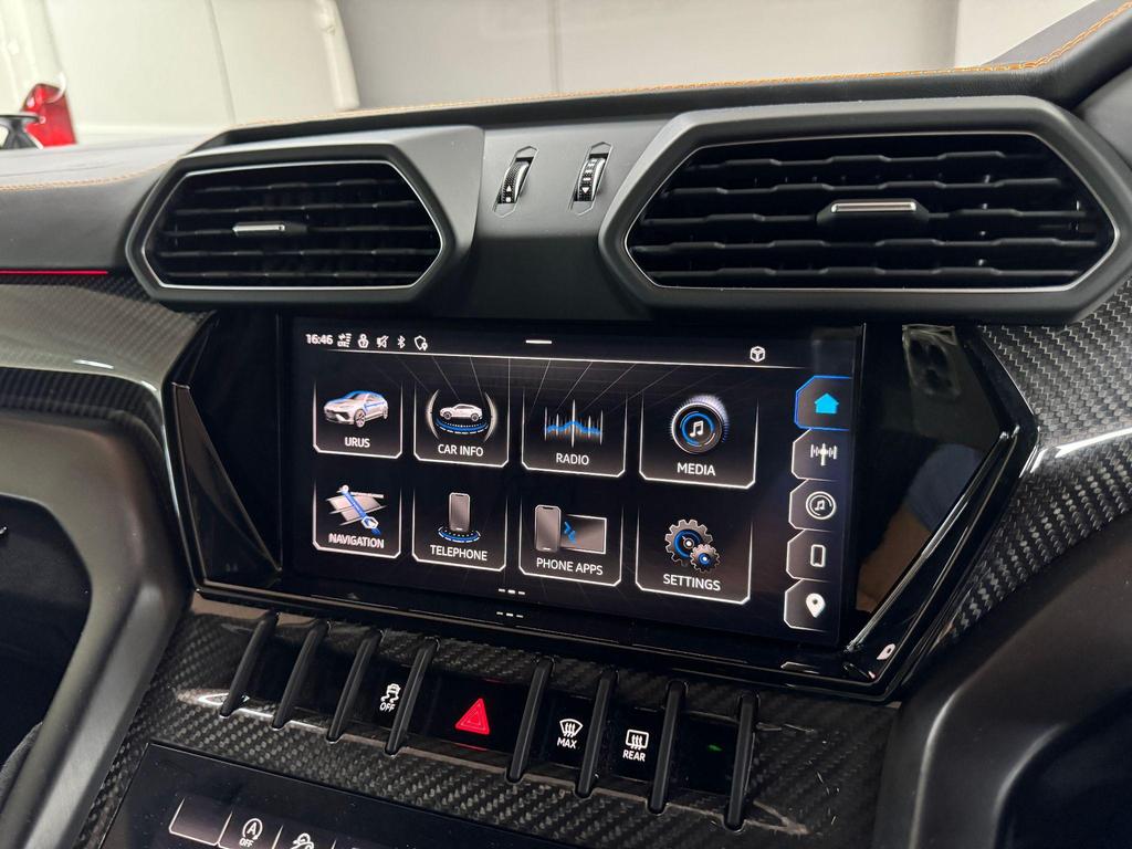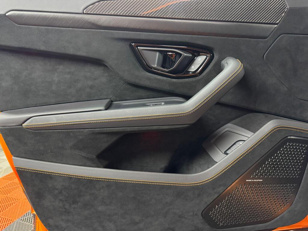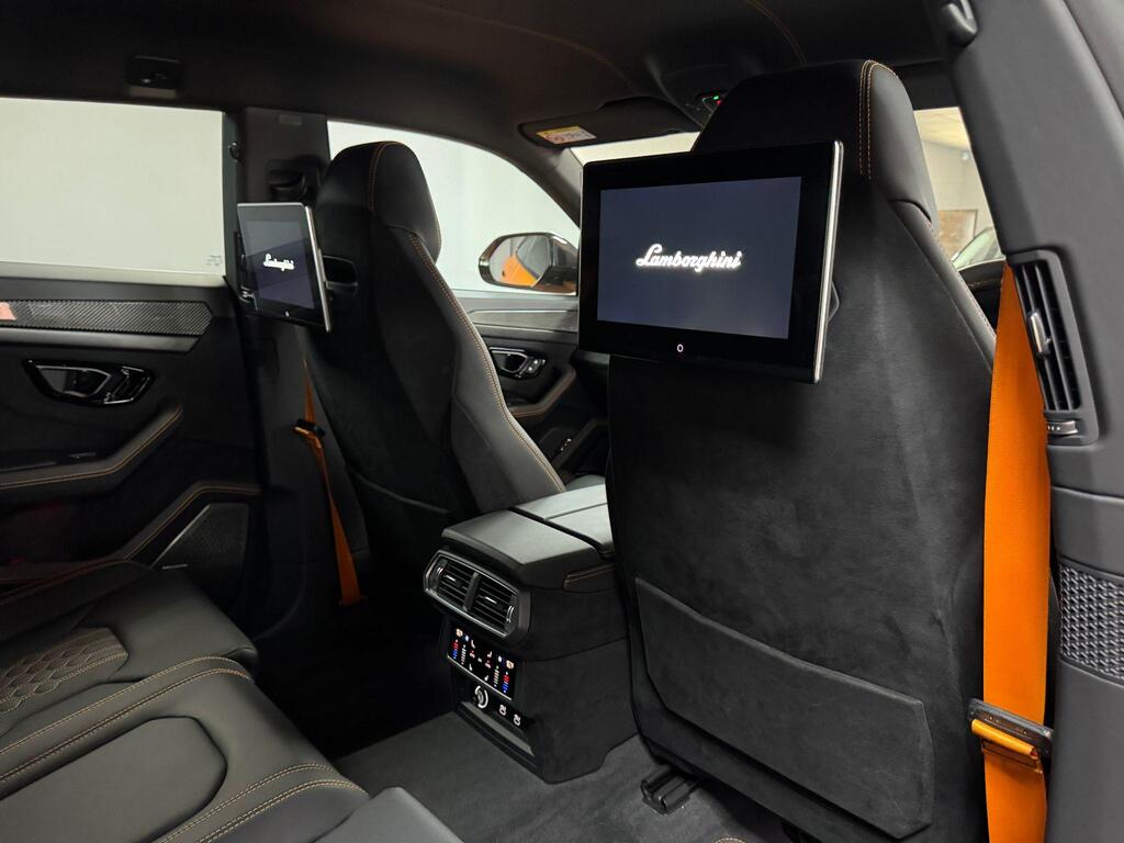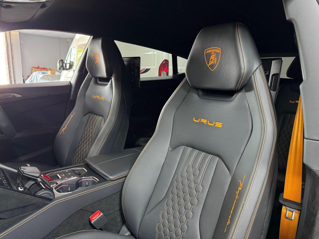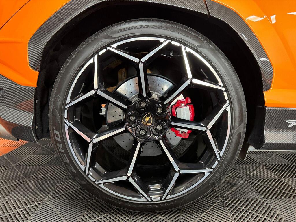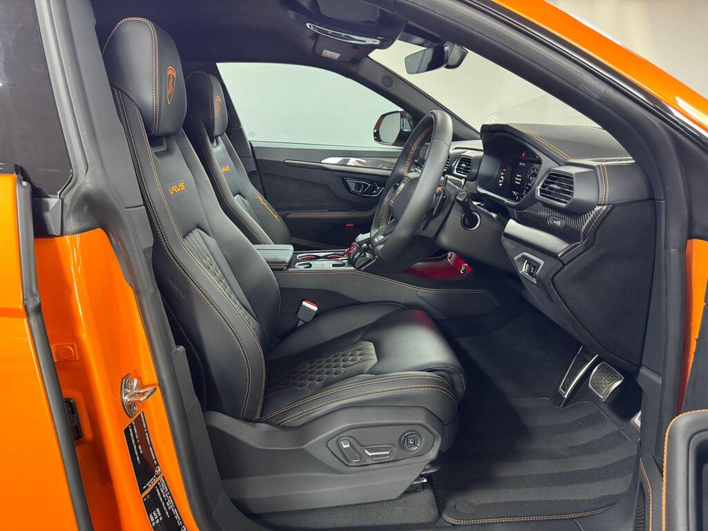 Lamborghini Urus 4.0 V8 BiTurbo Performante Auto на 23-дюймовых легкосплавных дисках Pelope с титановыми болтами, глянцево-черные с алмазной отделкой, звуко- и теплоизоляционные стекла, усовершенствованная 3D-аудиосистема Bang and Olufsen, подогрев передних и задних сидений, полностью электрические передние сиденья с вентиляцией и массажем, интерфейс для смартфонов Lamborghini — Apple Carplay и Android Auto, развлекательная система для задних сидений, пакет фоновой подсветки, ABS — антиблокировочная тормозная система, полный пакет ADAS.