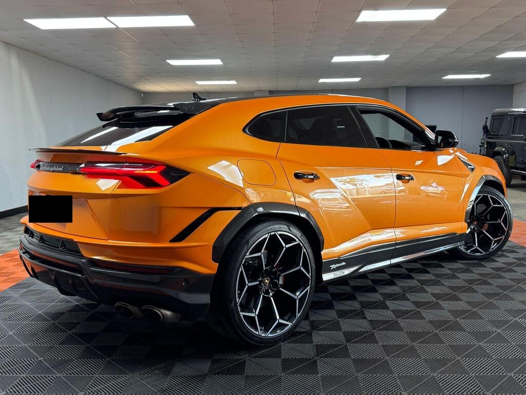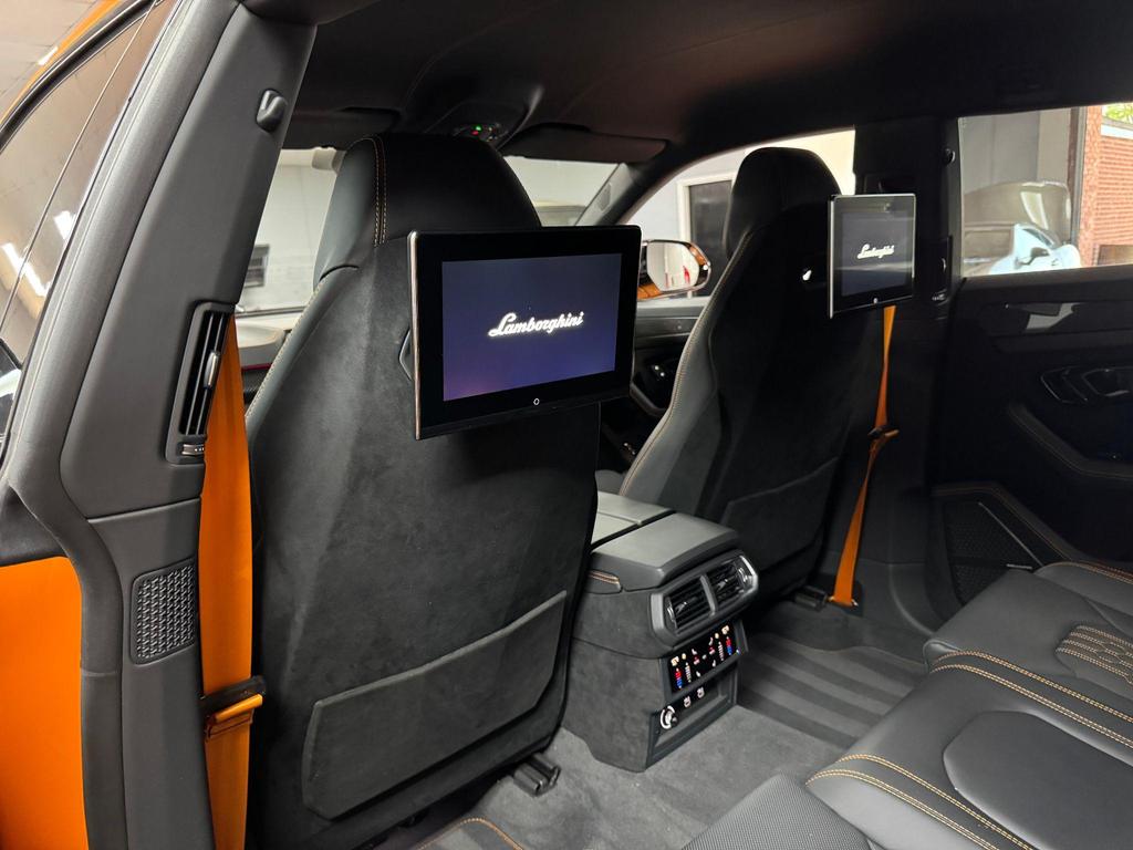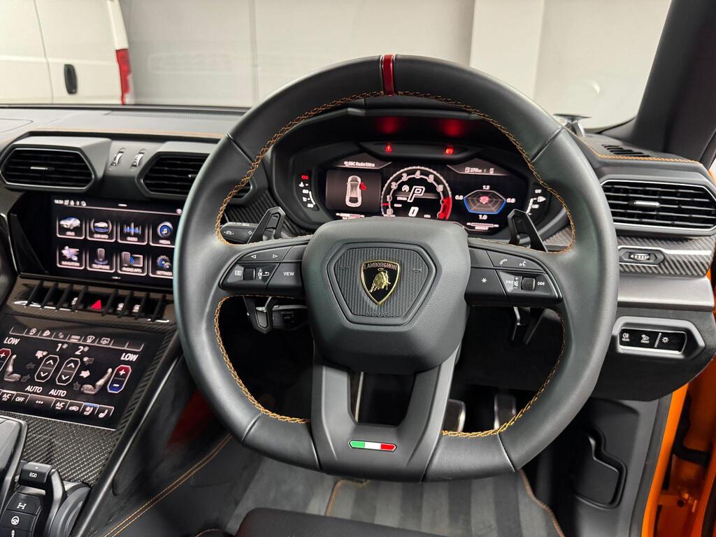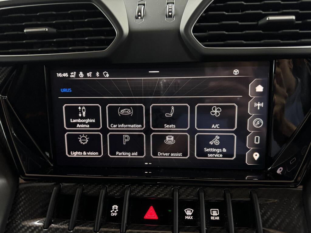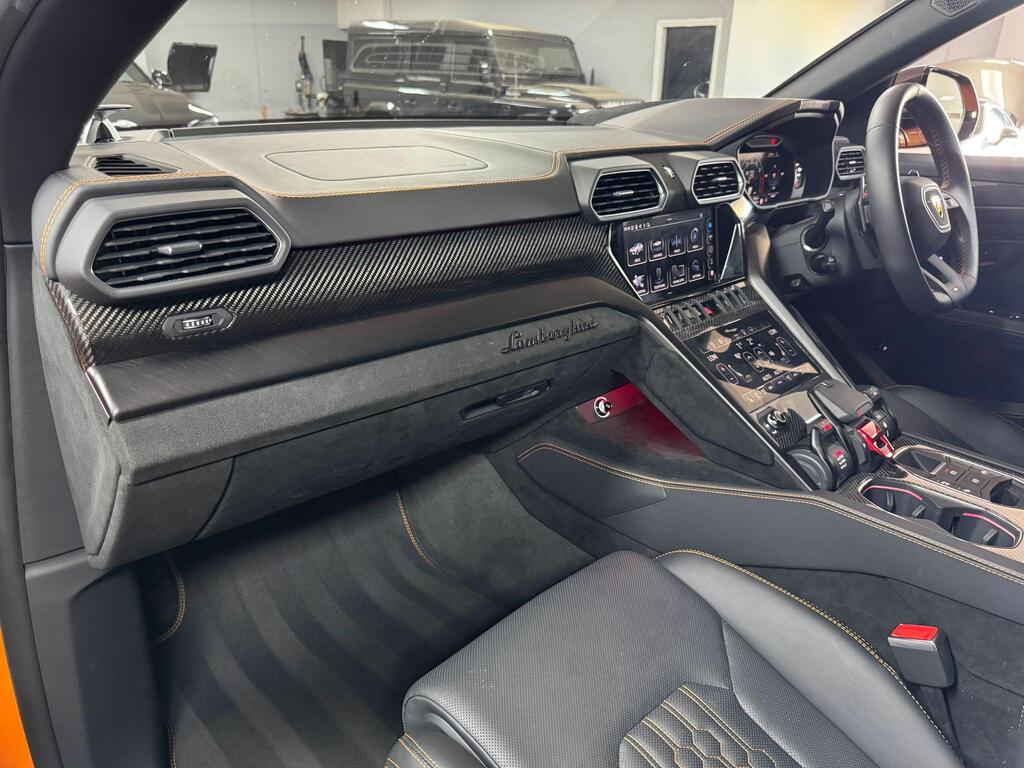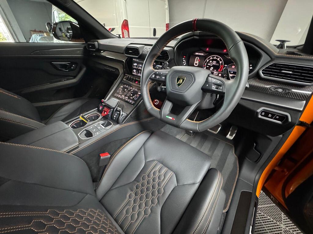 Lamborghini Urus 4.0 V8 BiTurbo Performante Auto на 23-дюймовых легкосплавных дисках Pelope с титановыми болтами, глянцево-черные с алмазной отделкой, звуко- и теплоизоляционные стекла, усовершенствованная 3D-аудиосистема Bang and Olufsen, подогрев передних и задних сидений, полностью электрические передние сиденья с вентиляцией и массажем, интерфейс для смартфонов Lamborghini — Apple Carplay и Android Auto, развлекательная система для задних сидений, пакет фоновой подсветки, ABS — антиблокировочная тормозная система, полный пакет ADAS.