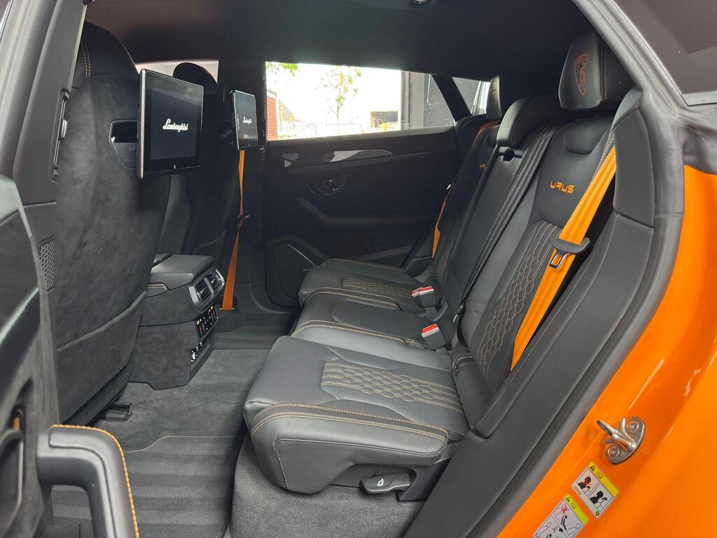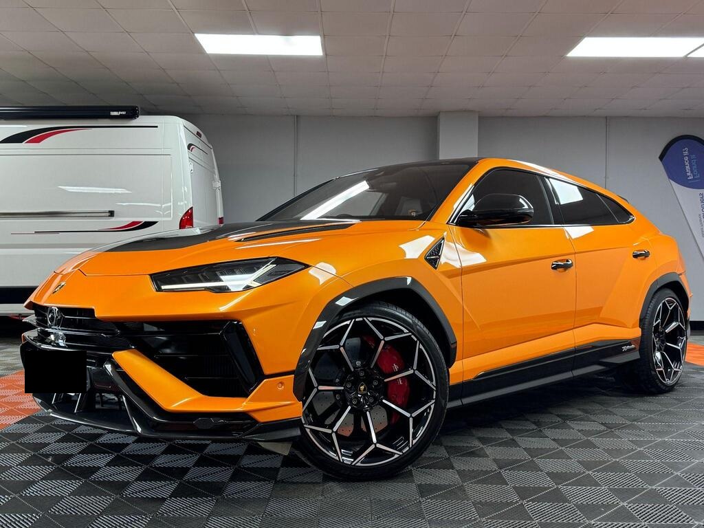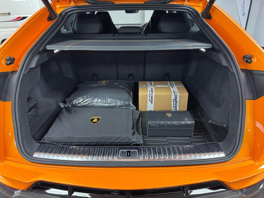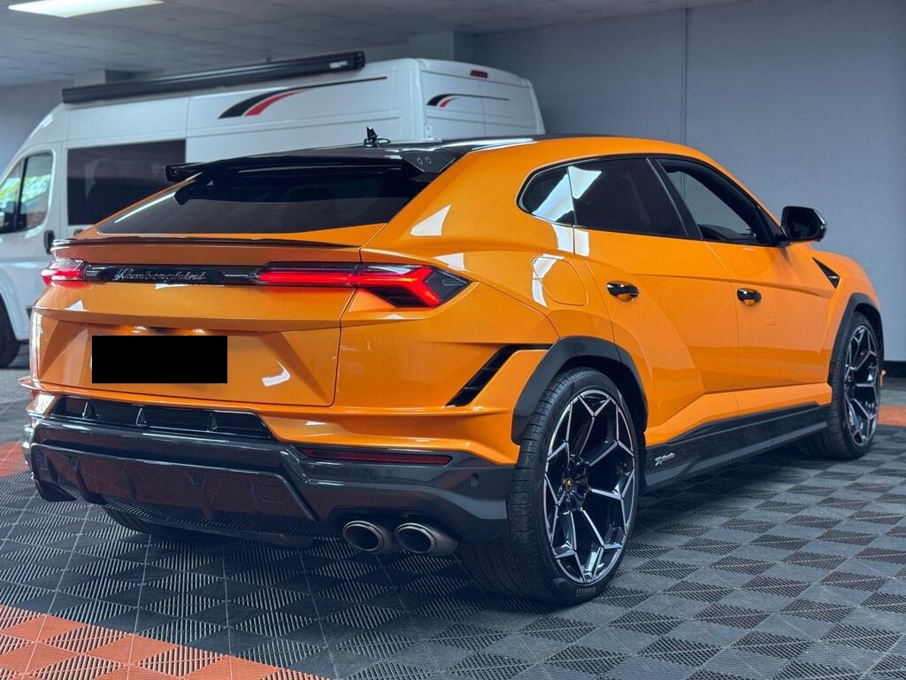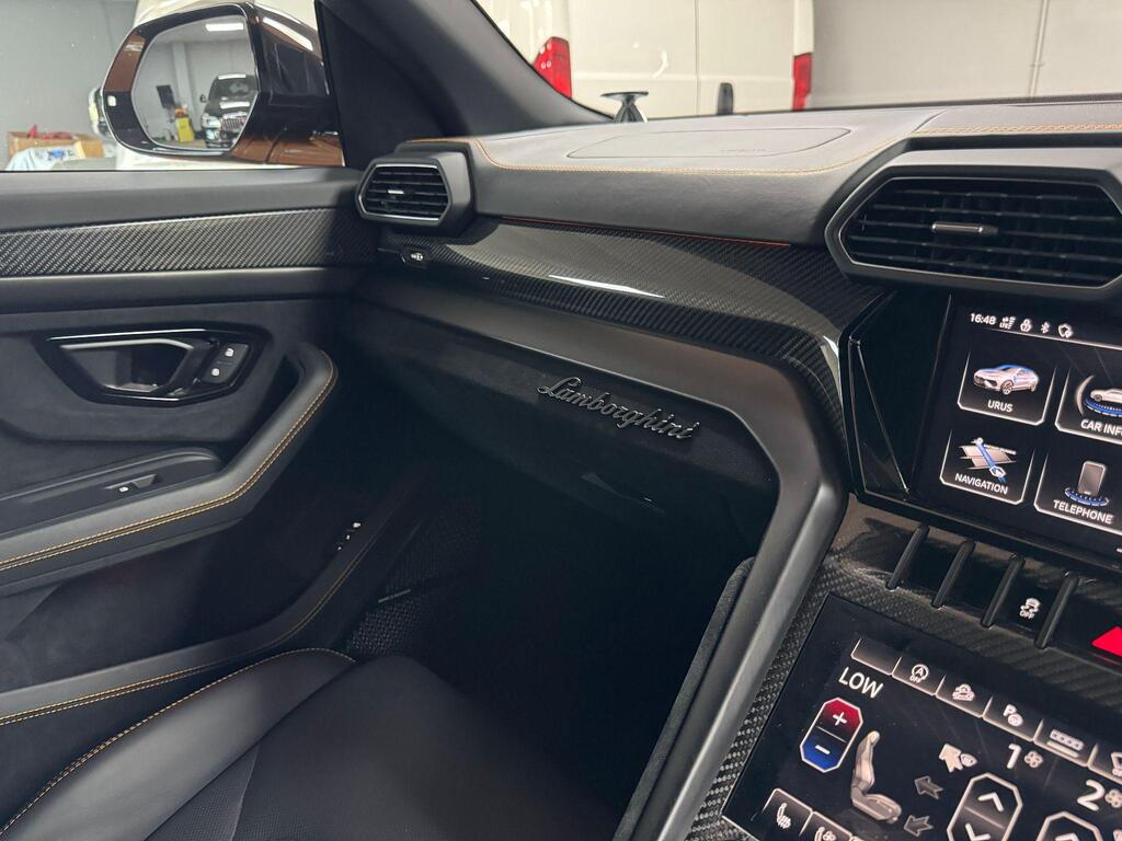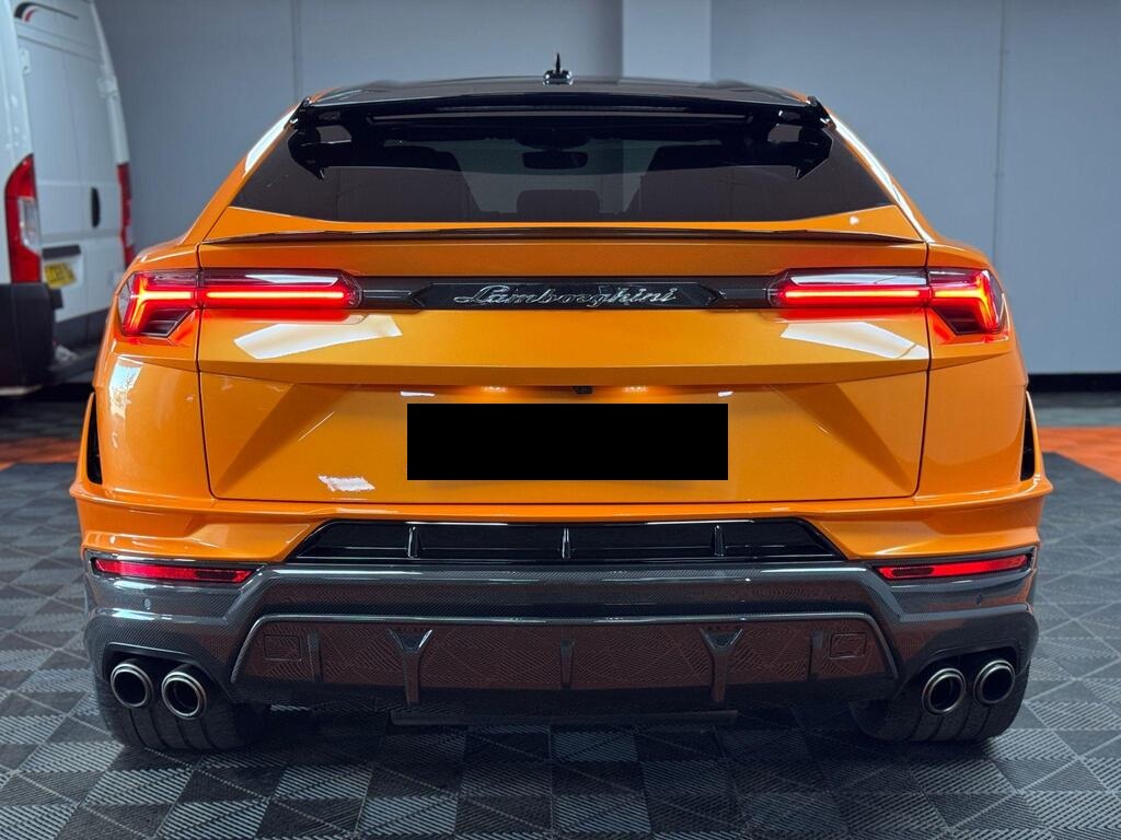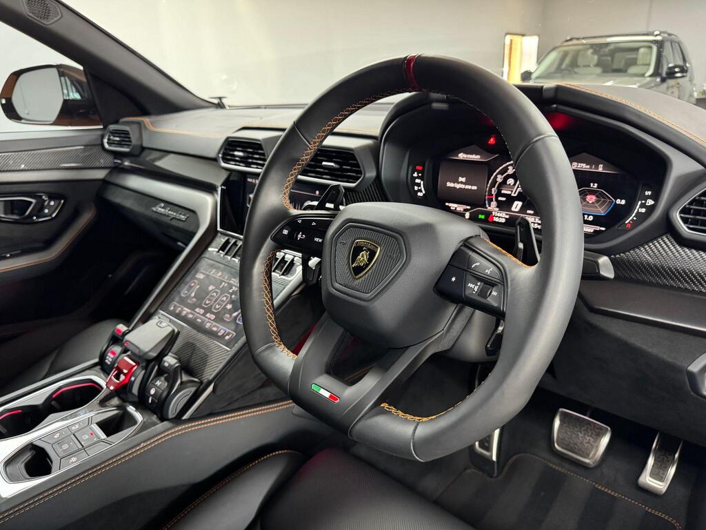 Lamborghini Urus 4.0 V8 BiTurbo Performante Auto на 23-дюймовых легкосплавных дисках Pelope с титановыми болтами, глянцево-черные с алмазной отделкой, звуко- и теплоизоляционные стекла, усовершенствованная 3D-аудиосистема Bang and Olufsen, подогрев передних и задних сидений, полностью электрические передние сиденья с вентиляцией и массажем, интерфейс для смартфонов Lamborghini — Apple Carplay и Android Auto, развлекательная система для задних сидений, пакет фоновой подсветки, ABS — антиблокировочная тормозная система, полный пакет ADAS.