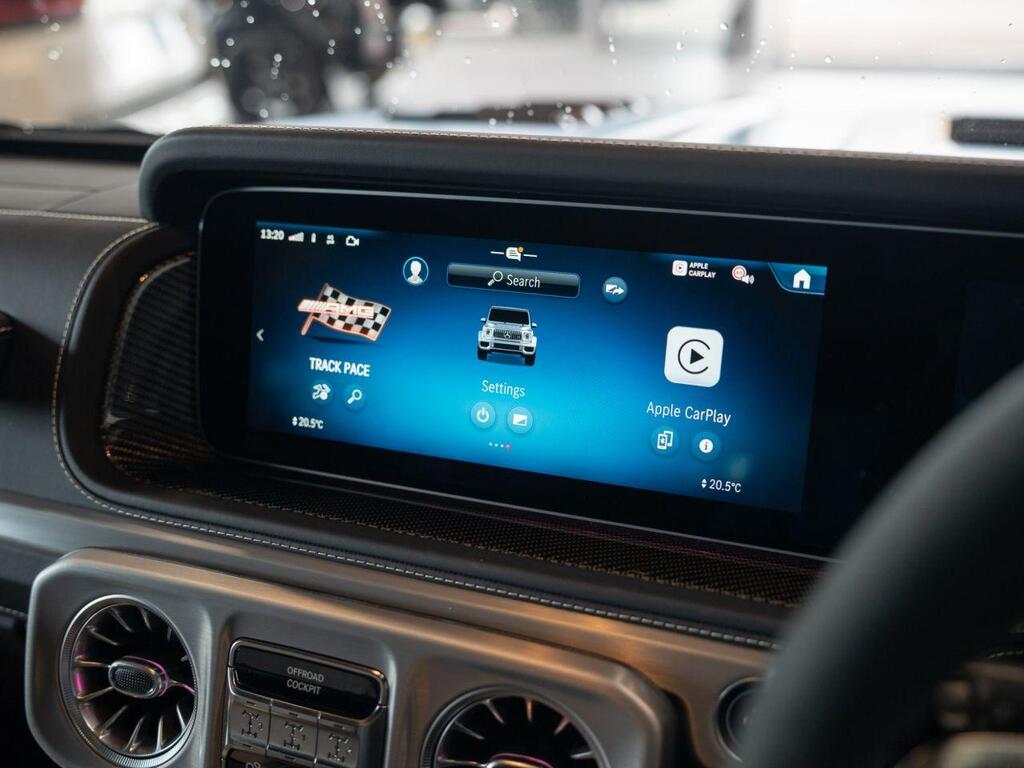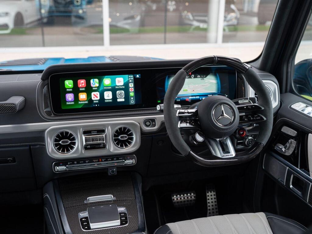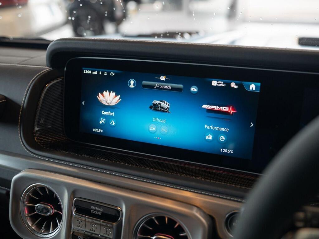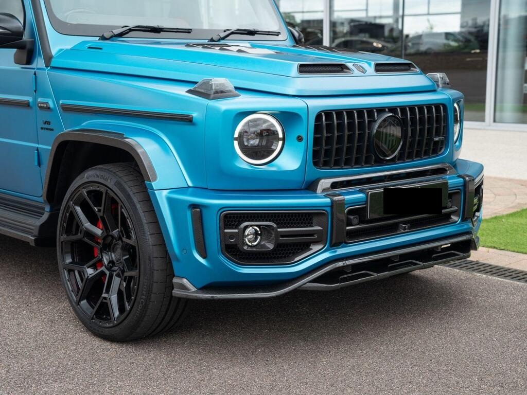 Mercedes-Benz G63 AMG Urban Widetrack V8 BiTurbo MHEV Magno Edition SpdS+9GT 4WD Panoramic Sunroof на 22-дюймовых легкосплавных дисках AMG с коваными крестообразными спицами, матово-черного цвета с полированным ободом, карбоновый капот Bullnose (в цвет кузова), закрытые верхние вентиляционные отверстия Bullnose из визуального карбона, двухсекционный капот Bullnose, вентиляционные отверстия из визуального карбона, шильдик Urban Icon на капоте, центральный шильдик Urban Icon на решетке радиатора, мощные светодиодные панели на крыше из визуального карбона, верхний задний спойлер из визуального карбона, задняя подкрылок UA Icon из визуального карбона, накладки на передние боковые воздухозаборники из визуального карбона. Передний бампер Widetrack из карбона с передними и верхними воздухозаборниками, пятисекционный передний сплиттер из визуального карбона, задний бампер Widetrack из карбона с диффузором из визуального карбона, арки Widetrack частично окрашены в цвет кузова и визуального карбона. Fibre, боковые пороги Widetrack из визуального карбона, выхлопные трубы из анодированного алюминия с боковыми выходами, окантовка указателей поворота из визуального карбона Twill 2x2 или 4x4, расширенный пакет AMG Night Magno, развлекательная система для задних пассажиров, 100-процентная блокировка дифференциалов, система AMG ACTIVE RIDE CONTROL с активной гидравлической системой стабилизации крена, тормозные суппорты AMG красного цвета, пакет AMG Night, выхлопная система AMG Performance с возможностью выбора и двумя хромированными сдвоенными патрубками (слева и справа), рулевое колесо AMG Performance из карбона (микрофибра DINAMICA), подсветка салона с проекцией логотипа бренда, аудиосистема Burmester 3D Surround Sound, пакет систем помощи водителю, адаптивный дальний свет Plus, адаптивный круиз-контроль с регулируемым ограничителем скорости, сдвижной люк с электроприводом и одним нажатием. Функция запуска KEYLESS-GO, пакет MANUFAKTUR, парковочный пакет с камерой на 360 градусов, интеграция со смартфоном, включающая Apple CarPlay и Android Auto, отделка салона - AMG Carbon Fibre, пакет технологий.