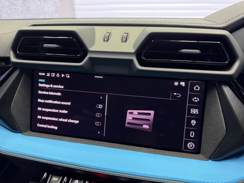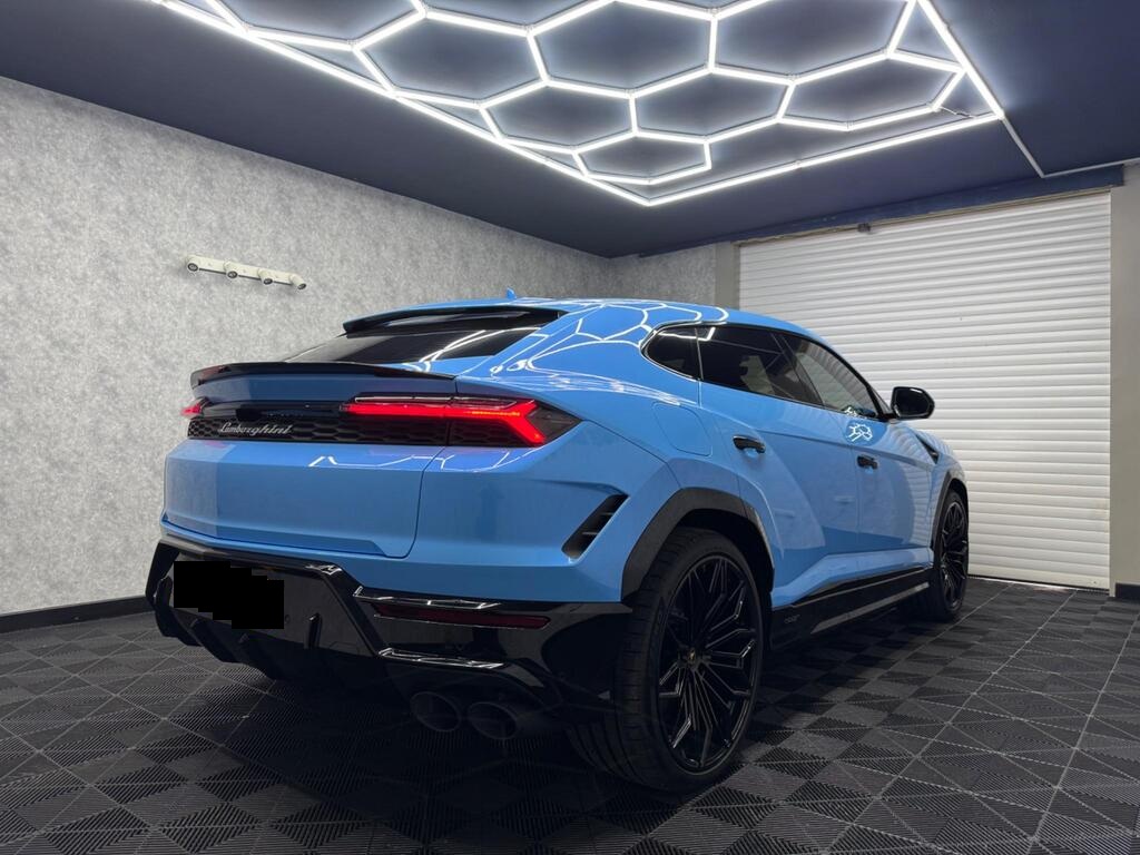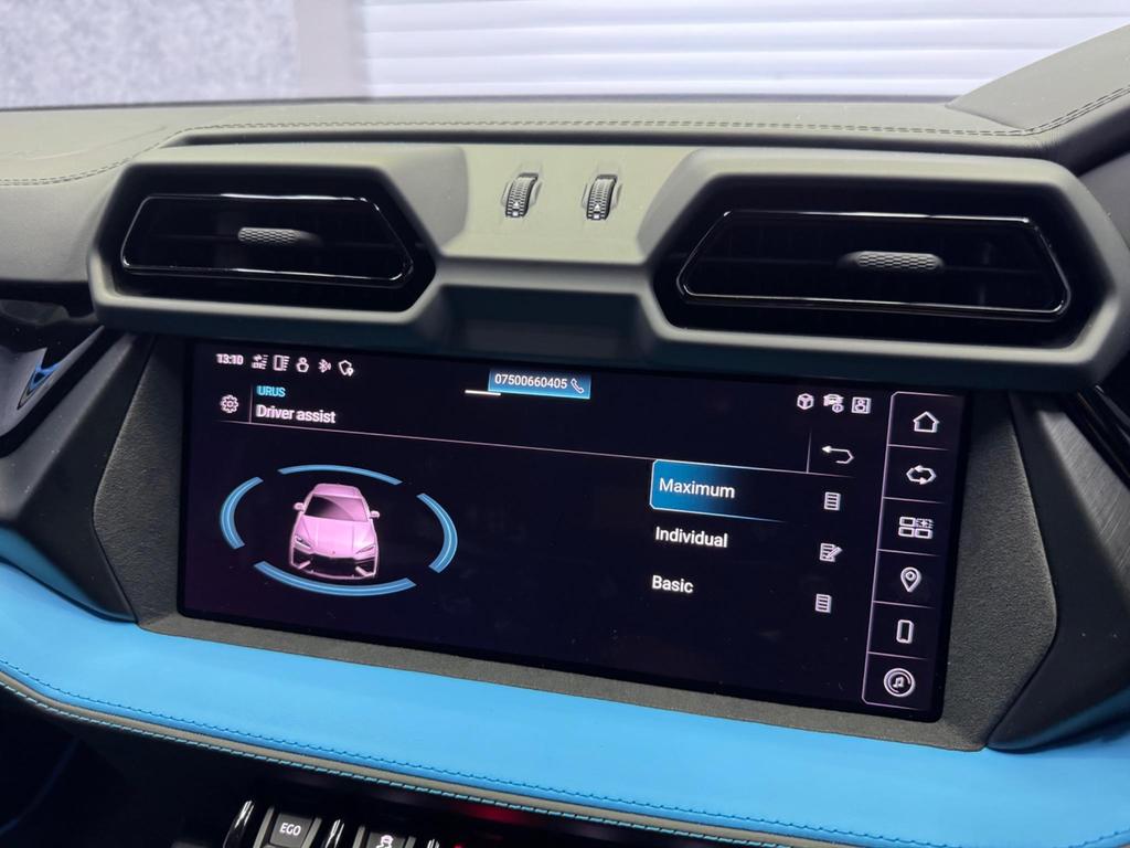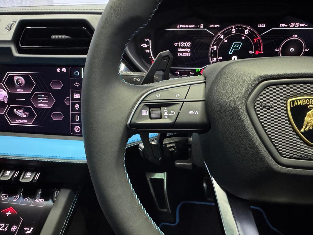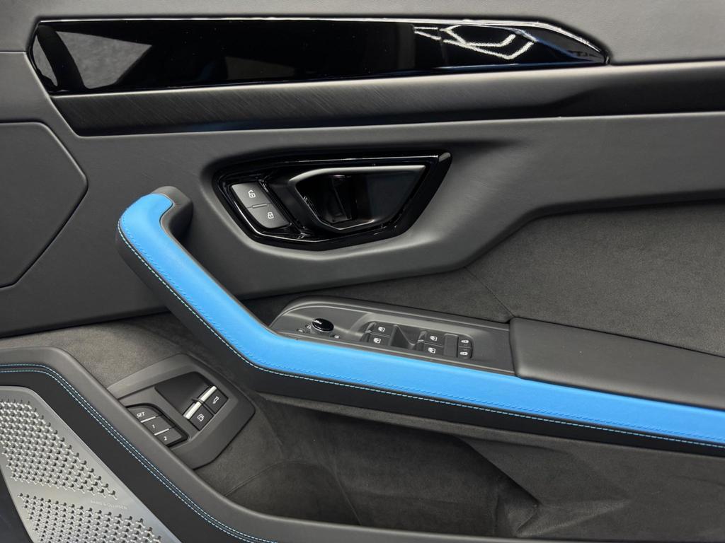 Lamborghini Urus SE 4.0 V8 BiTurbo 25.9kWh 4WD Panoramic Sunroof на 23-дюймовых легкосплавных дисках - Taigete Shiny Black Rims, аудиосистема Bang and Olufsen Advanced 3D, пакет помощи при парковке с функцией дистанционного управления, подогрев задних сидений, спортивный руль с подогревом, полностью кожаная обивка с темной хромированной окантовкой и красными маркерами, система слежения за транспортным средством - VTS, двухцветная кожа - Nero Ade с контрастной строчкой.