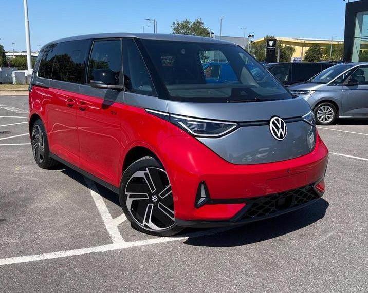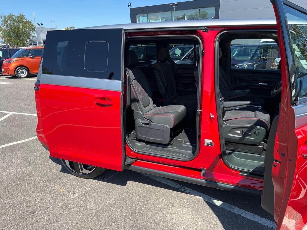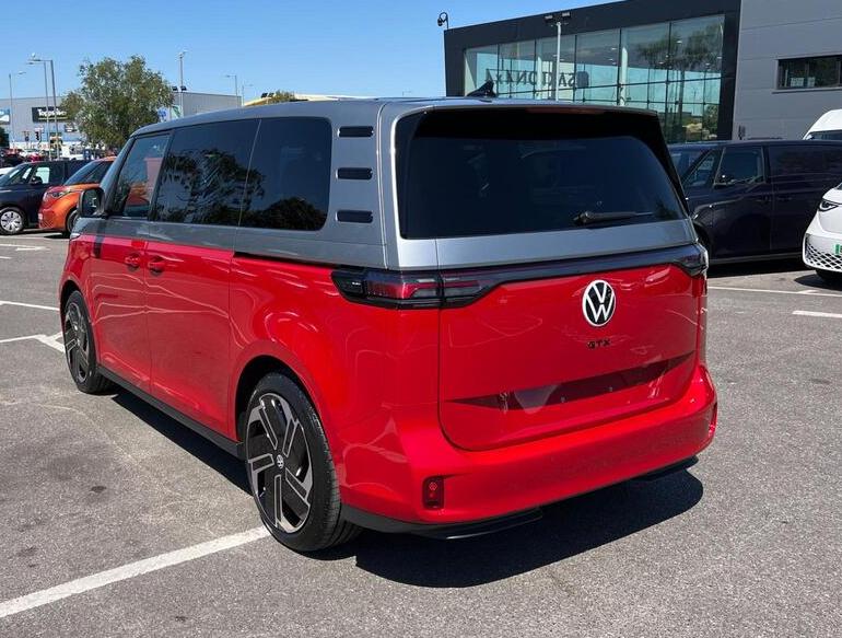 Volkswagen ID. Buzz Pro 79kWh GTX Panoramic Roof на 21-дюймовых легкосплавных дисках, камера обзора зоны, приложение Connect с беспроводным подключением для Apple CarPlay и Android Auto, розетка 230 В на раме подушки сиденья переднего пассажира, адаптивный круиз-контроль ACC Stop and Go с ограничителем скорости, автоматическое затемнение внутреннего зеркала заднего вида, пакет Design Package Plus, боковые зеркала заднего вида — глянцево-черные — с электроприводом регулировок — с подогревом — с электроприводом складывания — с функцией опускания сиденья переднего пассажира, подогрев переднего сиденья, голосовое управление, набор инструментов.