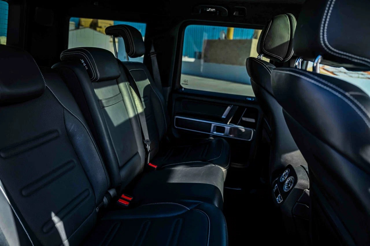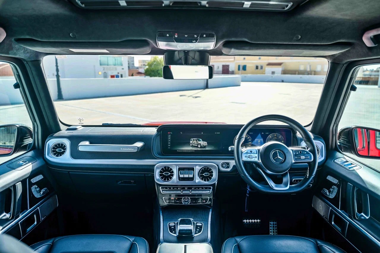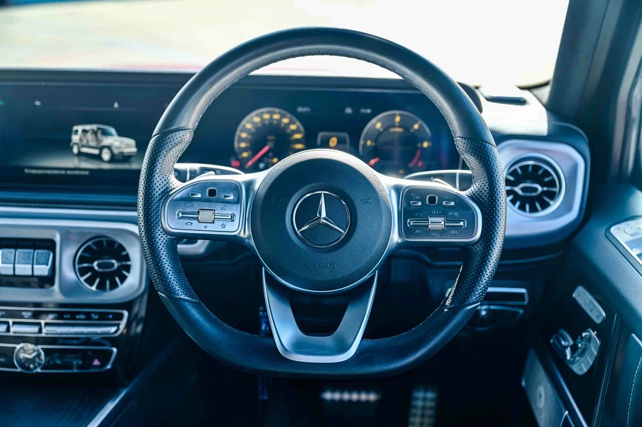 Mercedes-Benz G Class 2.9 G400d AMG Line Premium Plus Night Edition Panoramic Sunroof на 20-дюймовых дисках — AMG Multi-Spoke Light — окрашены в глянцевый черный цвет с полированной отделкой, круиз-контроль с регулируемым ограничителем скорости, аудиосистема Burmester Surround Sound, парковочный пакет с камерой обзора на 360 градусов, функция запуска KEYLESS-GO.