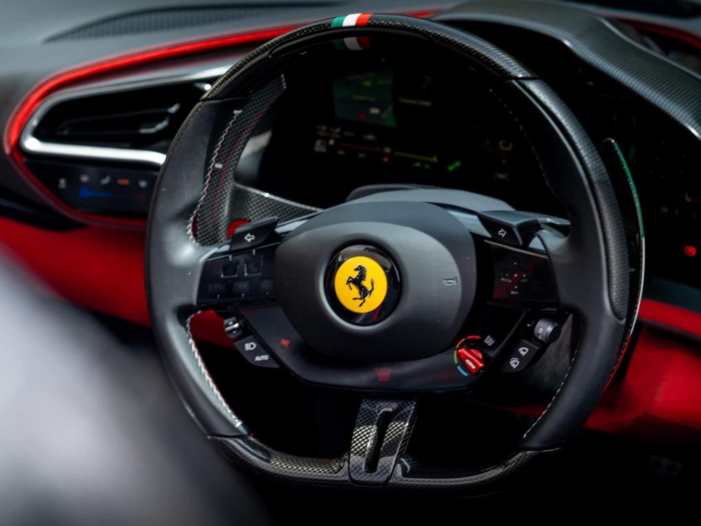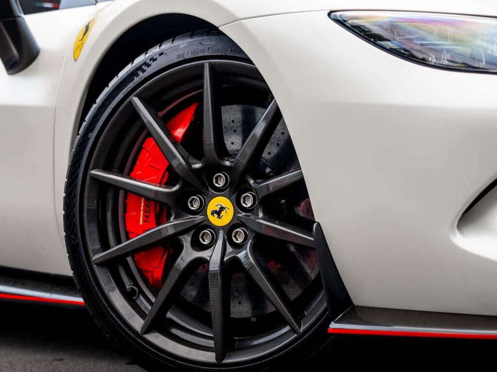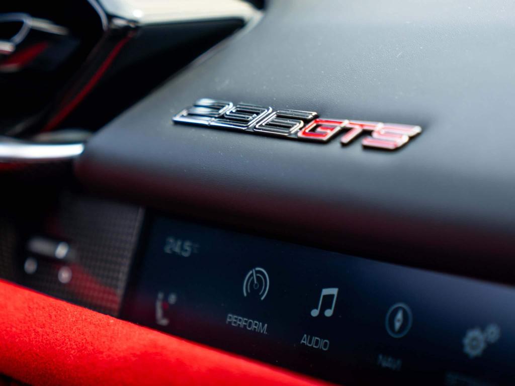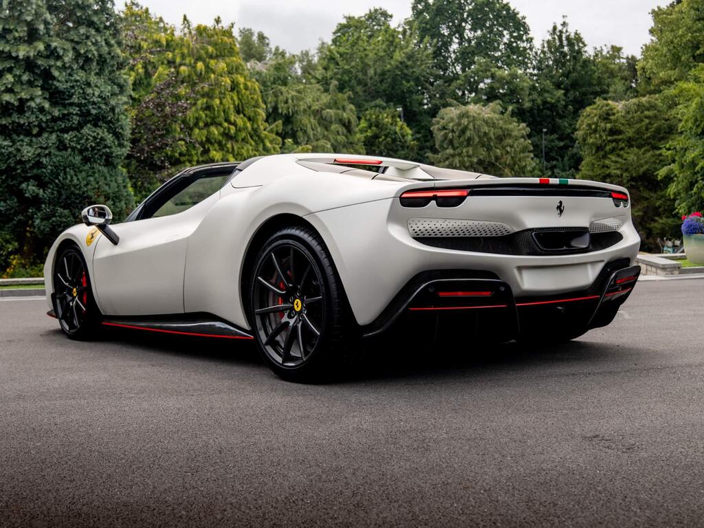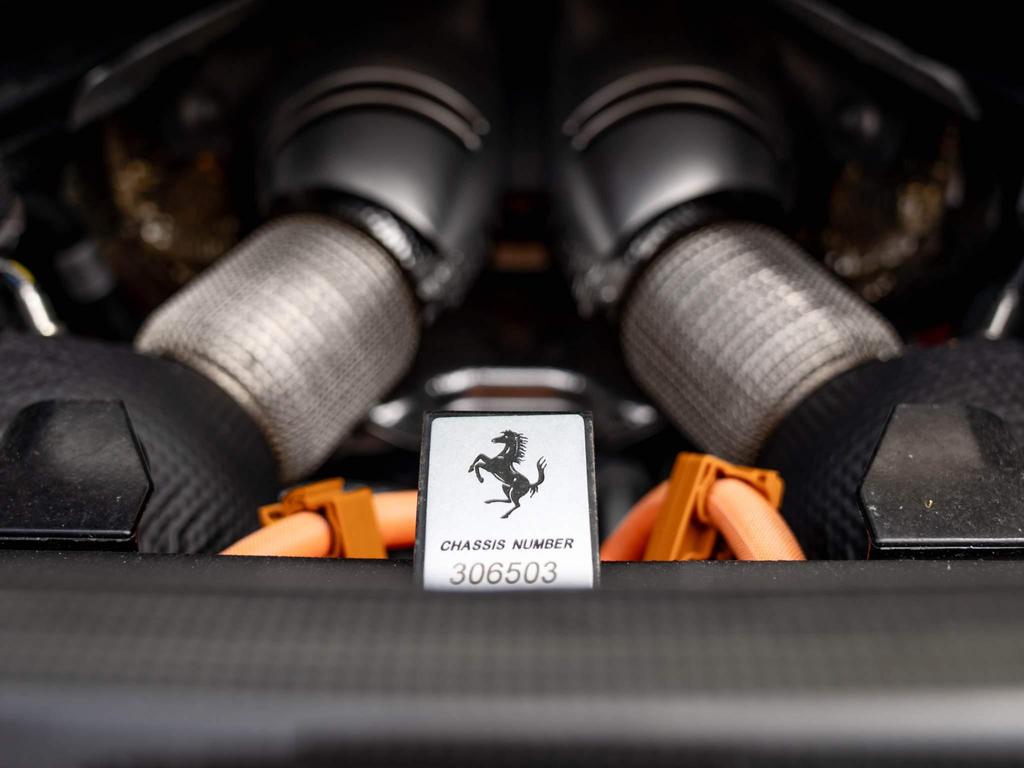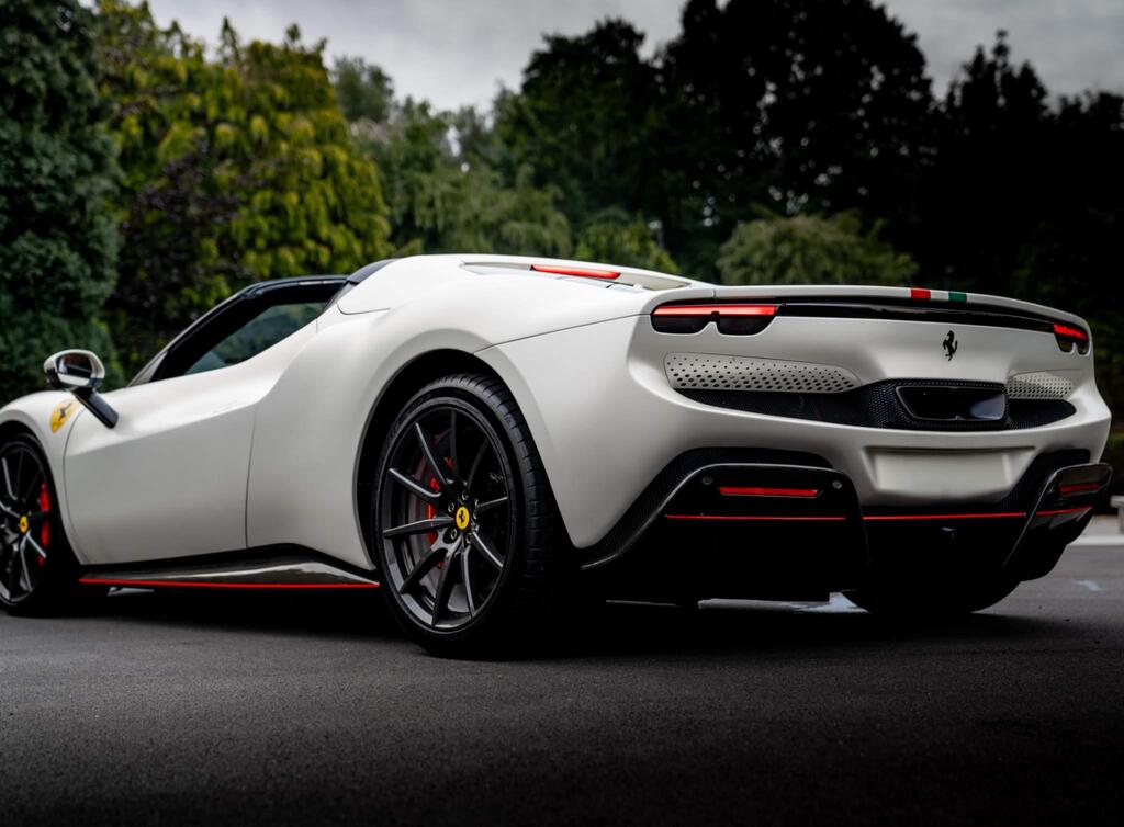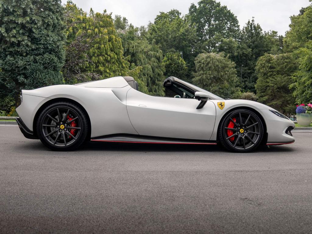Ferrari 296 GTS 3.0T V6 7.45kWh Spider F1 DCT на 20-дюймовых легкосплавных дисках, передние и задние датчики парковки, задняя парковочная камера, TPTMS — система контроля давления и температуры в шинах, мультимедийная система — потоковая передача аудио по Bluetooth и цифровое радио — DAB, беспроводное зарядное устройство для смартфона, Apple CarPlay, защитный чехол для автомобиля, электрохромное зеркало заднего вида.