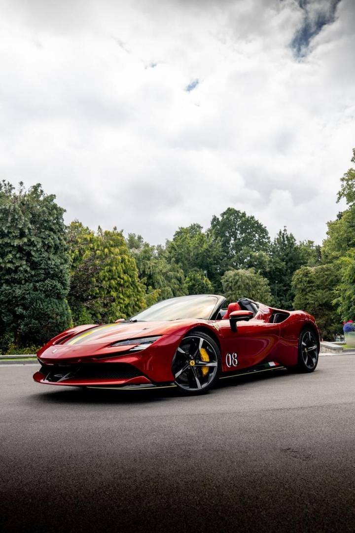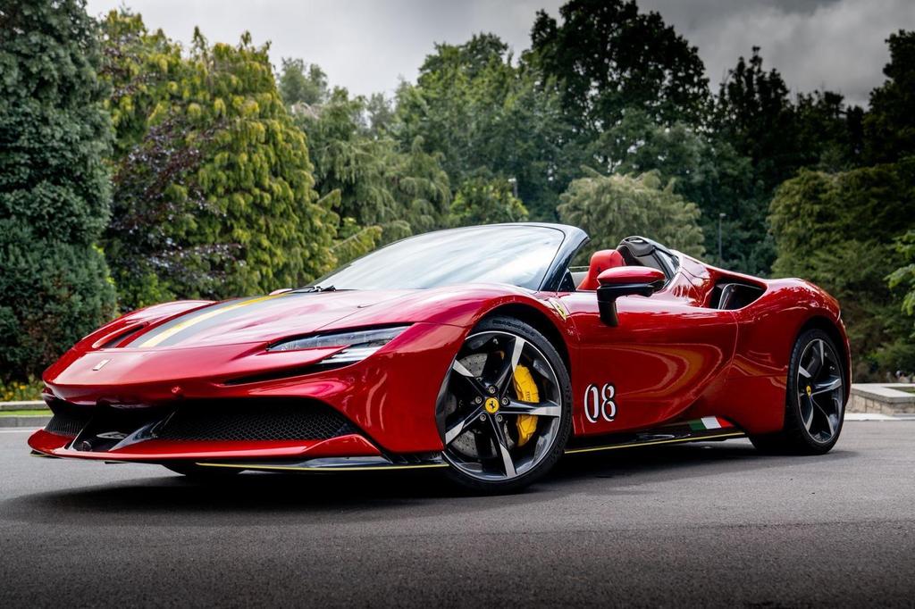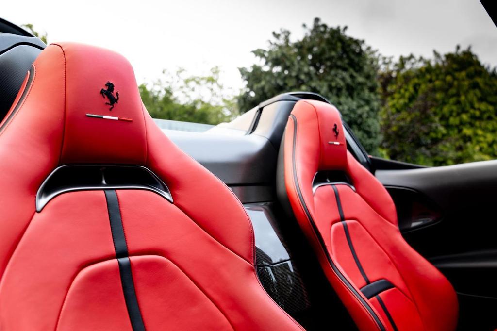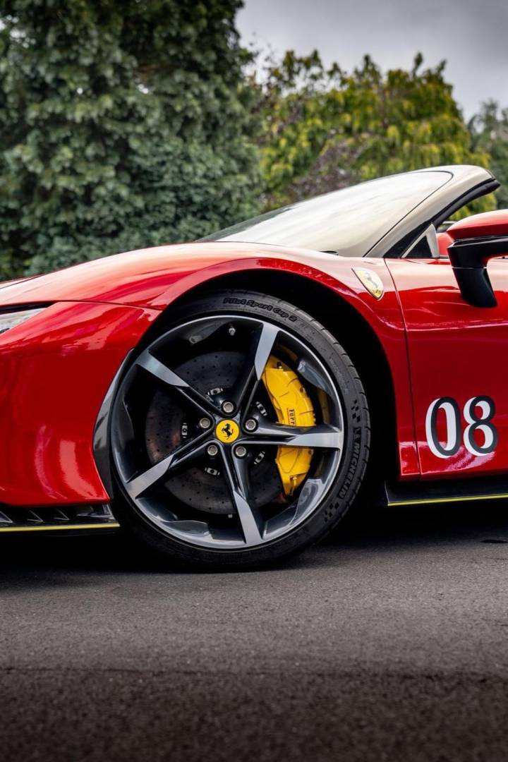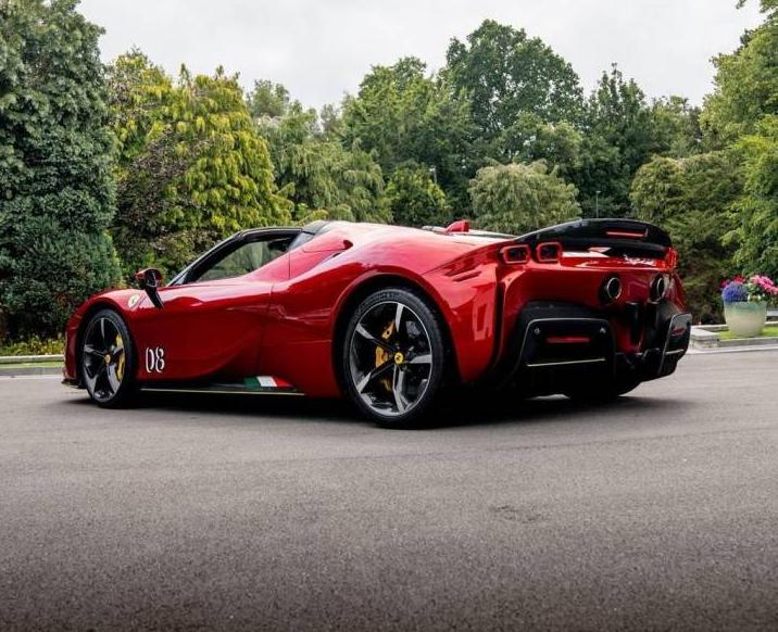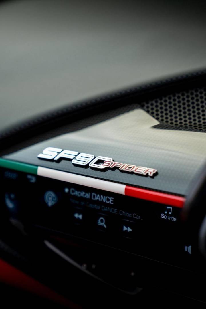 Ferrari SF90 Spider 0T V8 7.9kWh F1 DCT на 20-дюймовых легкосплавных дисках, защитный чехол для автомобиля, радио DAB, задние датчики парковки, TPTMS - система контроля давления и температуры в шинах, бесключевой запуск автомобиля, мультимедийная система, система ASR, CCM - карбон-керамическая тормозная система, eSSC - электронная система контроля бокового скольжения.