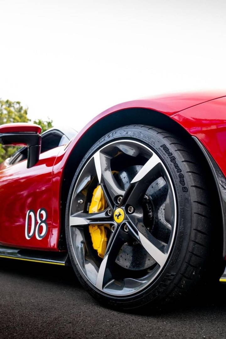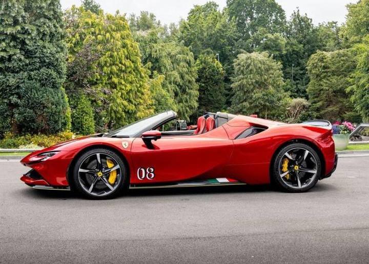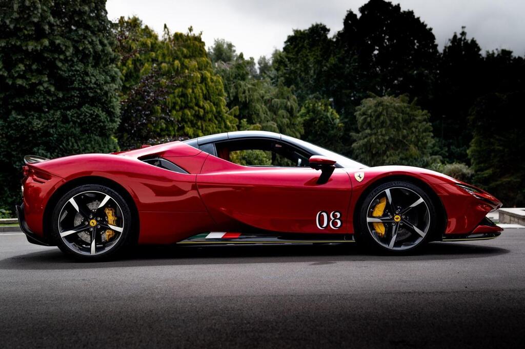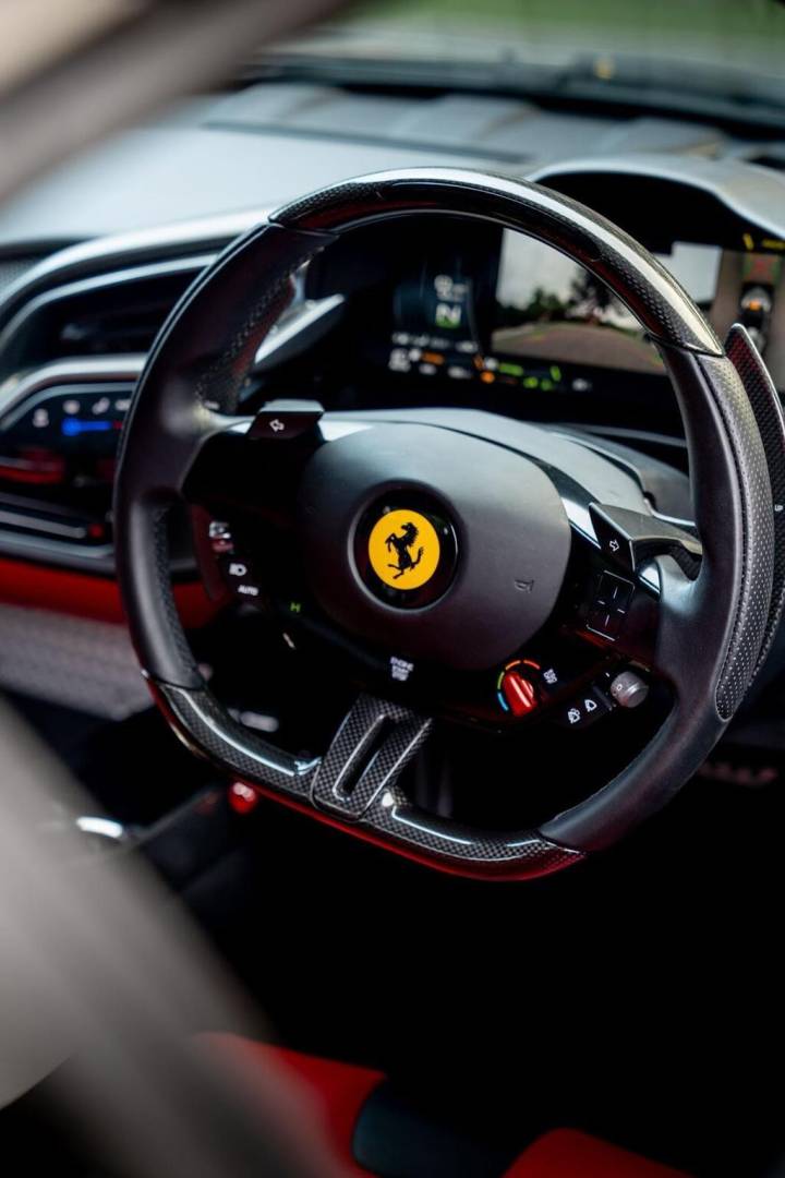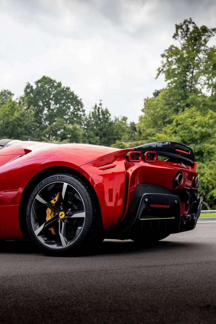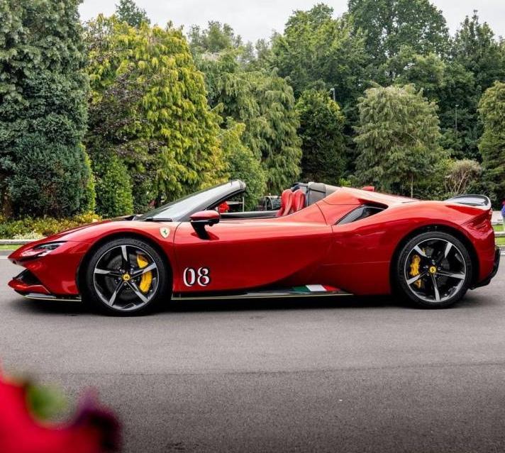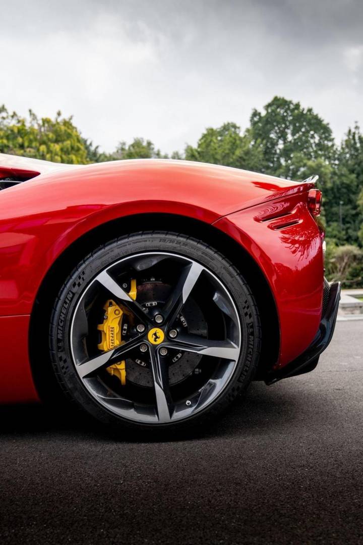 Ferrari SF90 Spider 0T V8 7.9kWh F1 DCT на 20-дюймовых легкосплавных дисках, защитный чехол для автомобиля, радио DAB, задние датчики парковки, TPTMS - система контроля давления и температуры в шинах, бесключевой запуск автомобиля, мультимедийная система, система ASR, CCM - карбон-керамическая тормозная система, eSSC - электронная система контроля бокового скольжения.