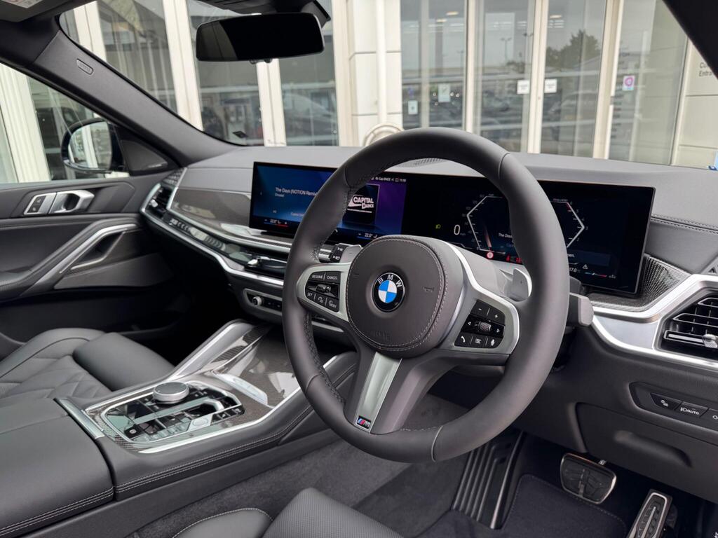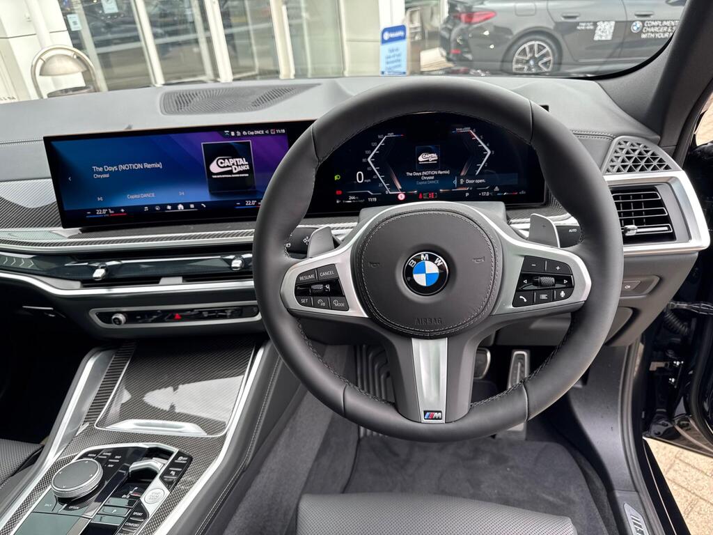 BMW X6 3.0 40d MHT M Sport Auto xDrive Panoramic Roof на 22-дюймовых легкосплавных дисках M Light Double-Spoke Style 742 M Jet Black, пакет M Sport Pro, аудиосистема Harman Kardon Surround Audio, пакет M Sport Pro, солнцезащитные стекла и остекление, пакет Travel, система Travel and Comfort, активная защита, BMW Live Cockpit Plus, круиз-контроль с функцией торможения, подогрев передних сидений, акустическая система HiFi, адаптивная подвеска M, помощник при парковке.
