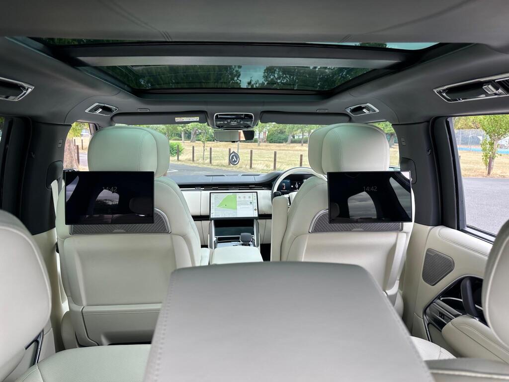 Land Rover Range Rover 3.0 D350 MHEV Autobiography Panoramic Sunroof на 23-дюймовых глянцево-черных легкосплавных дисках, сдвижной панорамный люк, подножки, спутниковая навигация, развлекательная система для задних пассажиров, аудиосистема Meridian Surround Sound, цифровое радио DAB, экран цифрового спидометра, система мониторинга слепых зон, помощь в удержании полосы движения, активный круиз-контроль, камера 360°, камера заднего вида, передние и задние датчики парковки, помощь при парковке, светодиодные фары, бесключевой доступ и запуск, кнопка запуска двигателя, полностью черная кожа, сиденья с функцией Message, электропривод сидений, передние и задние сиденья с функцией памяти, сиденья с поясничной поддержкой, подогрев сидений по всему периметру, охлаждение передних и задних сидений, электрорулевая колонка, подогрев руля, четырехзонный климат-контроль, автоматический кондиционер, передние и задние датчики парковки, USB, Bluetooth, автоматическое включение дальнего света, автоматические фары, автоматические стеклоочистители, тонированные стекла, многофункциональное рулевое колесо, подрулевые переключатели, активное улучшение в поворотах, динамический контроль устойчивости, система помощи при спуске, дистанционный центральный замок, передние и задние электроприводы Окна, электрические складные зеркала заднего вида, салонное зеркало с автоматическим затемнением, поворотные фонари.