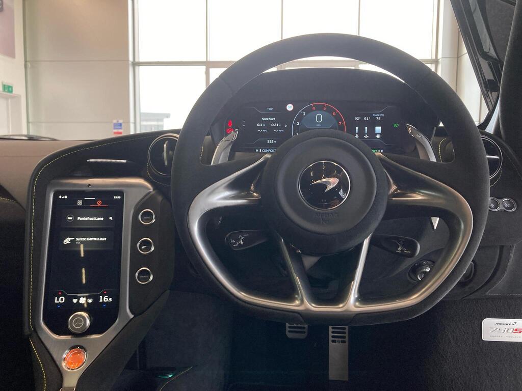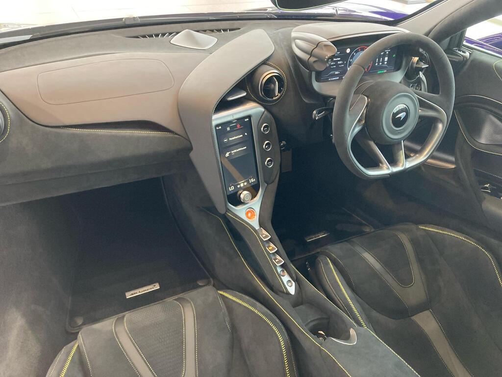 McLaren 750S 4.0T V8 SSG на 19-дюймовых передних и 20-дюймовых задних легкосплавных дисках — легкие кованые турбинные спицевые, система помощи при парковке на 360 градусов, зарядное устройство для аккумулятора — литий-ионное, сиденья — комфортные, система слежения за транспортным средством, Apple CarPlay, аудиосистема McLaren с 4 динамиками, аудиосистема Bowers & Wilkins с 12 динамиками, спортивная выхлопная система.