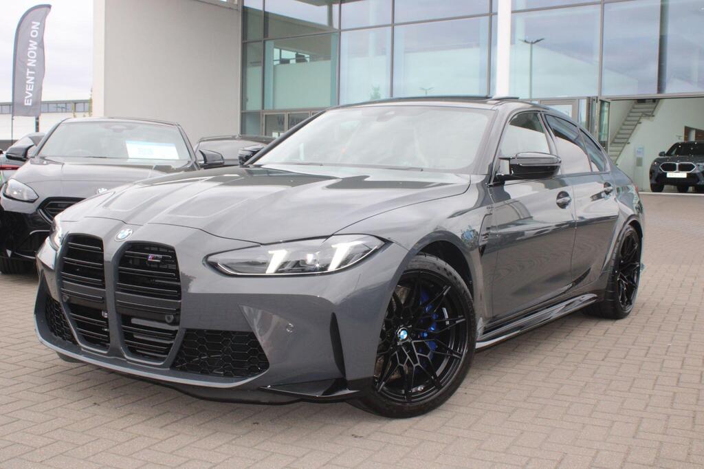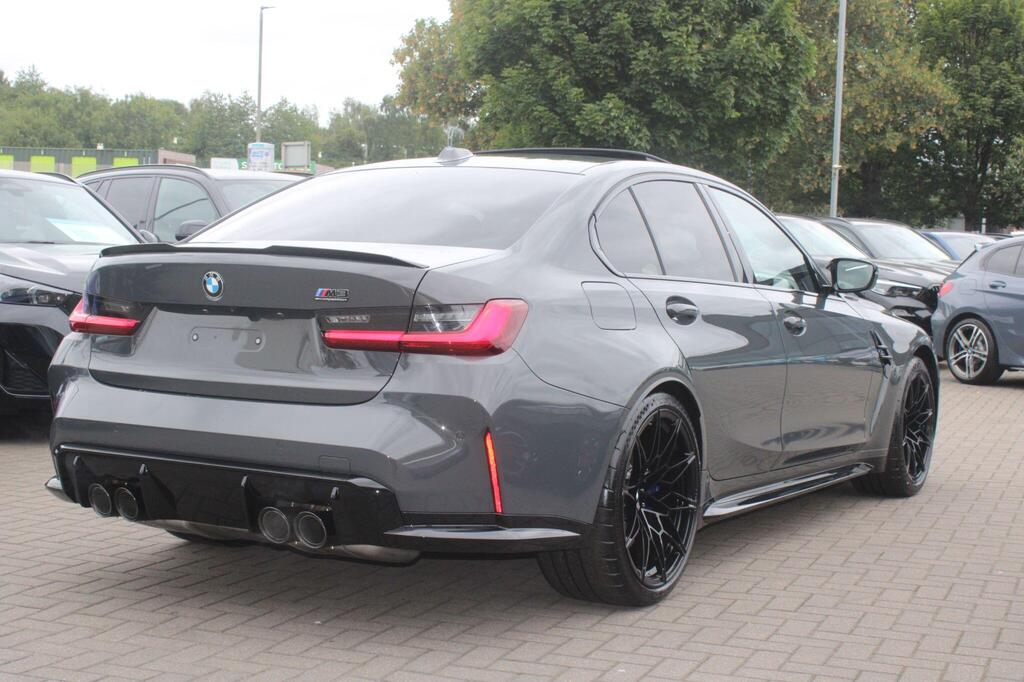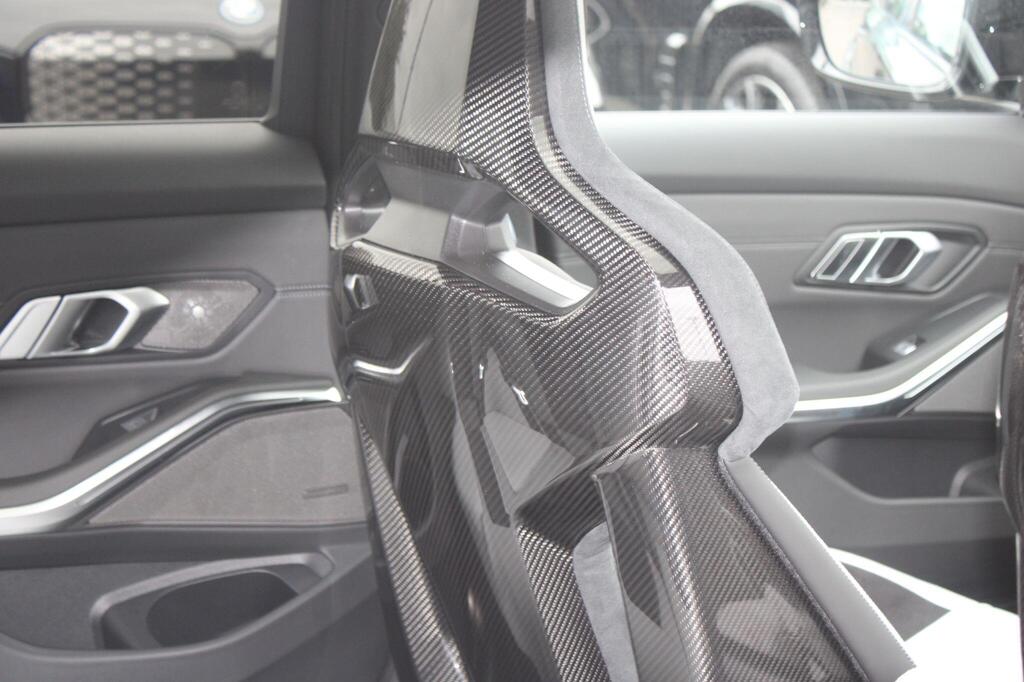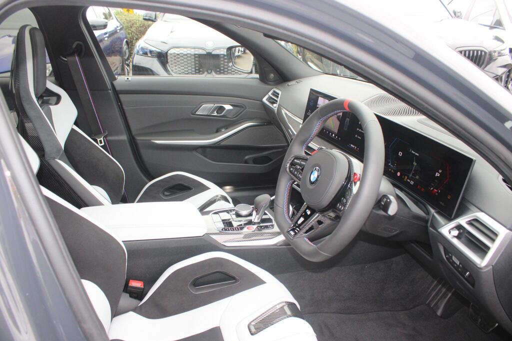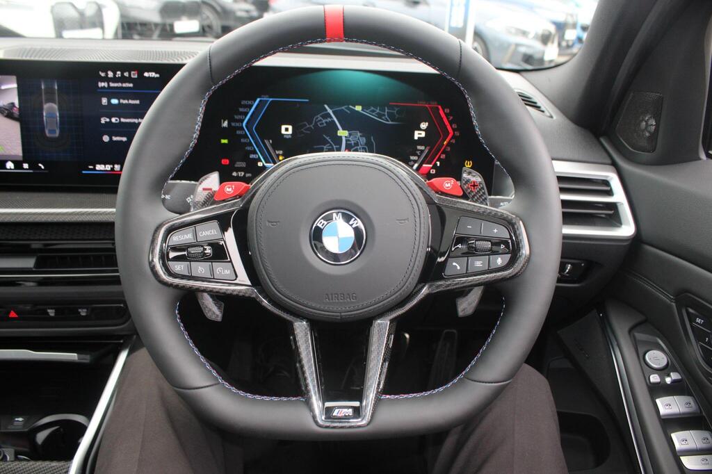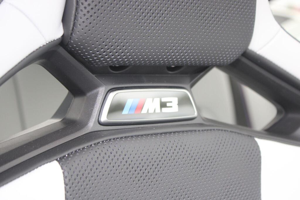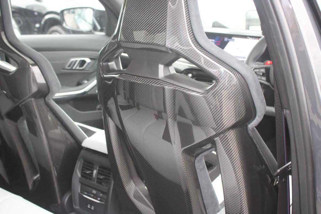 BMW M3 3.0 BiTurbo Competition Steptronic M xDrive Panoramic Roof на 19-дюймовых передних и на 20-дюймовых задних легкосплавных дисках- M Double Spoke - 826 - кованые - черные с разноразмерными шинами, карбоновые ковшеобразные сиденья M, рулевое колесо - с подогревом, ABS - антиблокировочная тормозная система, активная защита, BMW Live Cockpit Professional с проекционным дисплеем, профессиональный подключенный пакет, круиз-контроль с функцией торможения, сиденья с электроприводом и памятью, теплозащита - солнцезащитное остекление, аудиосистема Harman Kardon Surround Audio, спортивные сиденья M, подогрев передних сидений, помощник по парковке, персональная eSIM, солнцезащитное стекло.