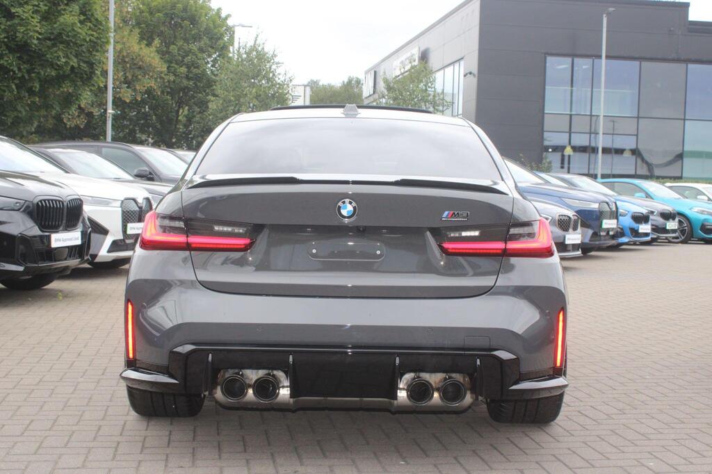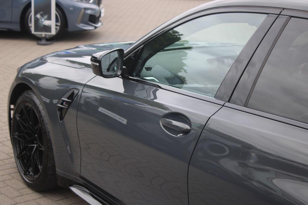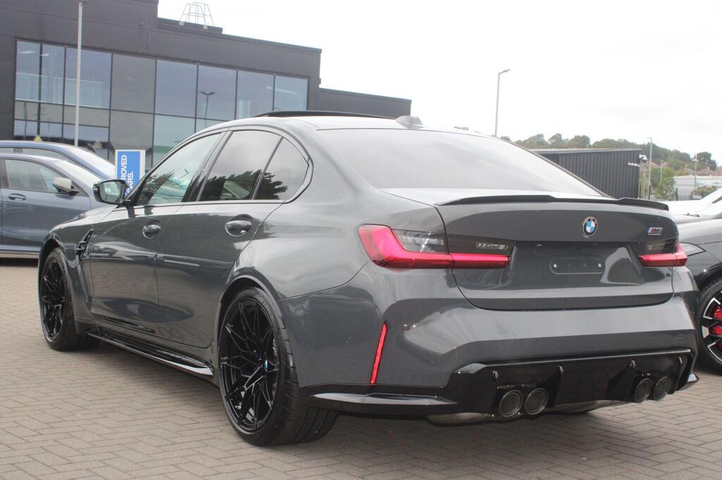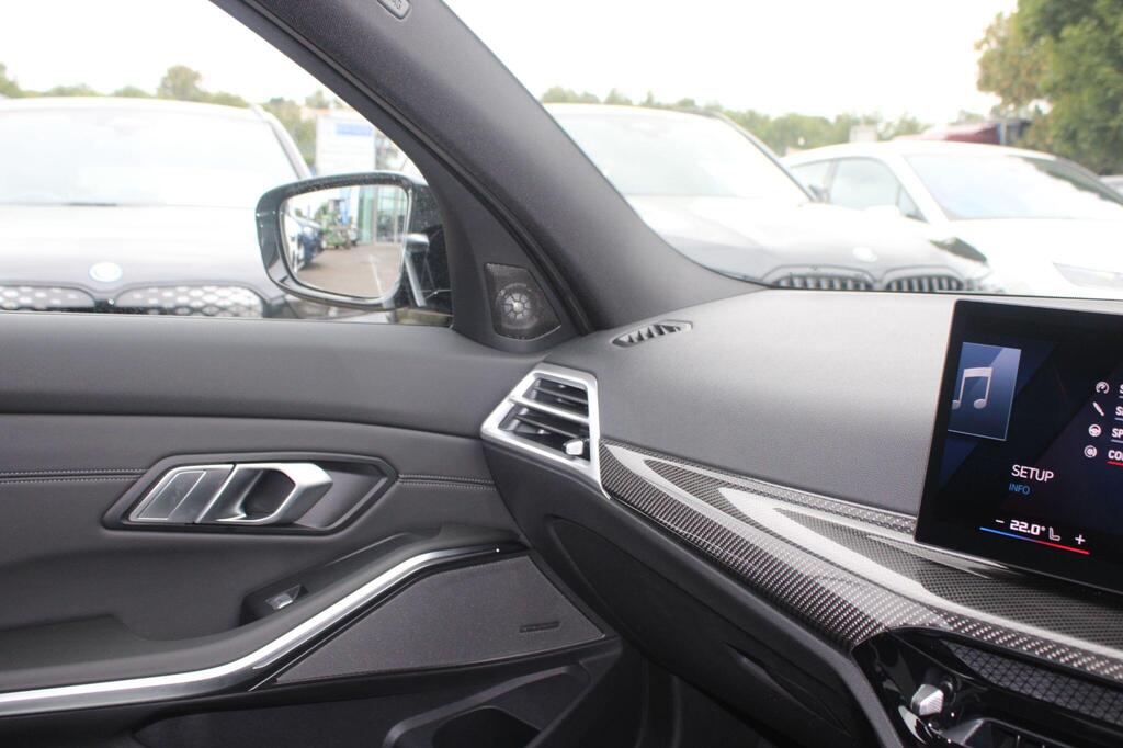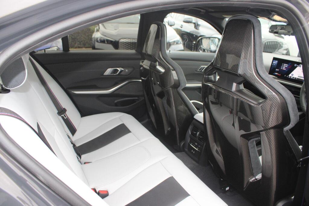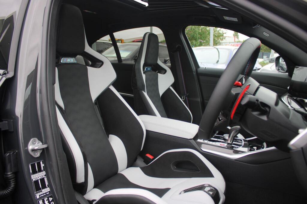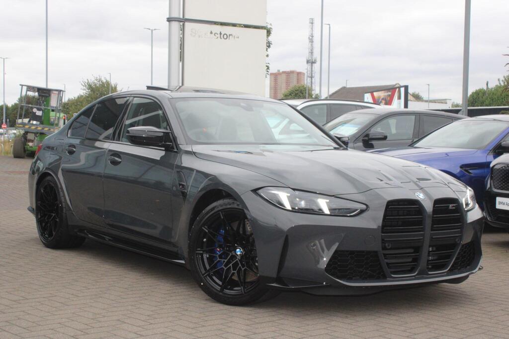 BMW M3 3.0 BiTurbo Competition Steptronic M xDrive Panoramic Roof на 19-дюймовых передних и на 20-дюймовых задних легкосплавных дисках- M Double Spoke - 826 - кованые - черные с разноразмерными шинами, карбоновые ковшеобразные сиденья M, рулевое колесо - с подогревом, ABS - антиблокировочная тормозная система, активная защита, BMW Live Cockpit Professional с проекционным дисплеем, профессиональный подключенный пакет, круиз-контроль с функцией торможения, сиденья с электроприводом и памятью, теплозащита - солнцезащитное остекление, аудиосистема Harman Kardon Surround Audio, спортивные сиденья M, подогрев передних сидений, помощник по парковке, персональная eSIM, солнцезащитное стекло.