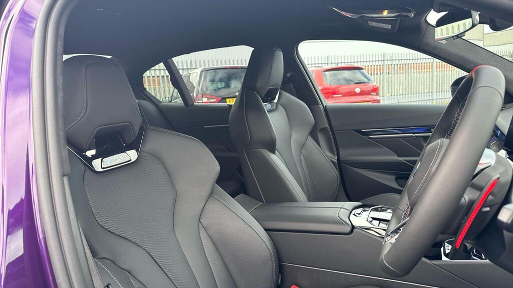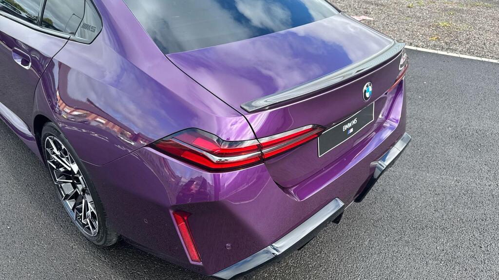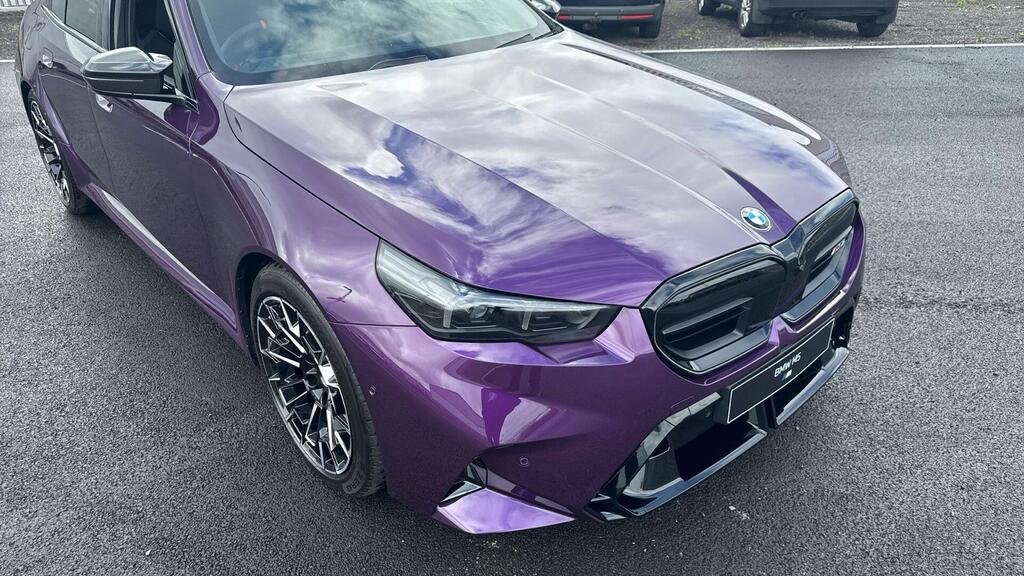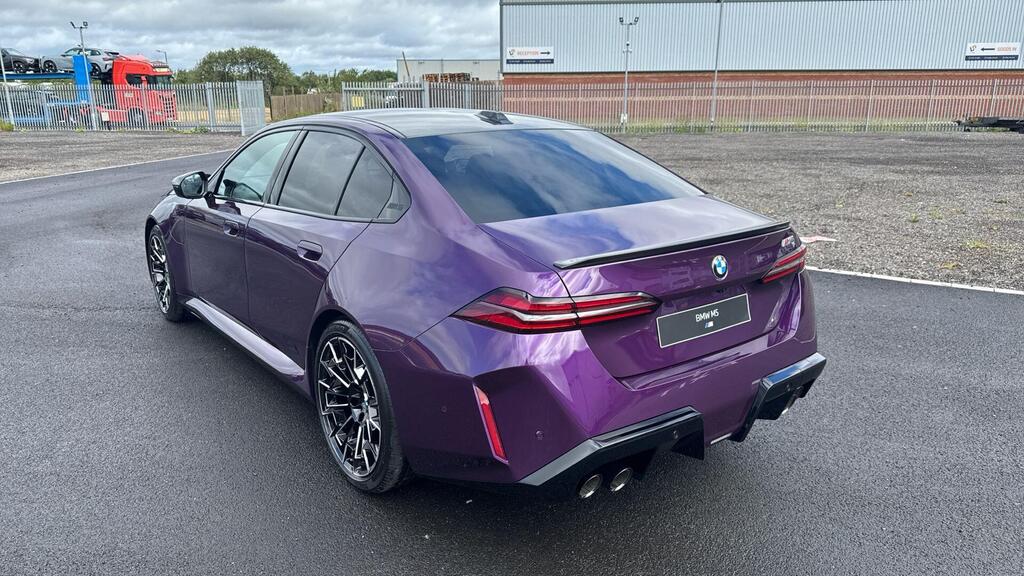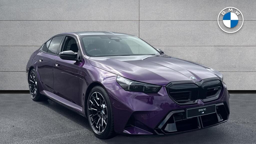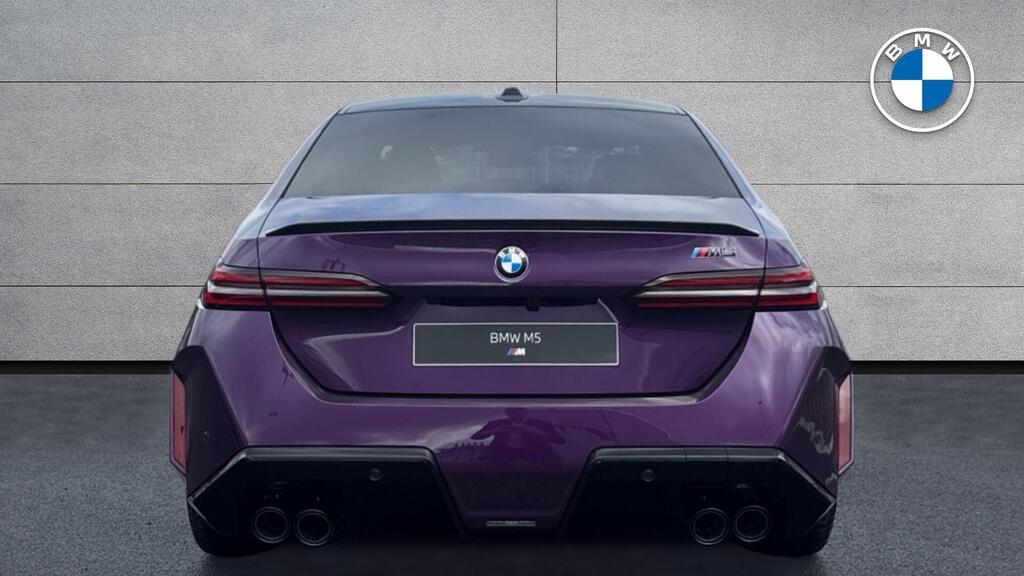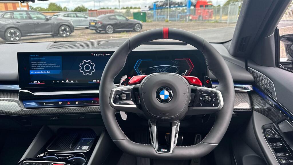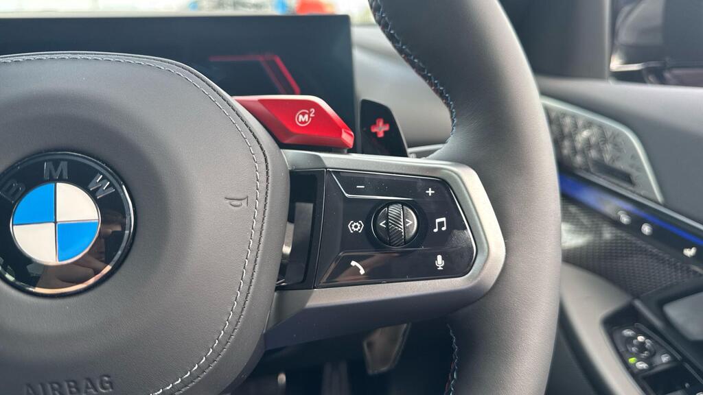 BMW M5 4.4 22.1kWh Steptronic xDrive Panoramic Roof на легкосплавных дисках 20–21 дюйм — M Light 952 M двухцветного черного цвета с разноразмерными шинами, пакет «Комфорт», система помощи водителю Professional, обивка потолка — антрацитовая алькантара, система Active Guard, звукоизоляция для пешеходов, лоток для беспроводной зарядки, солнцезащитное стекло, подогрев передних сидений, система помощи при парковке Plus, спортивный дифференциал M, камера внутреннего обзора.