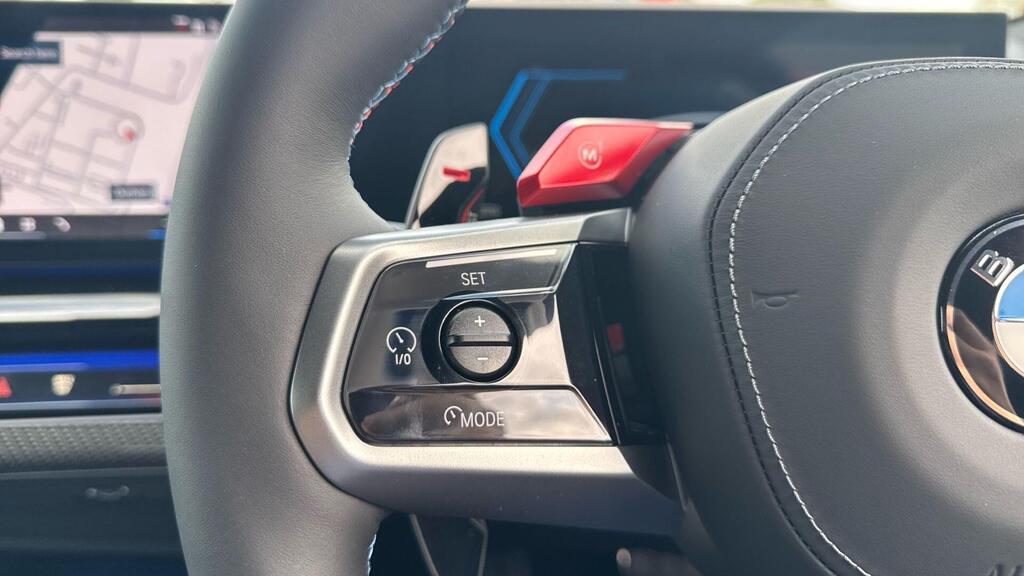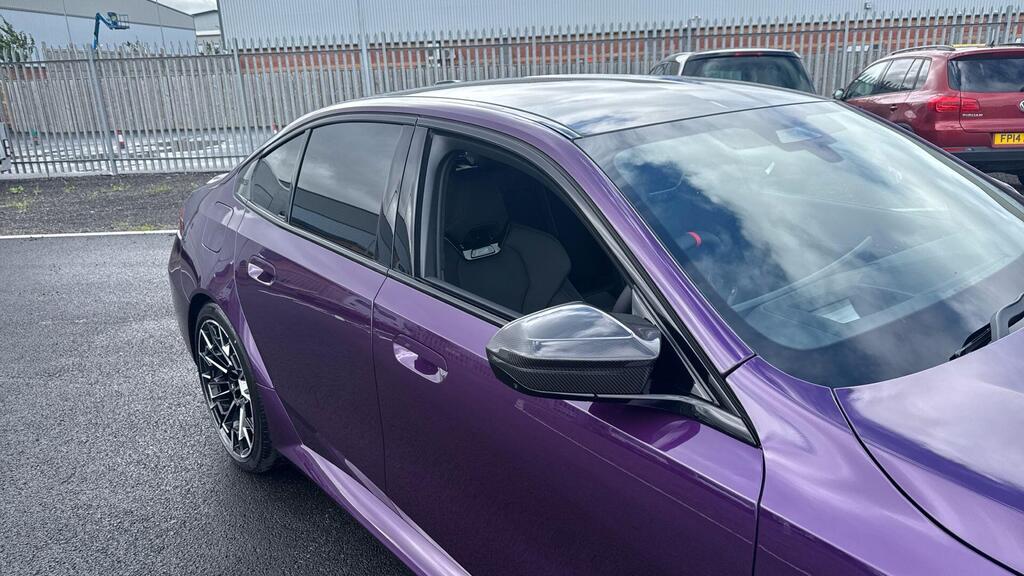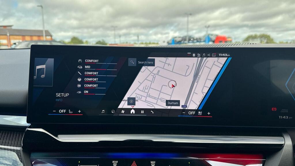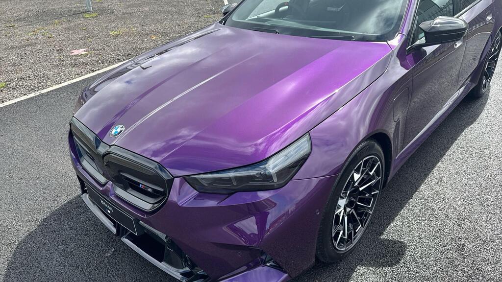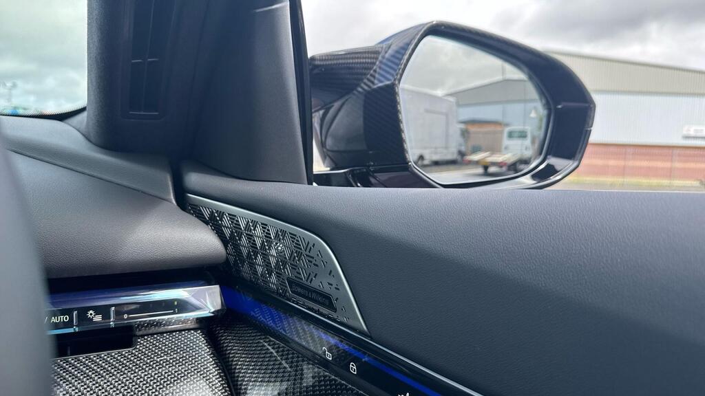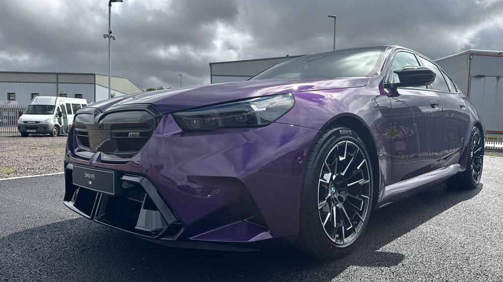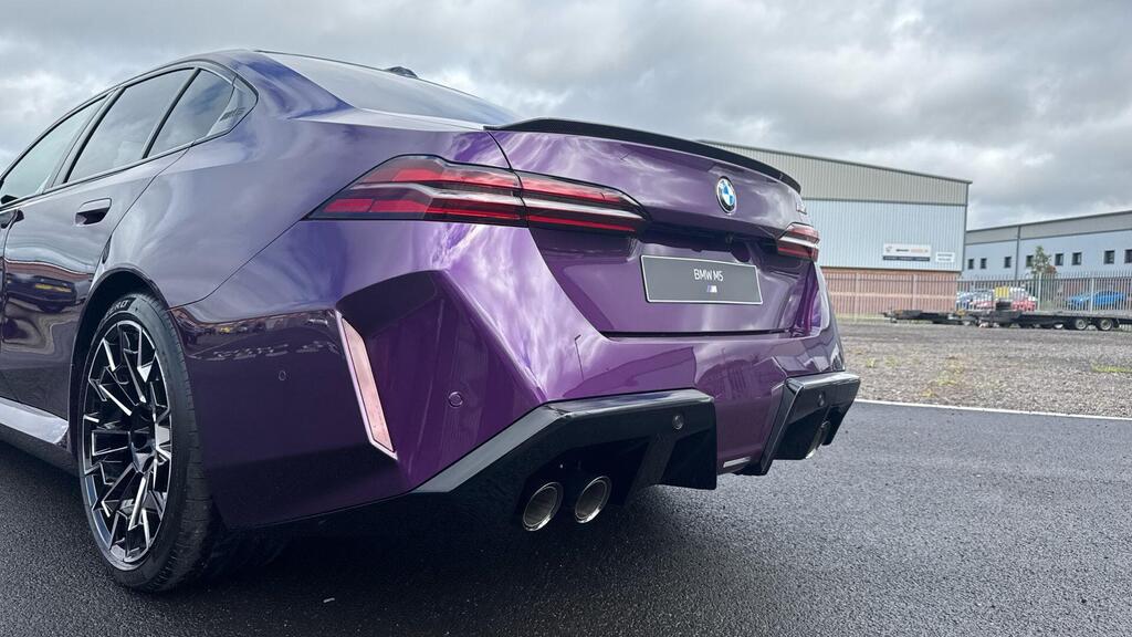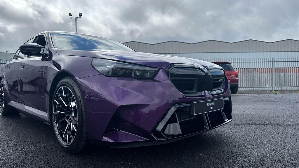 BMW M5 4.4 22.1kWh Steptronic xDrive Panoramic Roof на легкосплавных дисках 20–21 дюйм — M Light 952 M двухцветного черного цвета с разноразмерными шинами, пакет «Комфорт», система помощи водителю Professional, обивка потолка — антрацитовая алькантара, система Active Guard, звукоизоляция для пешеходов, лоток для беспроводной зарядки, солнцезащитное стекло, подогрев передних сидений, система помощи при парковке Plus, спортивный дифференциал M, камера внутреннего обзора.