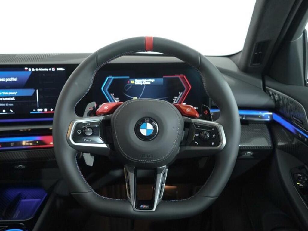 BMW M5 4.4 22.1kWh Steptronic xDrive на легкосплавных дисках 951 M 20 и 21 дюйм, комфортный доступ, система объемного звучания Bowers & Wilkins, помощник вождения Pro, электропривод передних сидений с функцией памяти настроек водителя, четырехзонный автоматический кондиционер, вентилируемые передние сиденья, подогрев передних и задних сидений, подогрев руля, система Live Cockpit Pro с проекционным дисплеем, карбон-керамические тормоза M с золотыми суппортами, пакет M Drivers, помощник парковки Pro, пакет Ultimate, место для хранения для беспроводной зарядки, система Travel and Comfort, солнцезащитные шторки на задних окнах.